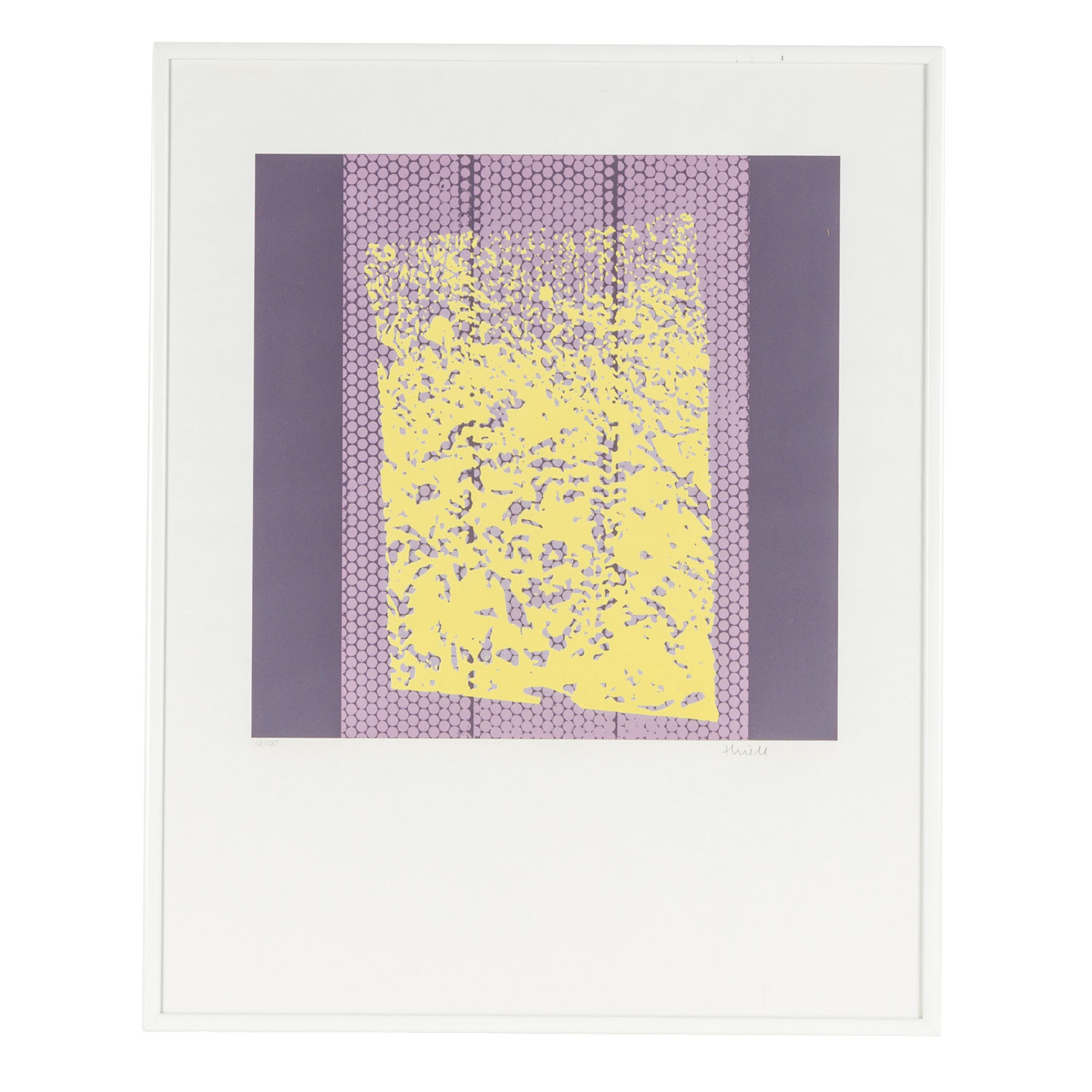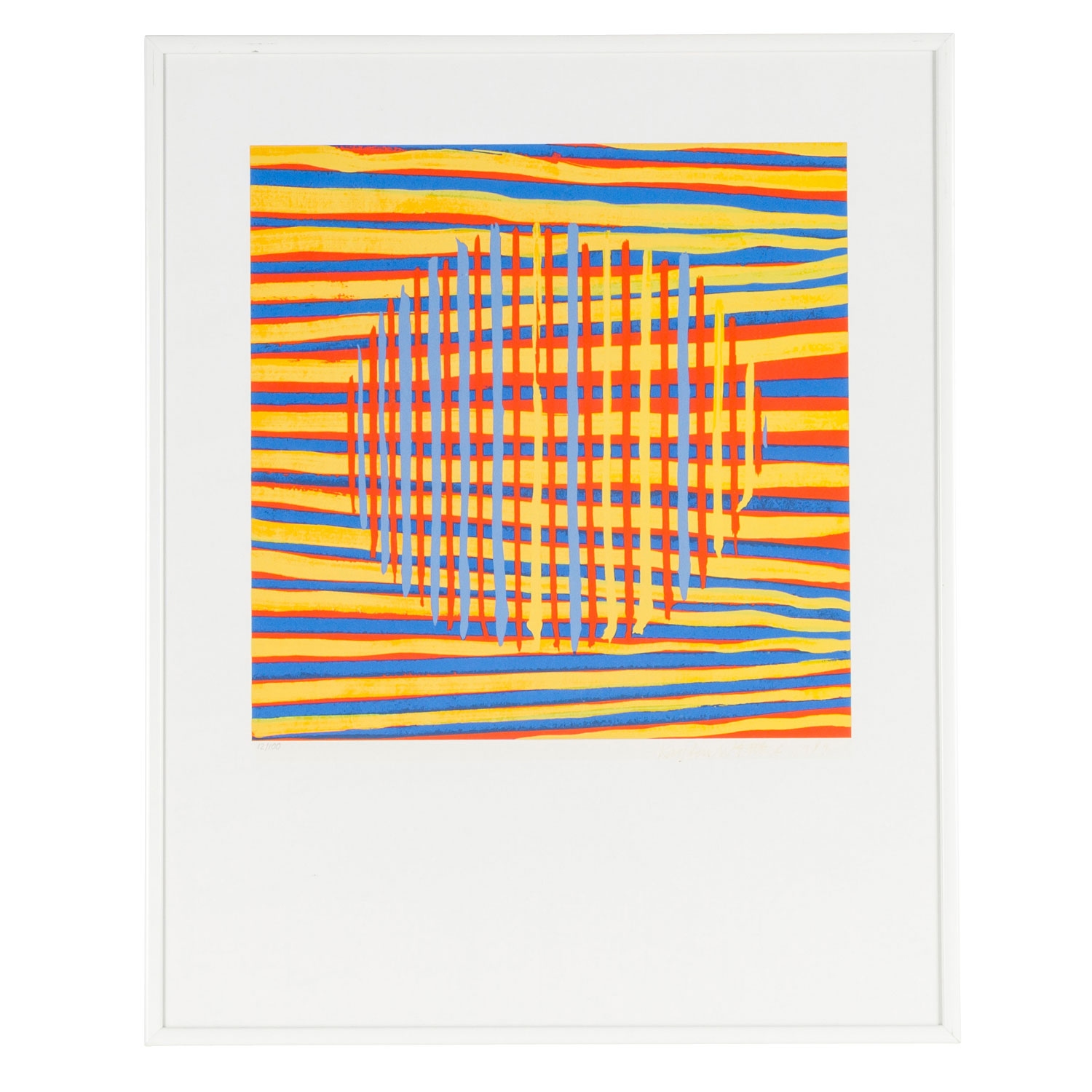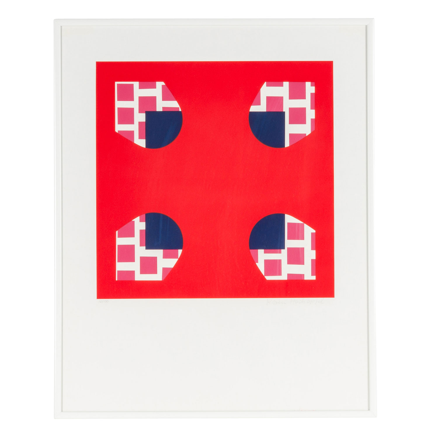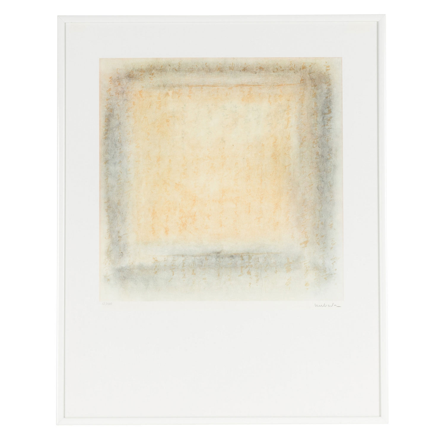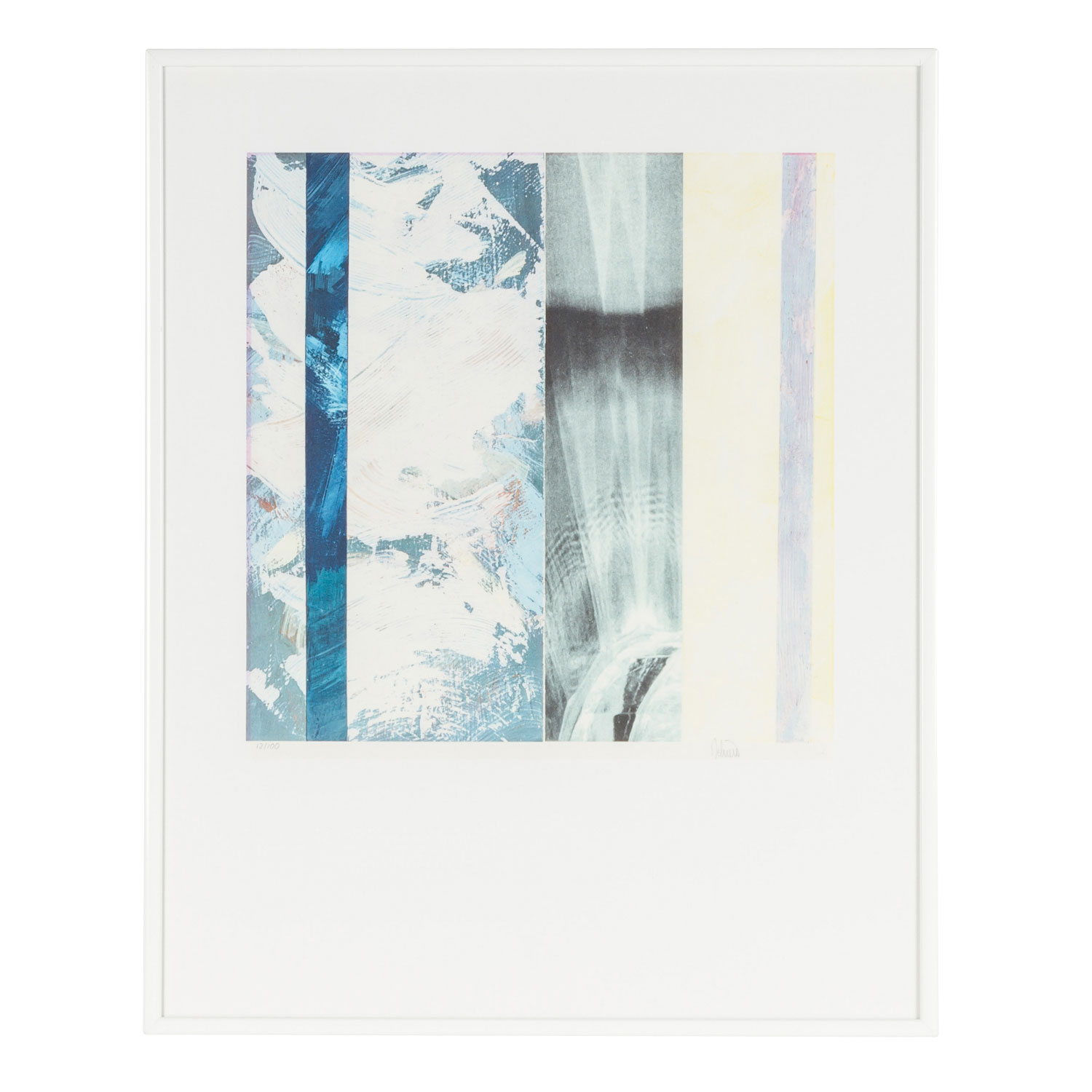 EDITION DOMBERGER 10 prints from the portfolio 'Ein Format 12 Konzepte', 1990, contains: Motifs by André Debost, Bernadette Delrieu, Karin Hochapfel, Jan Hubertus, Pjotr Iwicki, Michael Jäger, Ton Mars, Michael Sauer, Gernot Thiele and Karsten Wittke (motifs by Bertold Mathes and Katsuhito Nishikawa missing), each serigraph/paper, each signed in pencil by the artist and numbered 2/100, HxW: plates approx. 30x30 cm, sheets each approx. 50x40 cm, outer frame dimensions approx. 51x41 cm. signed in pencil by the artist and numbered 2/100, HxW: plates approx. 30x30 cm, sheets each approx. 50x40 cm, outer frame dimensions approx. 51x41 cm. Each with traces of age, partially wavy. Each with glazed frame (4x behind passe-partout). SHIPPING UNFORTUNATELY NOT POSSIBLE - ONLY FOR COLLECTORS.
