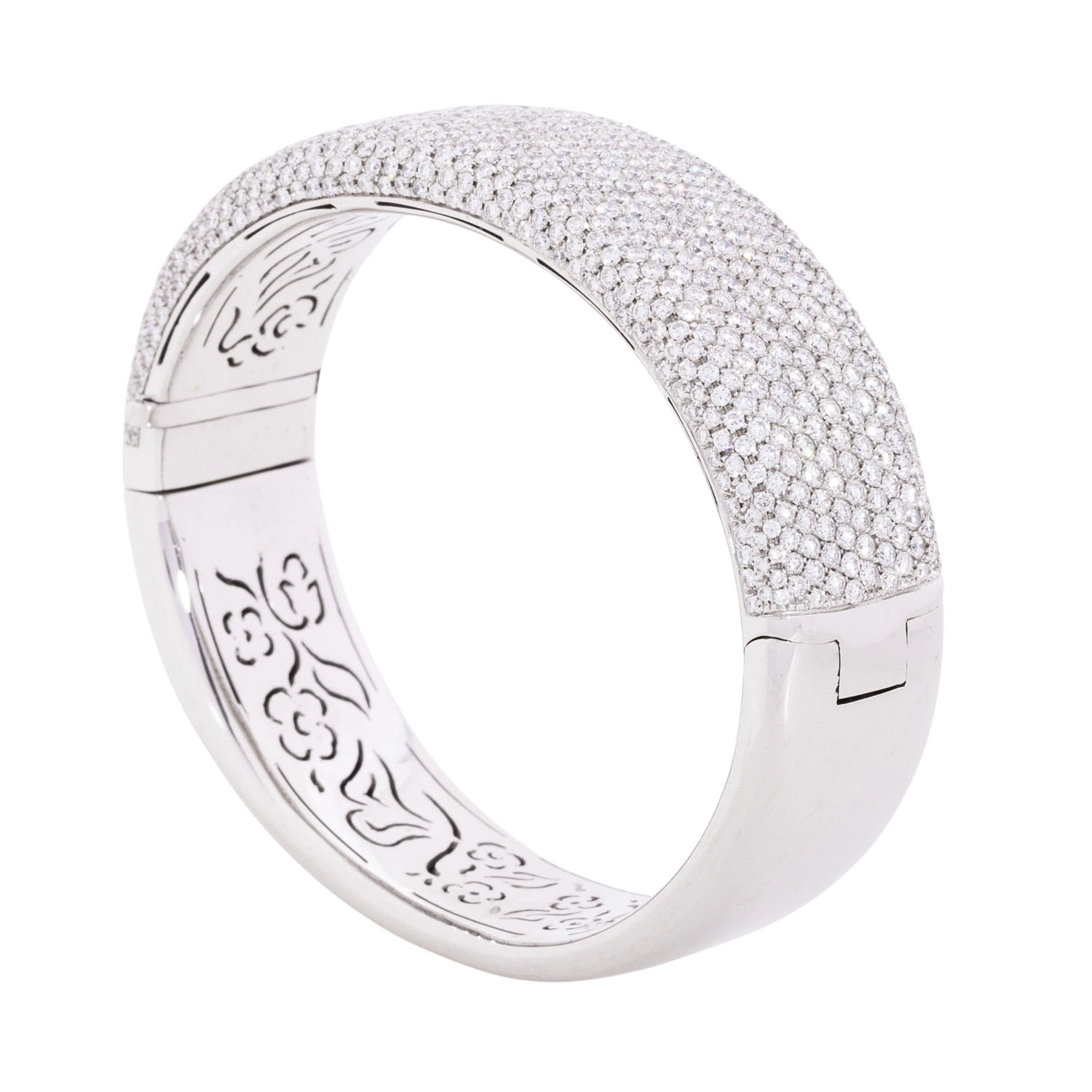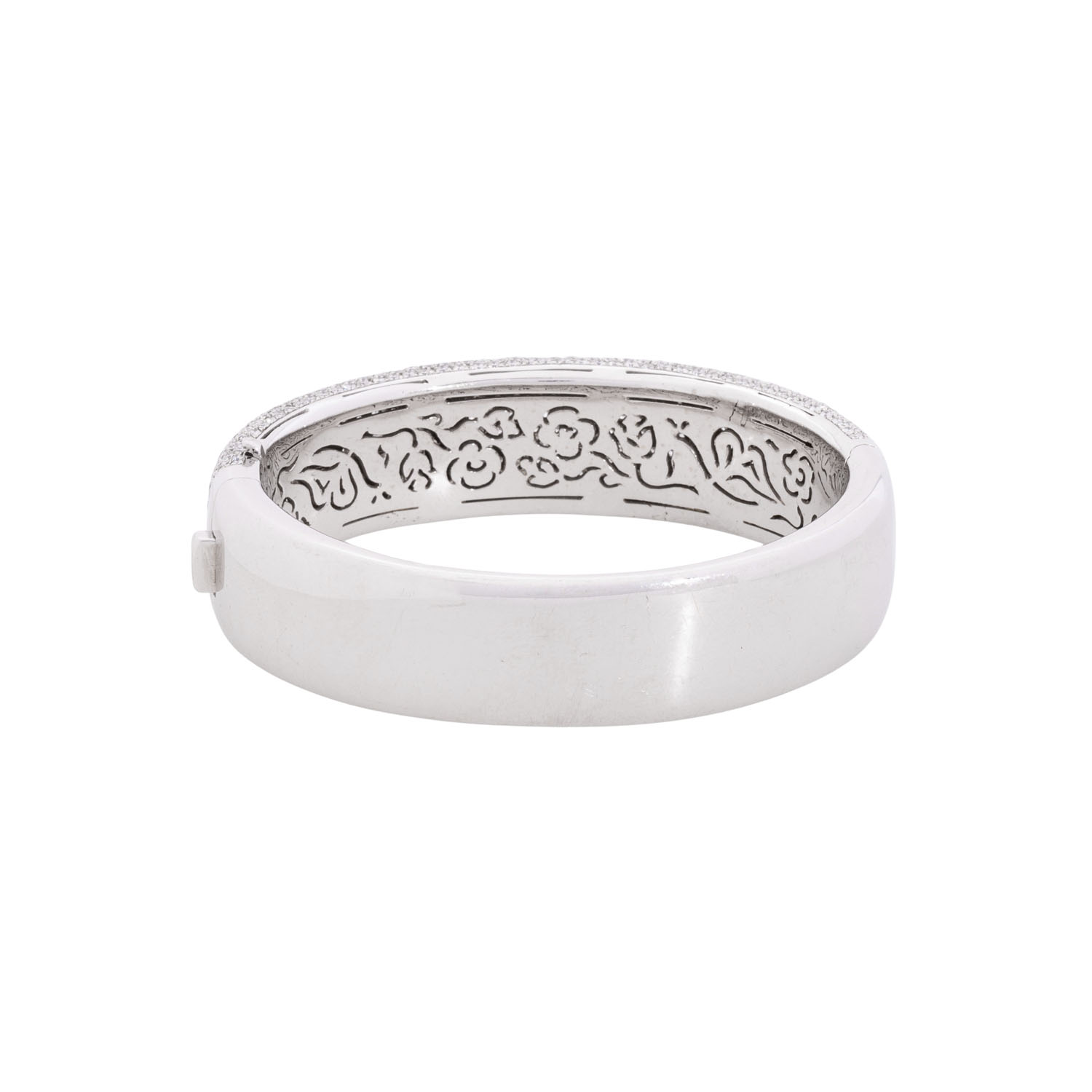 Bangle with brilliant-cut diamonds totalling 11.55 ct, RW (G)/VVS, WG 18K, 91.2 g, inner circumference: 18 cm, 21st century, mint condition, high-quality goldsmith's work.