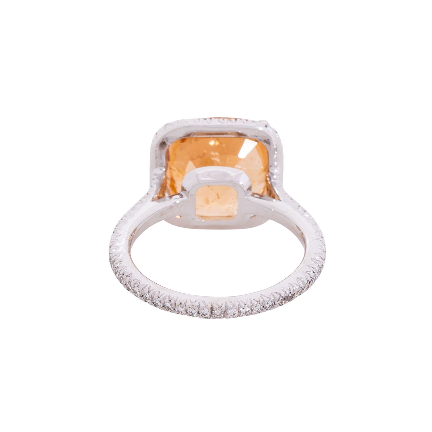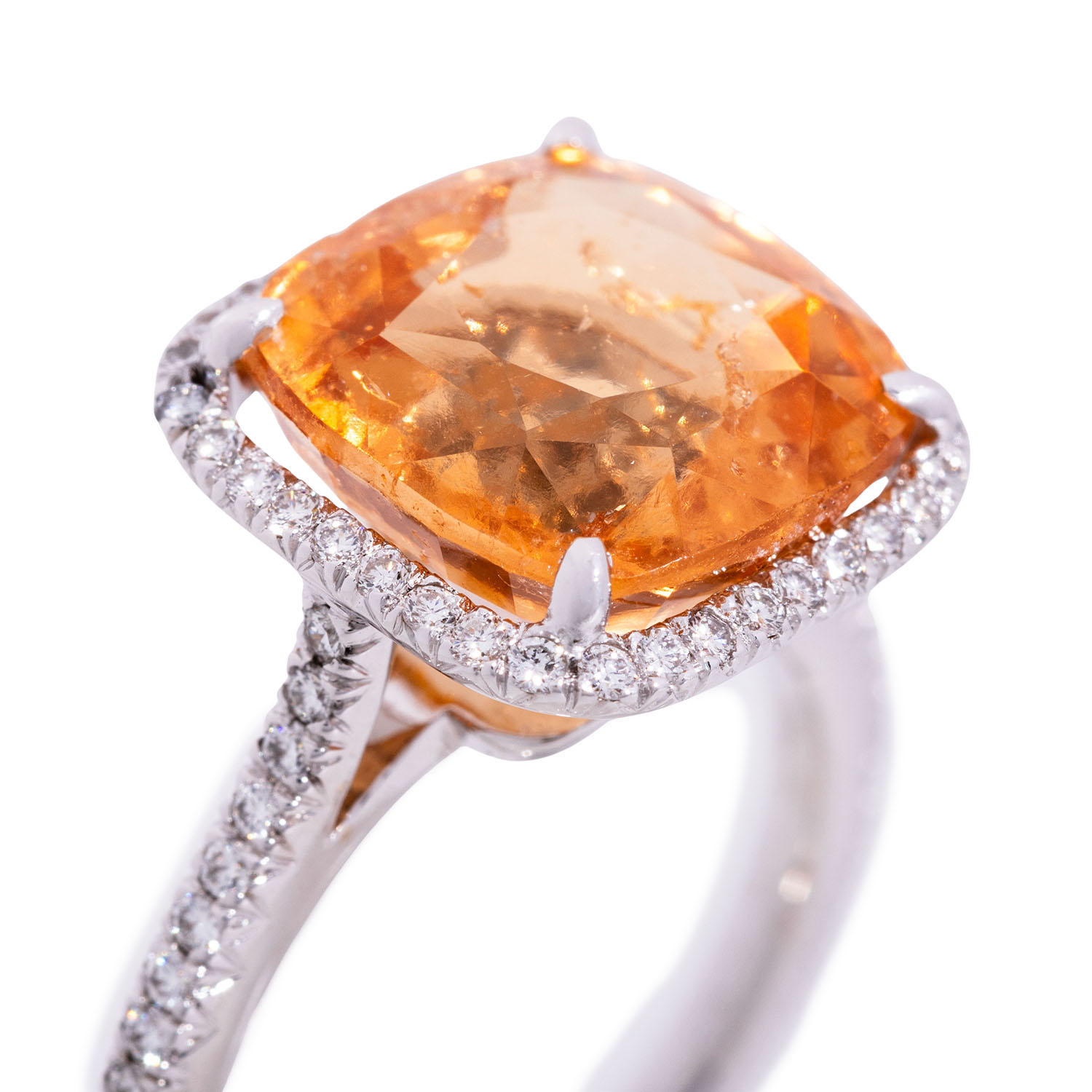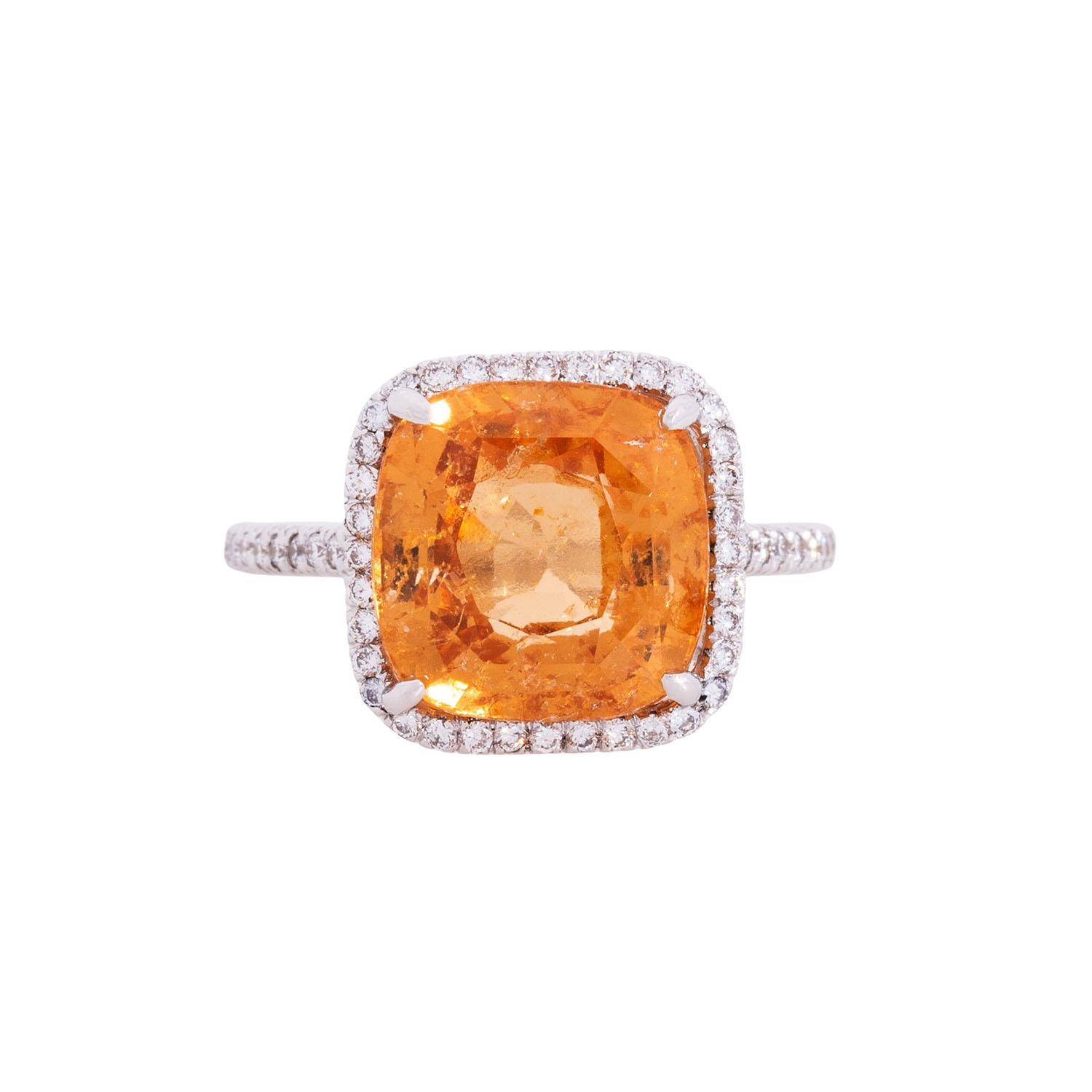 Elegant ring with a hessonite and approx. 82 brilliant-cut diamonds totalling ca. 0.82 ct, WHITE-STW (H-J)/VS-SI, WG 18K, 6.2g, ring size 54, 21st century, mint condition. High quality craftsmenship.