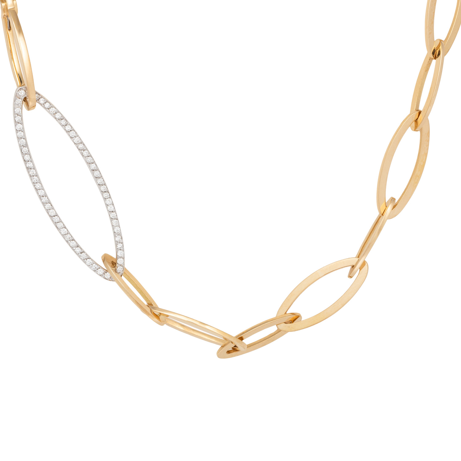 Necklace 'Ellipse' with 57 brilliant-cut diamonds totalling approx. 0.57 ct, WHITE-STW (H-J)/SI, 18K yellow gold/white gold, 45.4 g, 59 cm, W: approx. 0.7 - 1.4 cm, with lobster clasp, 21st century, signs of wear, with Italian hallmark.