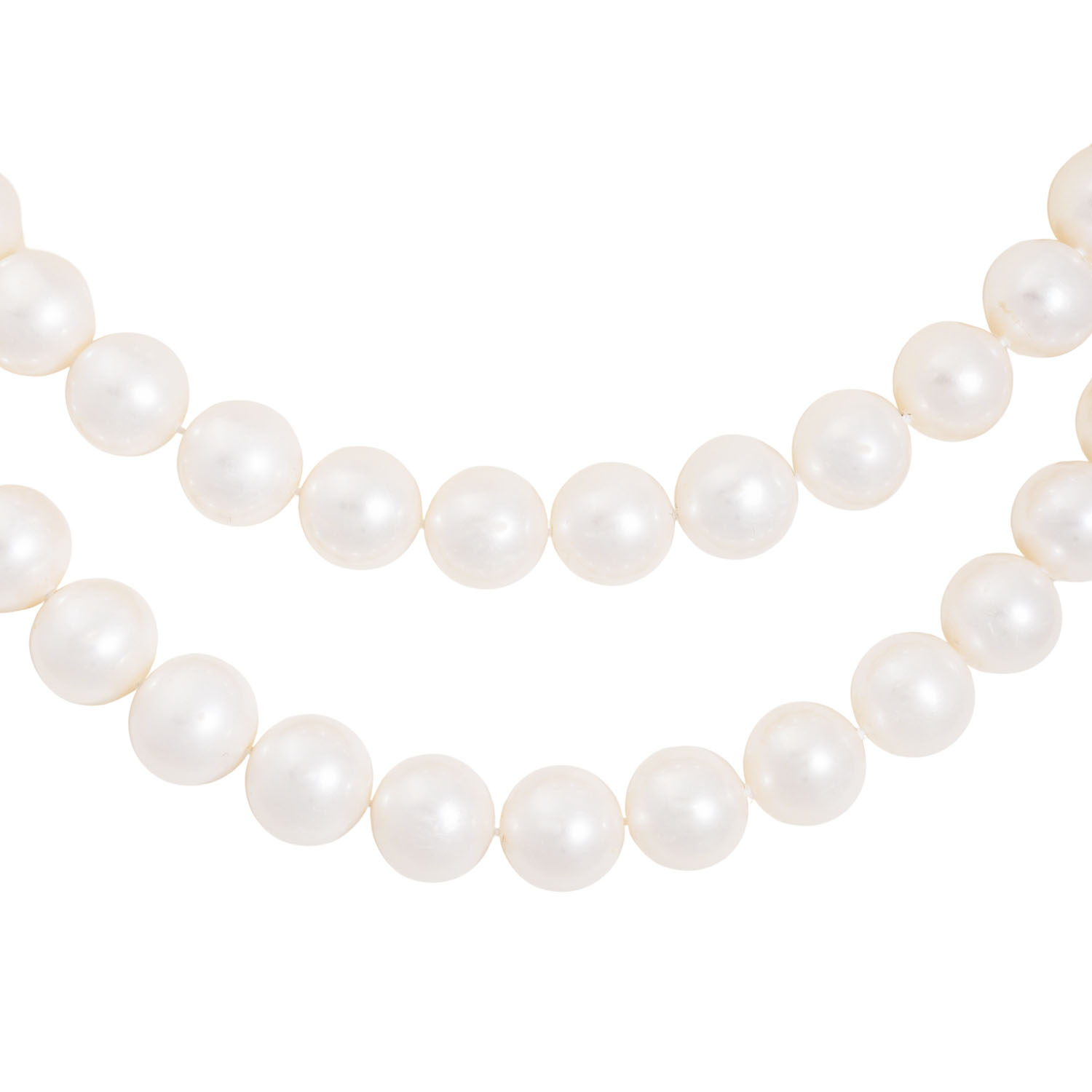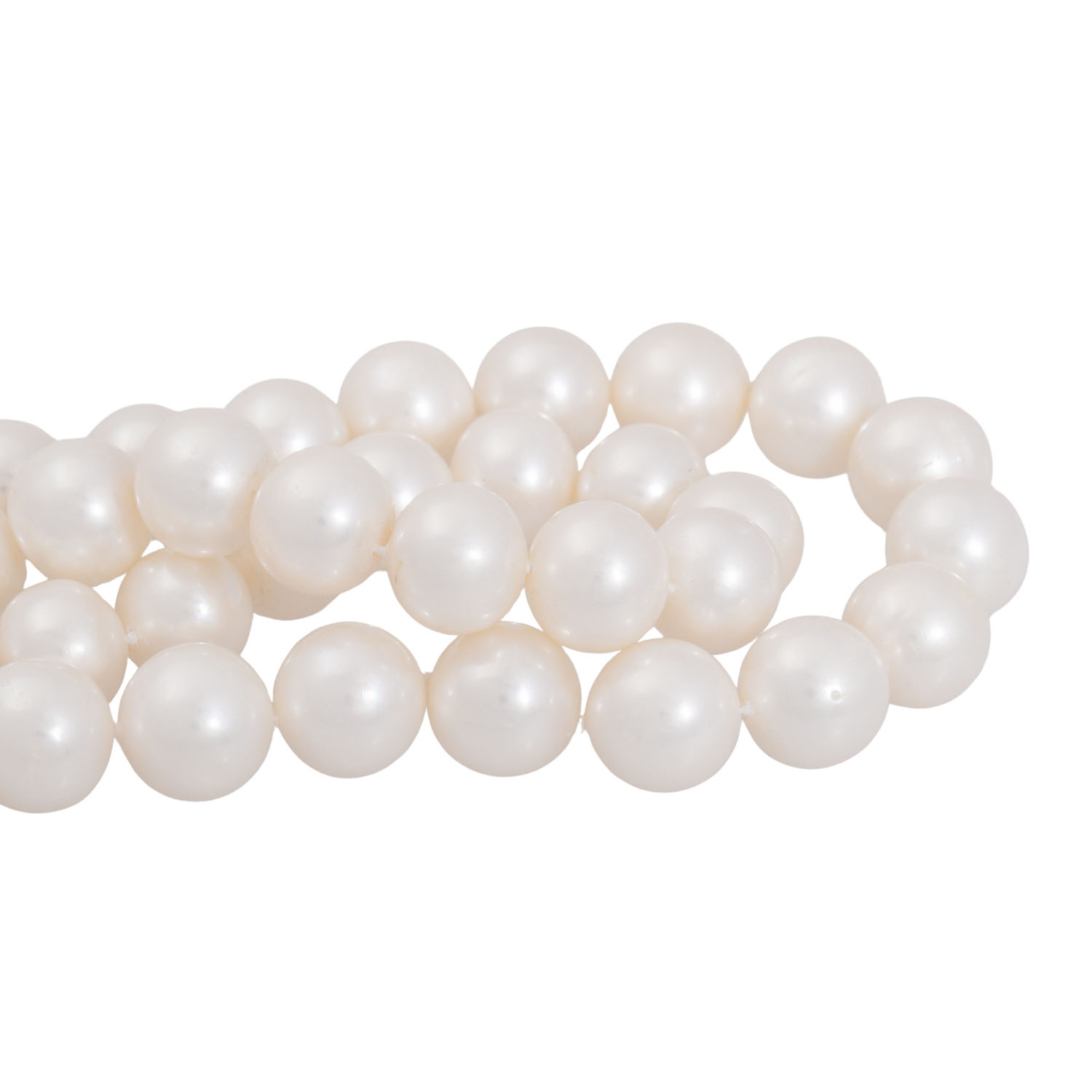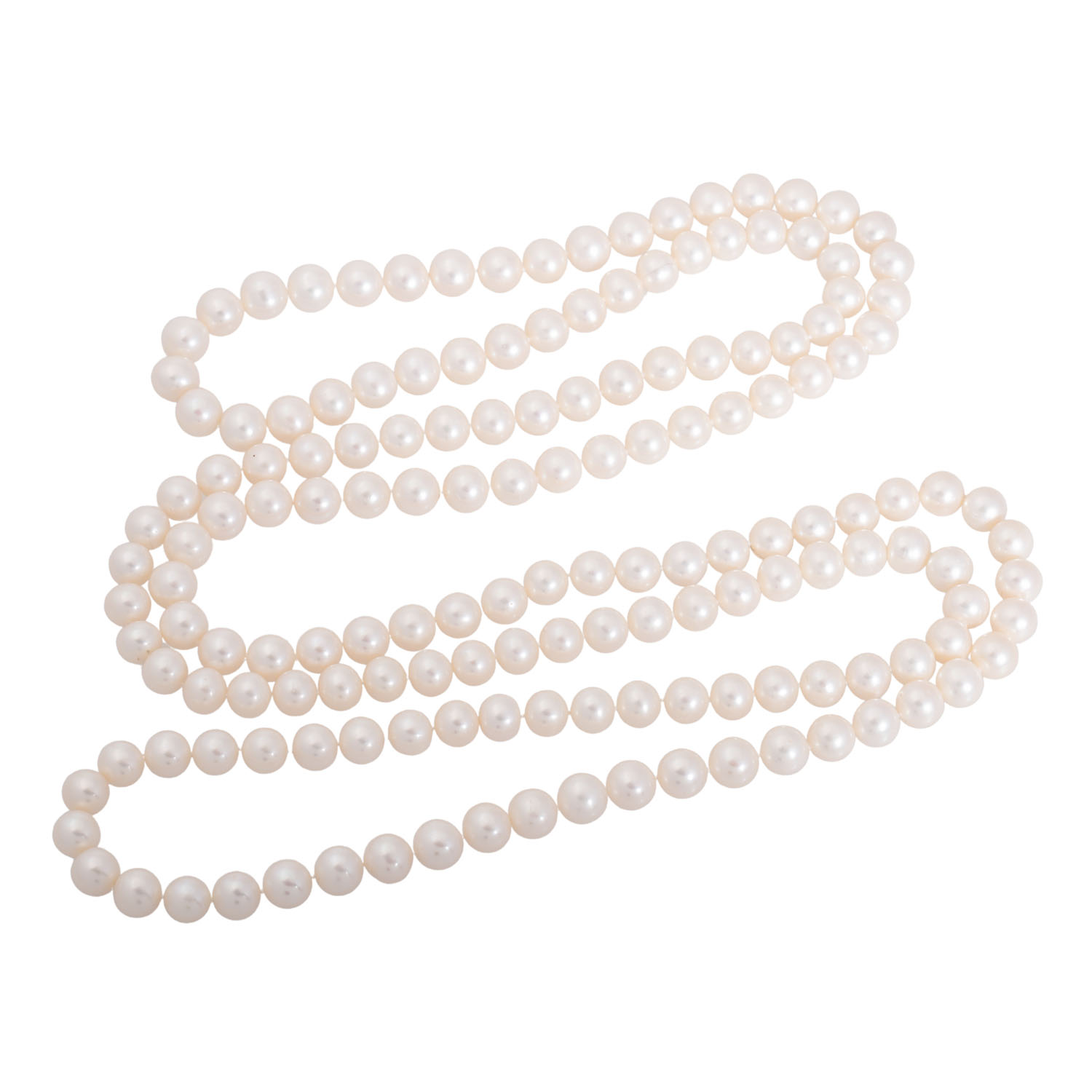 Endless pearl necklace with 159 freshwater pearls, white-rose cultured pearls, round D: approx. 10.8 - 11.4 mm, beautiful luster, with natural signs of growth, 287 g, knotted through, L: approx. 174 cm, end of the 20th century, minor signs of wear.