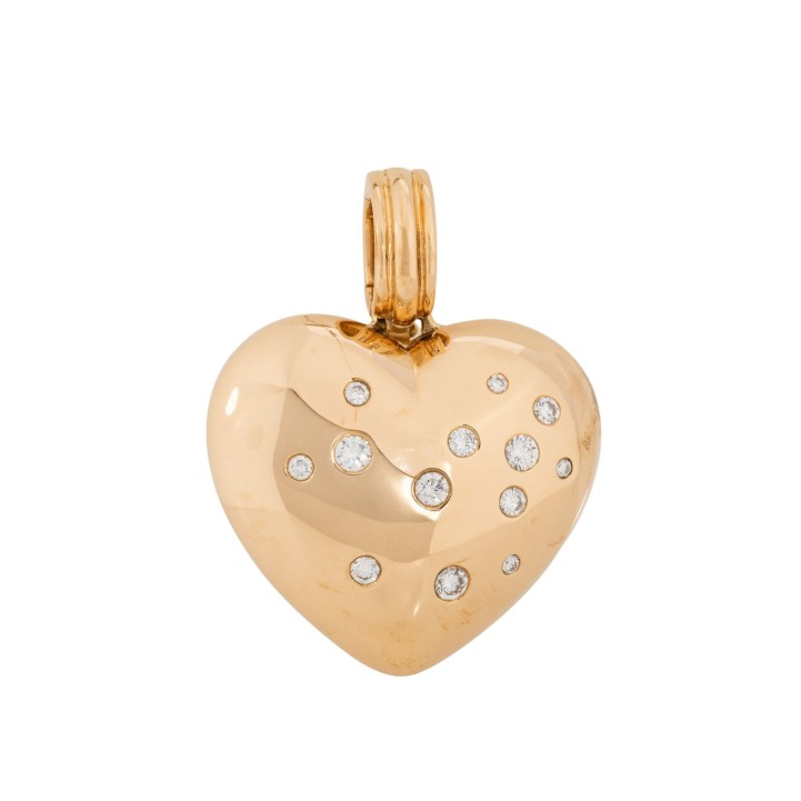 Pendant/pendant 'Heart', set with 13 brilliant-cut diamonds,