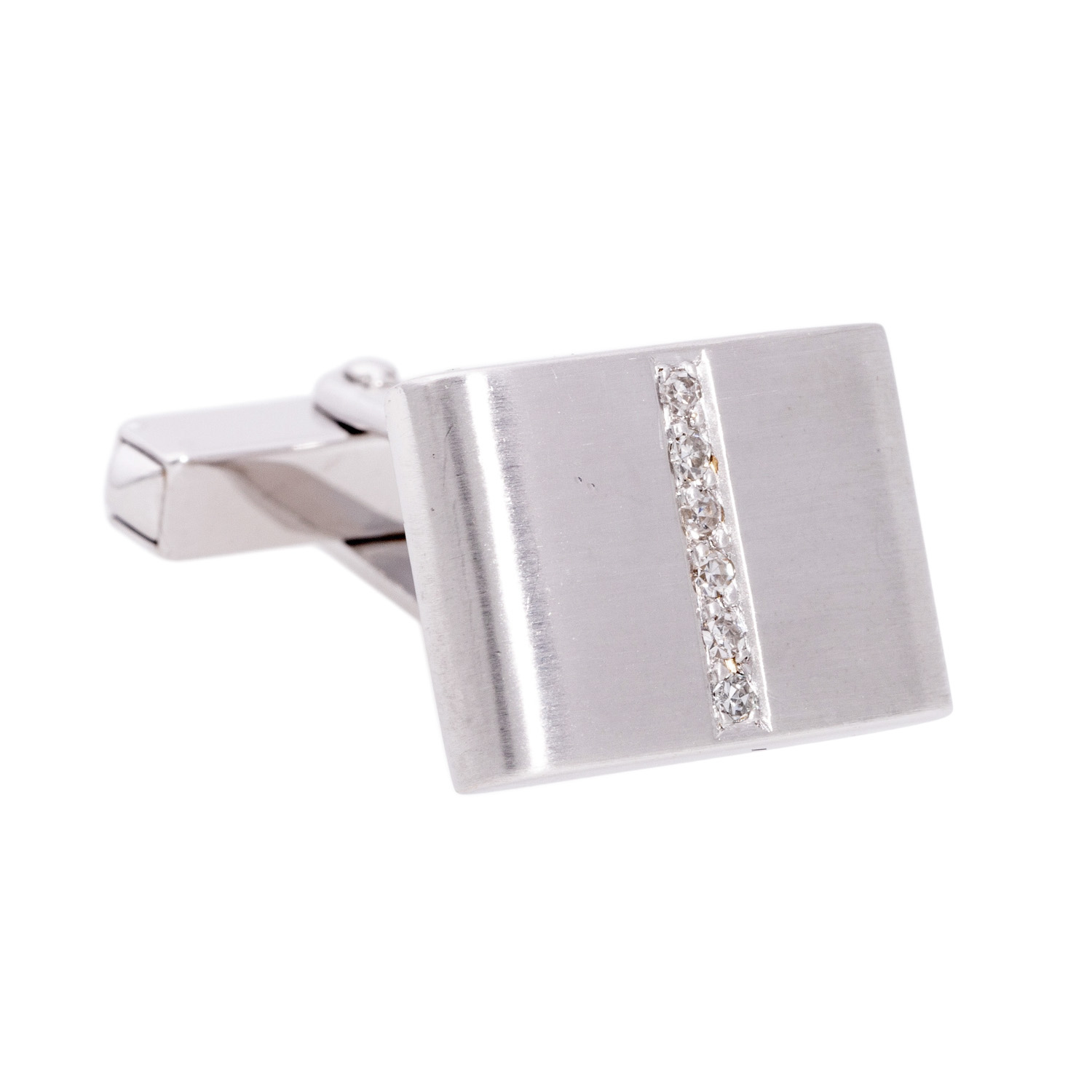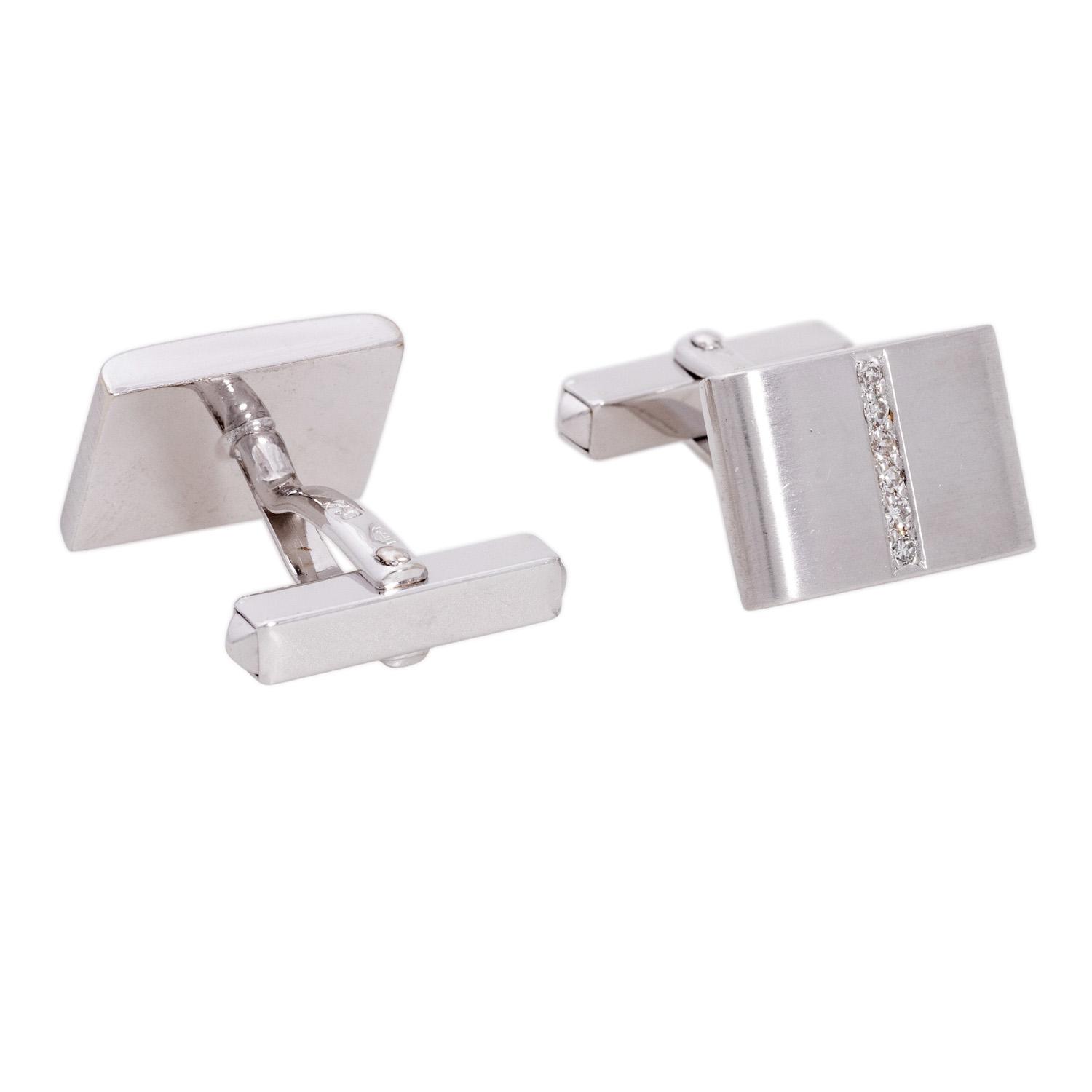 Pair of cufflinks with 12 single cut diamonds, totalling ap. 0.12 ct, good colour and clarity, 18K white gold, 14.5 g, L x W: 16 x 12 mm, late 20th century, minor signs of wear.