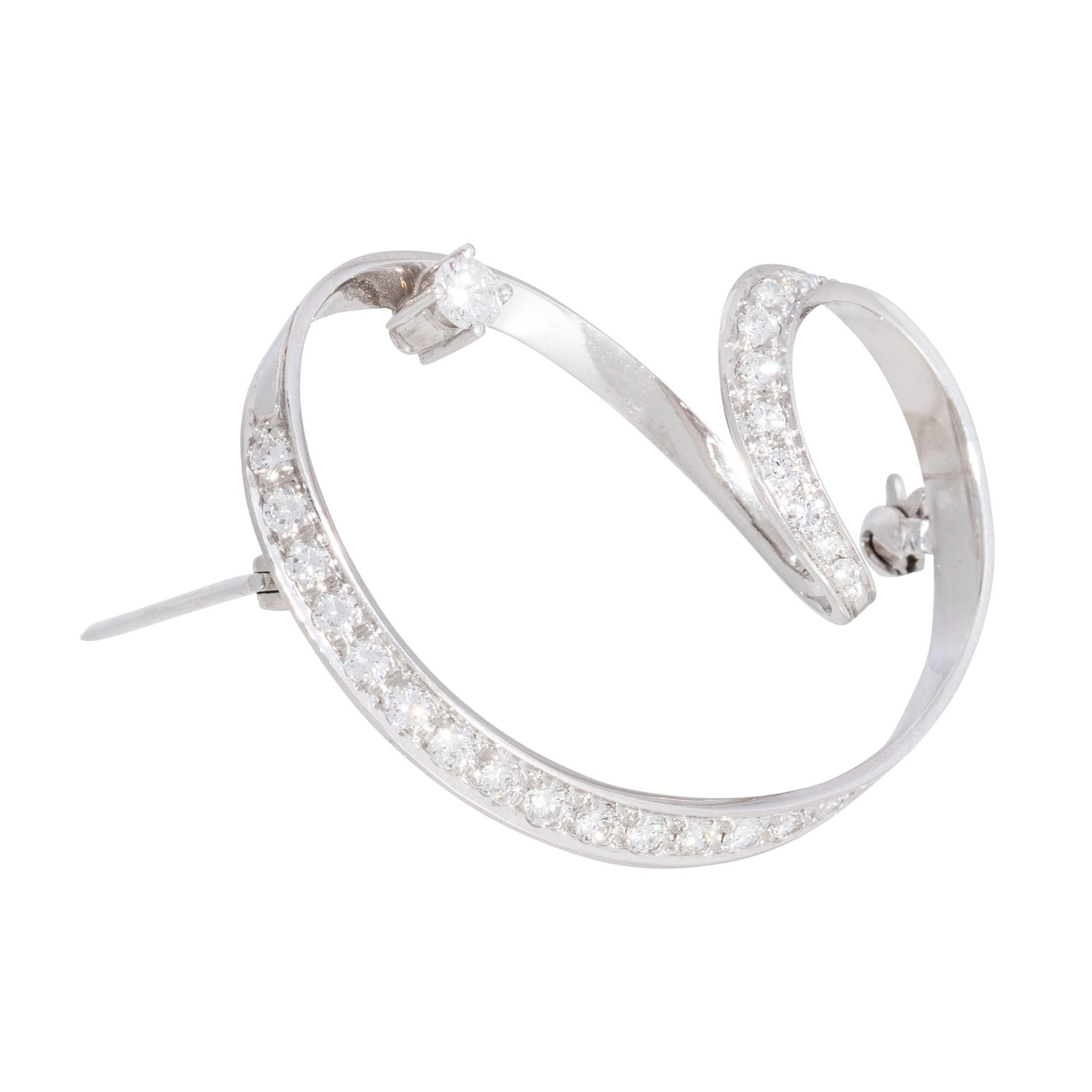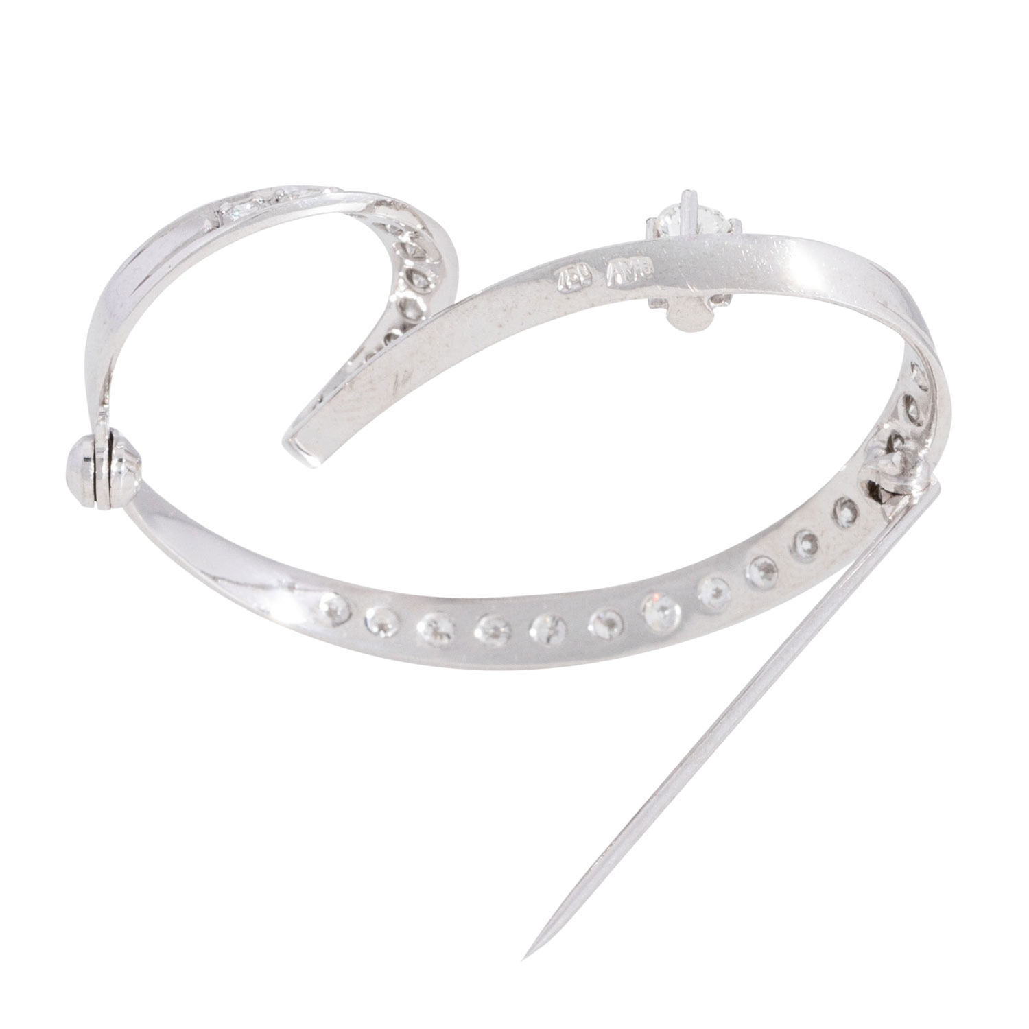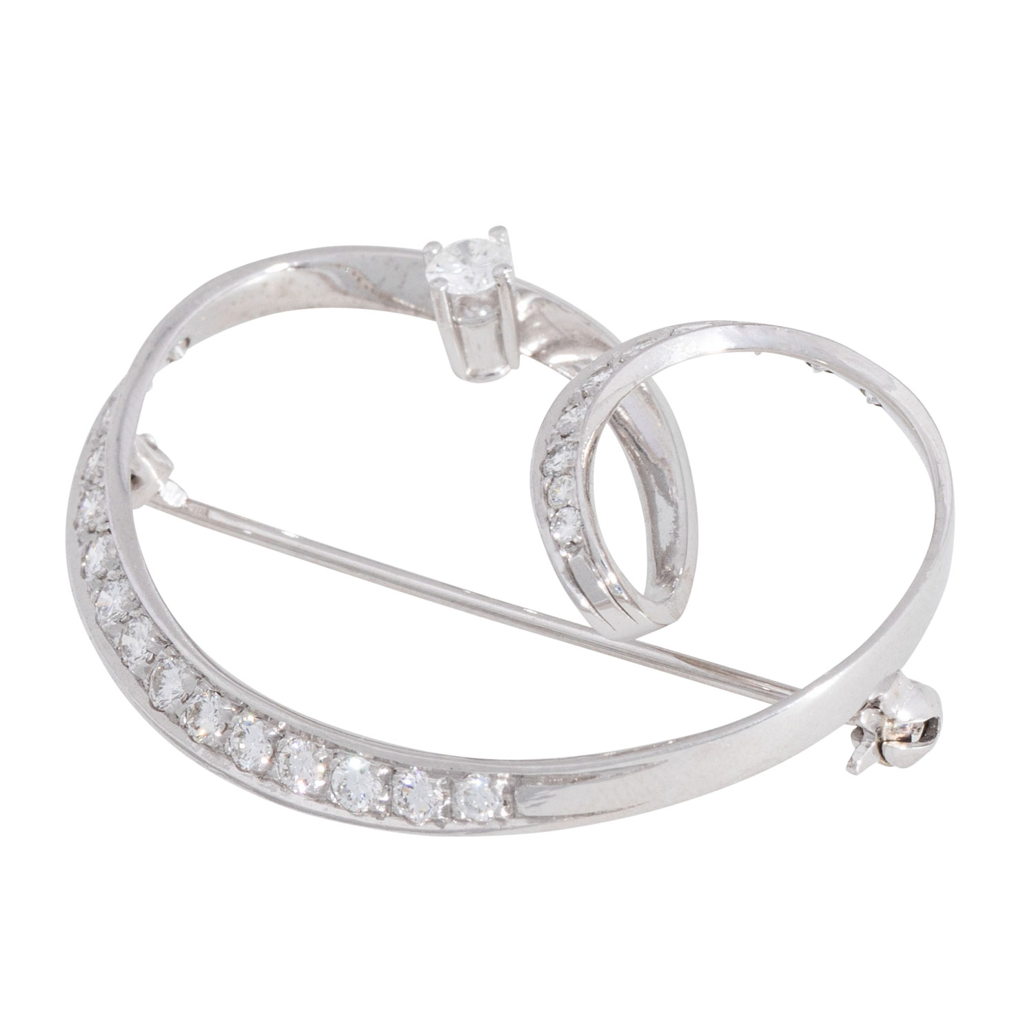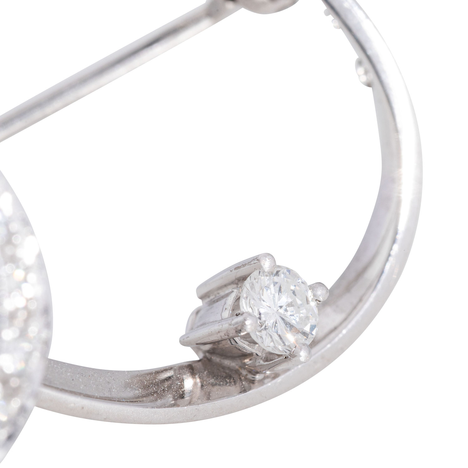 Brooch with brilliant-cut diamonds totall. ca. 1.0 ct, ca. RW-WHITE (F-H)/VVS-VS, 18K WG, 6.6 g, mid 20th century, minor signs of wear.