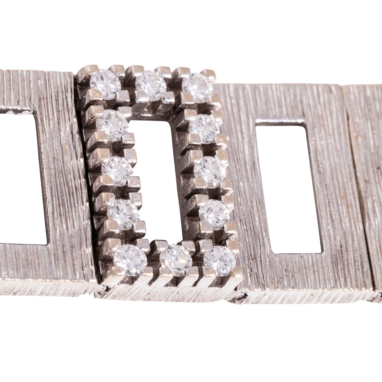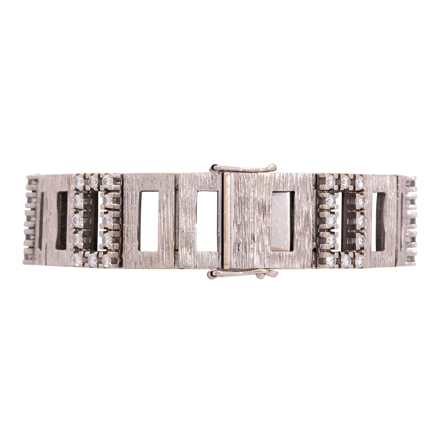 Bracelet with 82 brilliant-cut diamonds, totalling ca. 3,0 ct, FW-W/VSI-SI. WG 18K, 70.7g, L: 18cm. Late 20th century, signs of wear, one safety catch not closable, handcrafted.