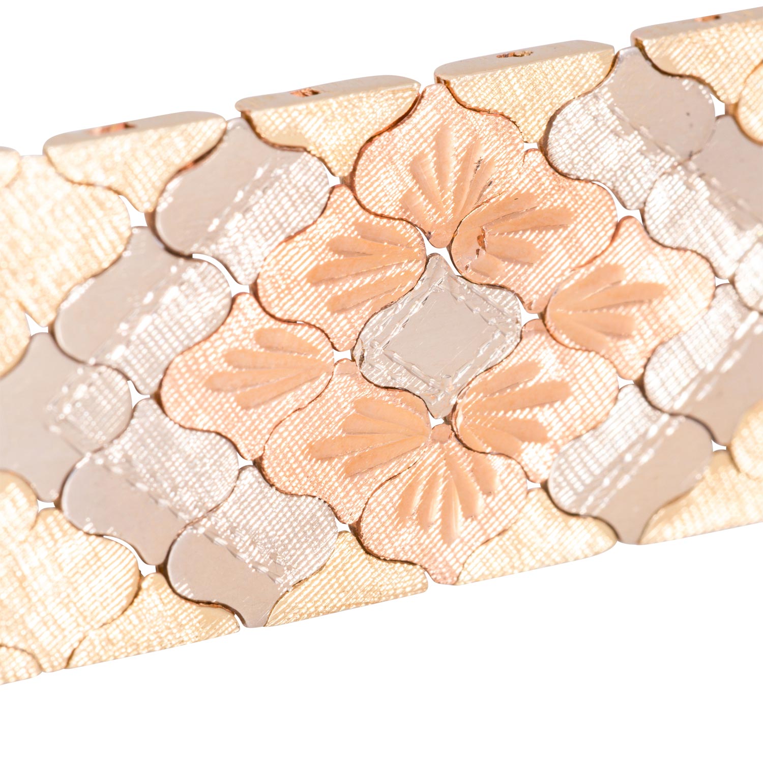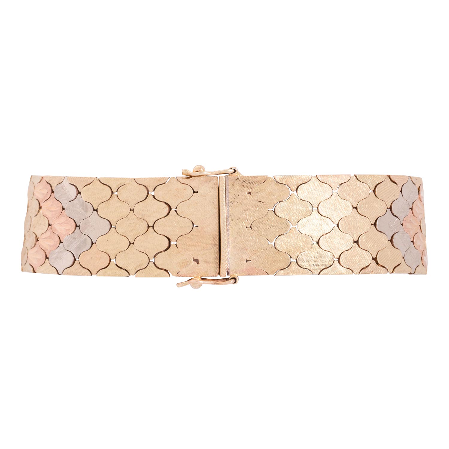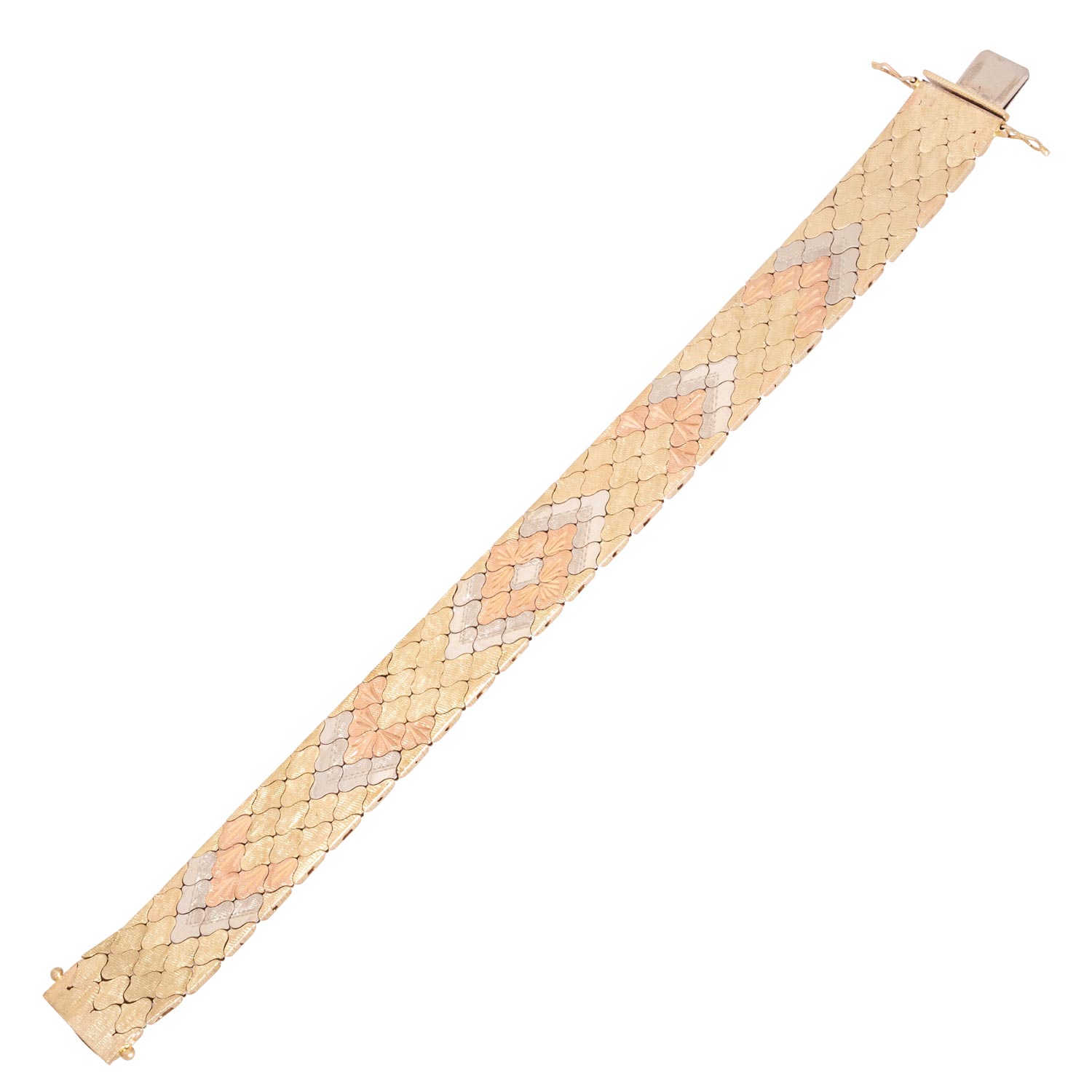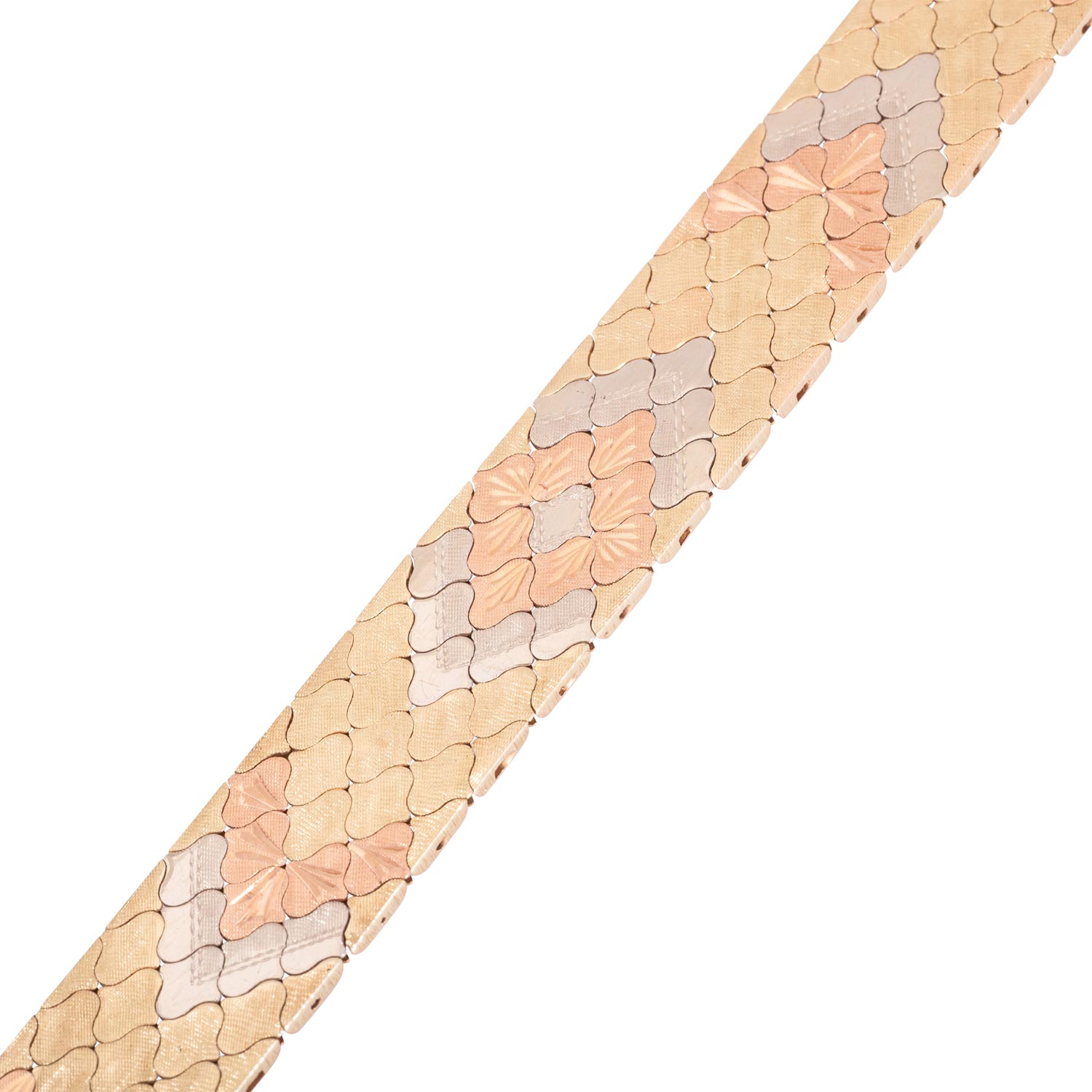 VINTAGE Bracelet, partially engraved, matt/polished surface, YG/WG/RG 14K, 43.9 g, L: 20 cm, W: 1.7 cm, 20th century, with signs of wear, handcrafted.