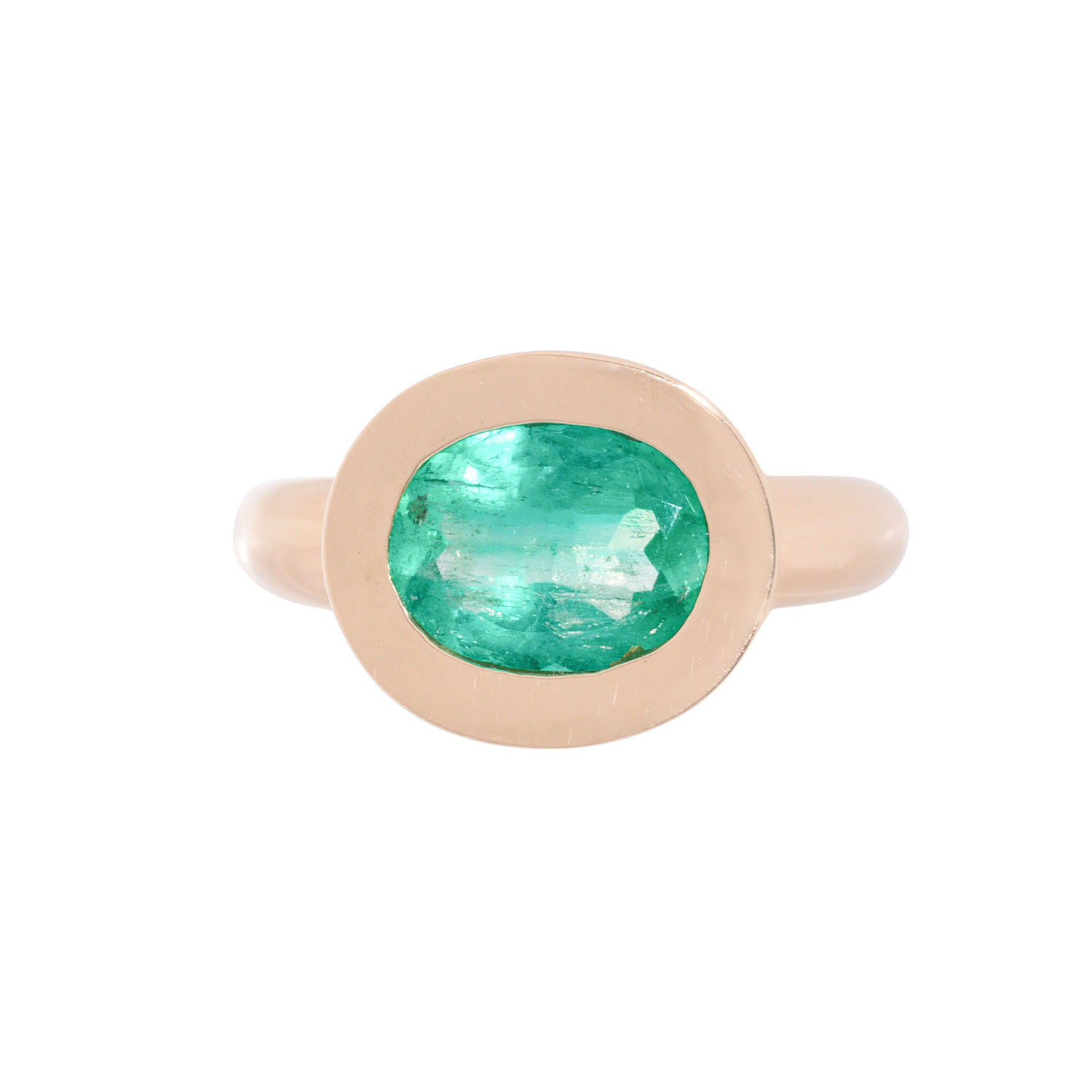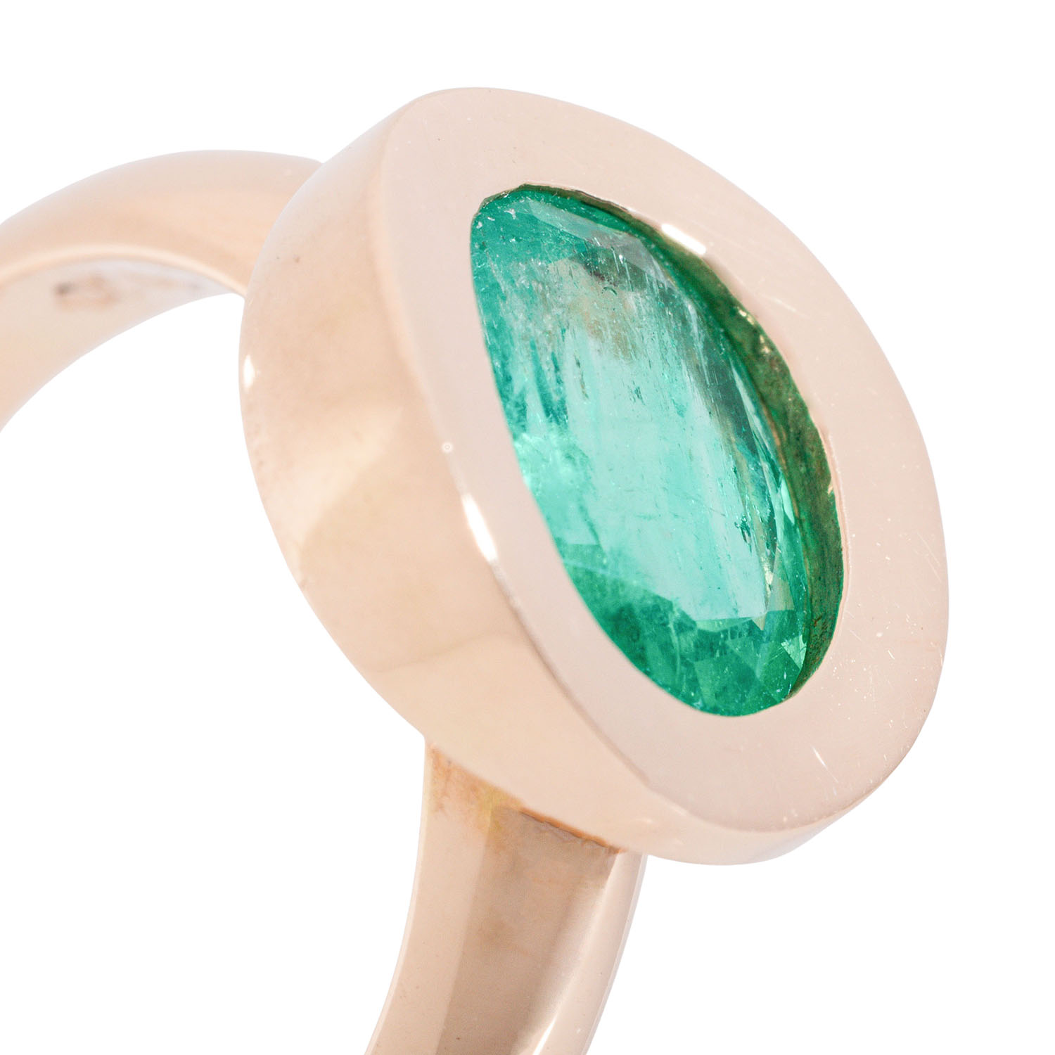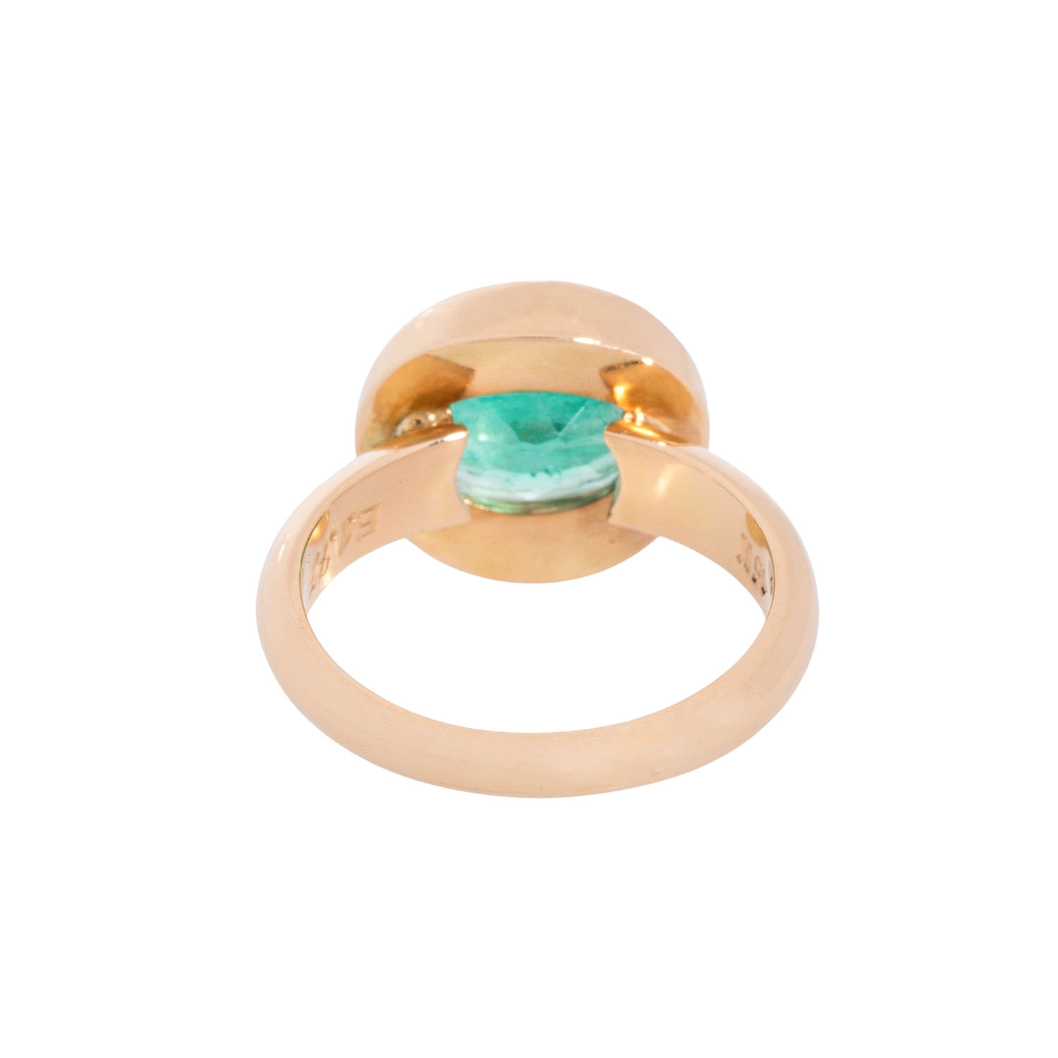 Ring with emerald from Columbia, oval faceted, ca. 10 x 7.4 mm, 1.75 ct (marked), 18ct yellow gold,8.6 g, ring size 56, late 20th century, minimal signs of wear, handcrafted, accessory: certificat.