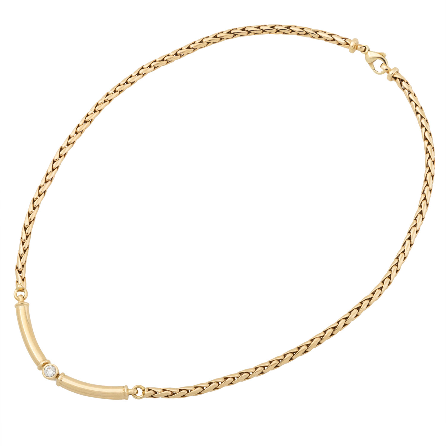 Necklace with brilliant cut diamond, 0.33 ct (stamped), WHITE (H)/VS, 14K yellow gold, 27.9 g, L: 43 cm, late 20th century, minimal signs of wear.