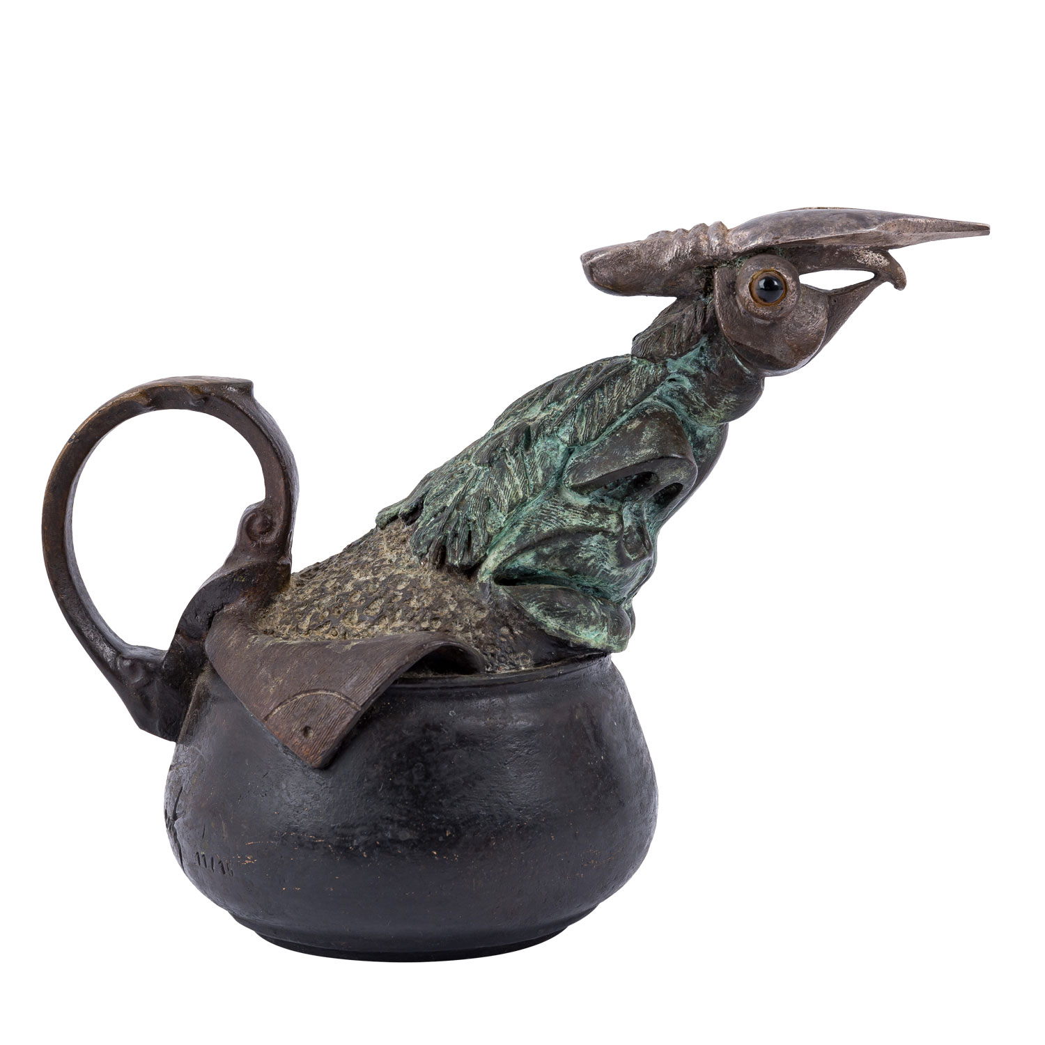 GÖRG, JÜRGEN (born 1951), 'Untitled', 1986 Bronze, coloured patina and partially polished silver, fully sculptural mythical creature made of body parts and objects, signed and dated in the cast, embossed no. 11/15, h: approx. 17.5 cm. Slight signs of age.