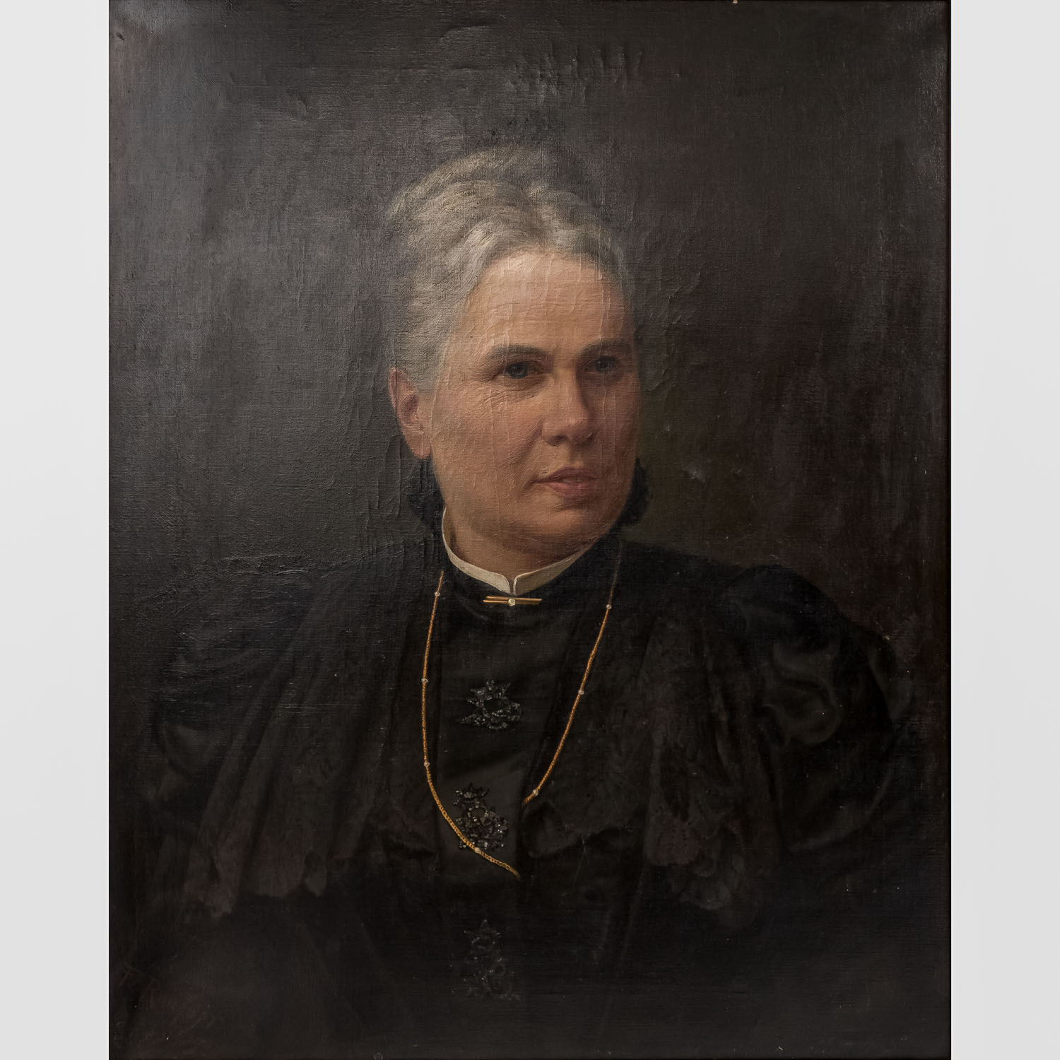 1 x oil on canvas, Sophie Kauffmann, sign. F. Ronfort 190(?), note on the reverse “Sophie Kauffmann (...), born January 20, 1842 in Neckargarteck near Heilbronn(...), died April 1, 1919 in Heilbronn, mother of Walter Kauffmann, Julie Bricher, Prof. Dr.med. Dr. iur, Dr. phil. Max Kauffmann, Alfred Kauffmann”, dimensions in frame 84 x 70 cm.
