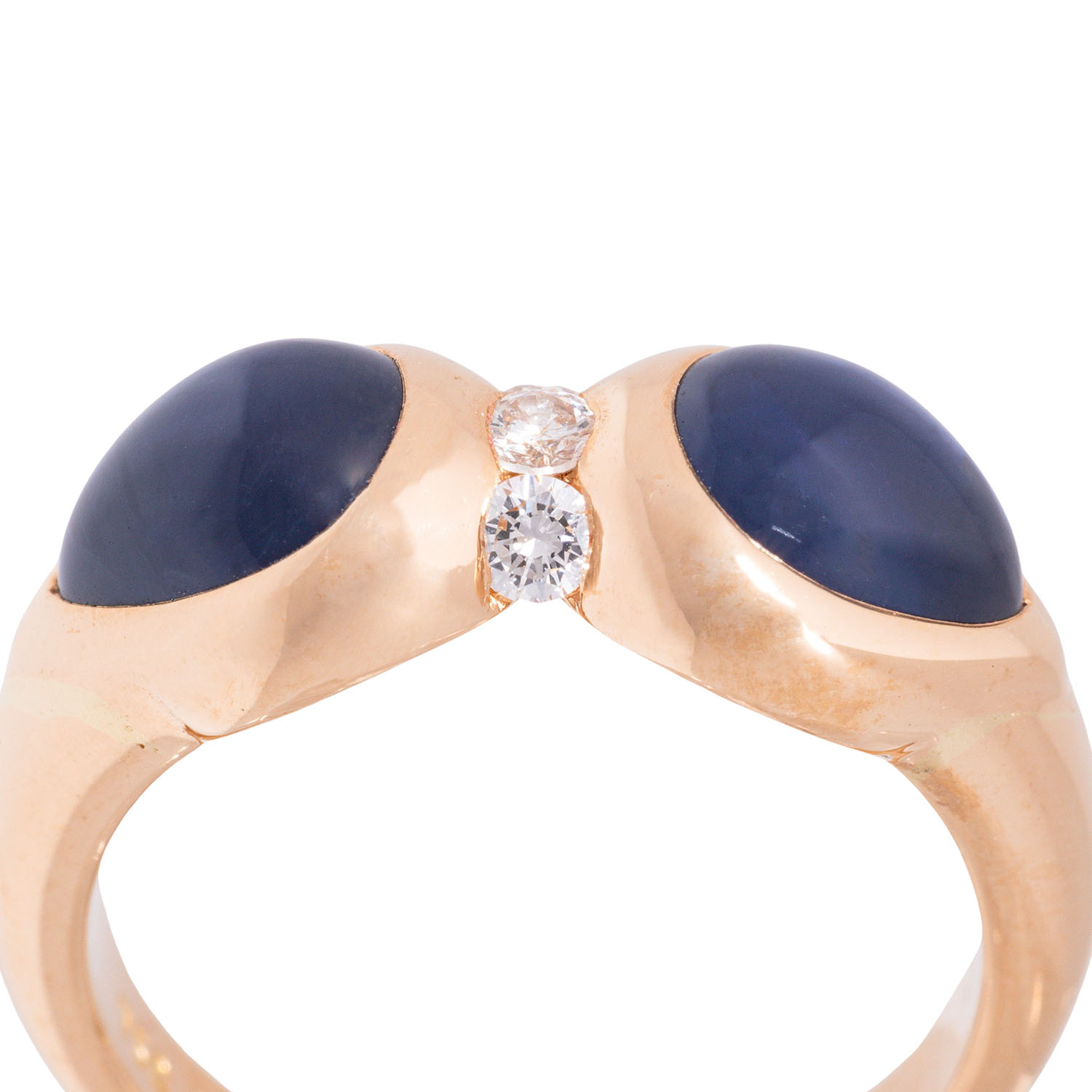 EUGEN THEODOR HIRNER ring with 2 fine sapphire cabochons and 3 brilliant-cut diamonds