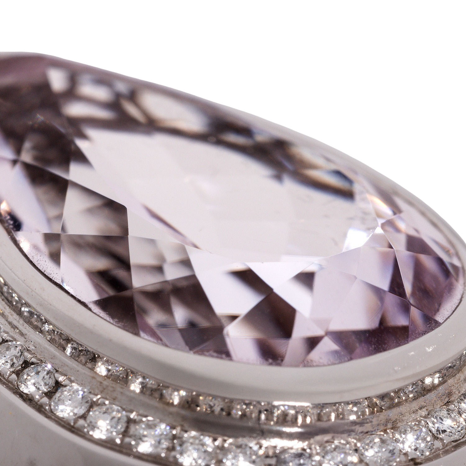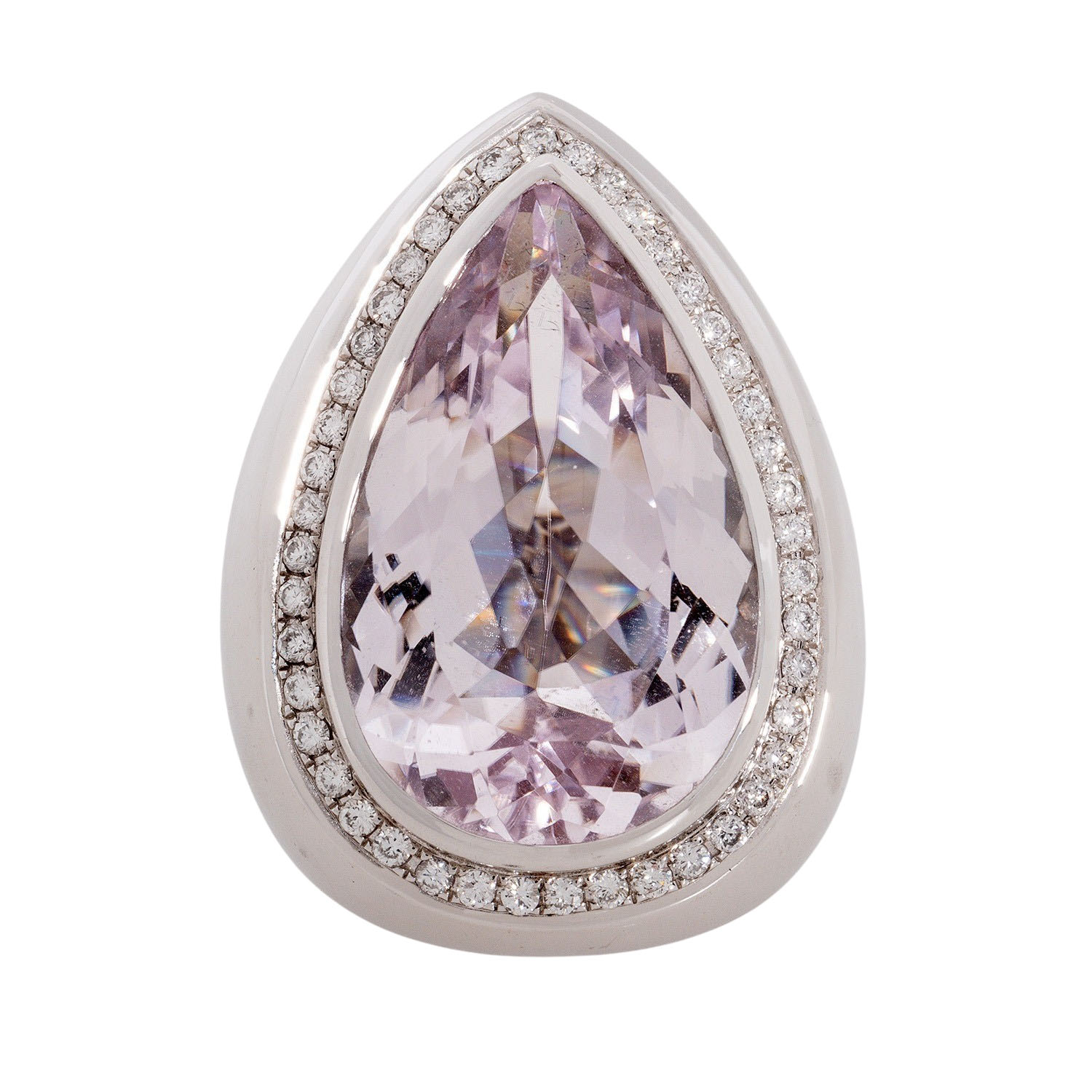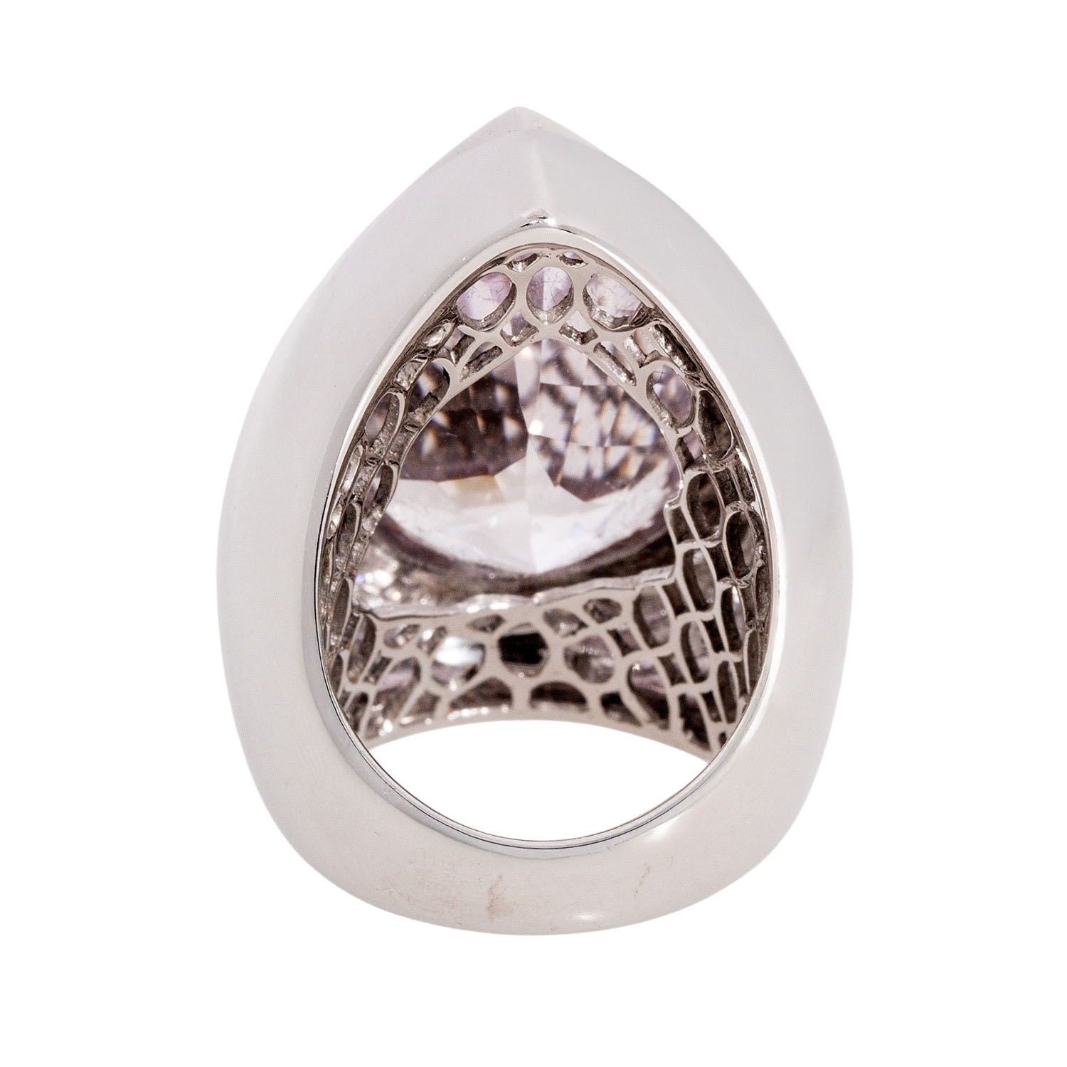 Extravagant cocktail ring. Set with 1 kunzite 31.25 cts. and diam. brill. totaling 0.71 ct. W/SI.