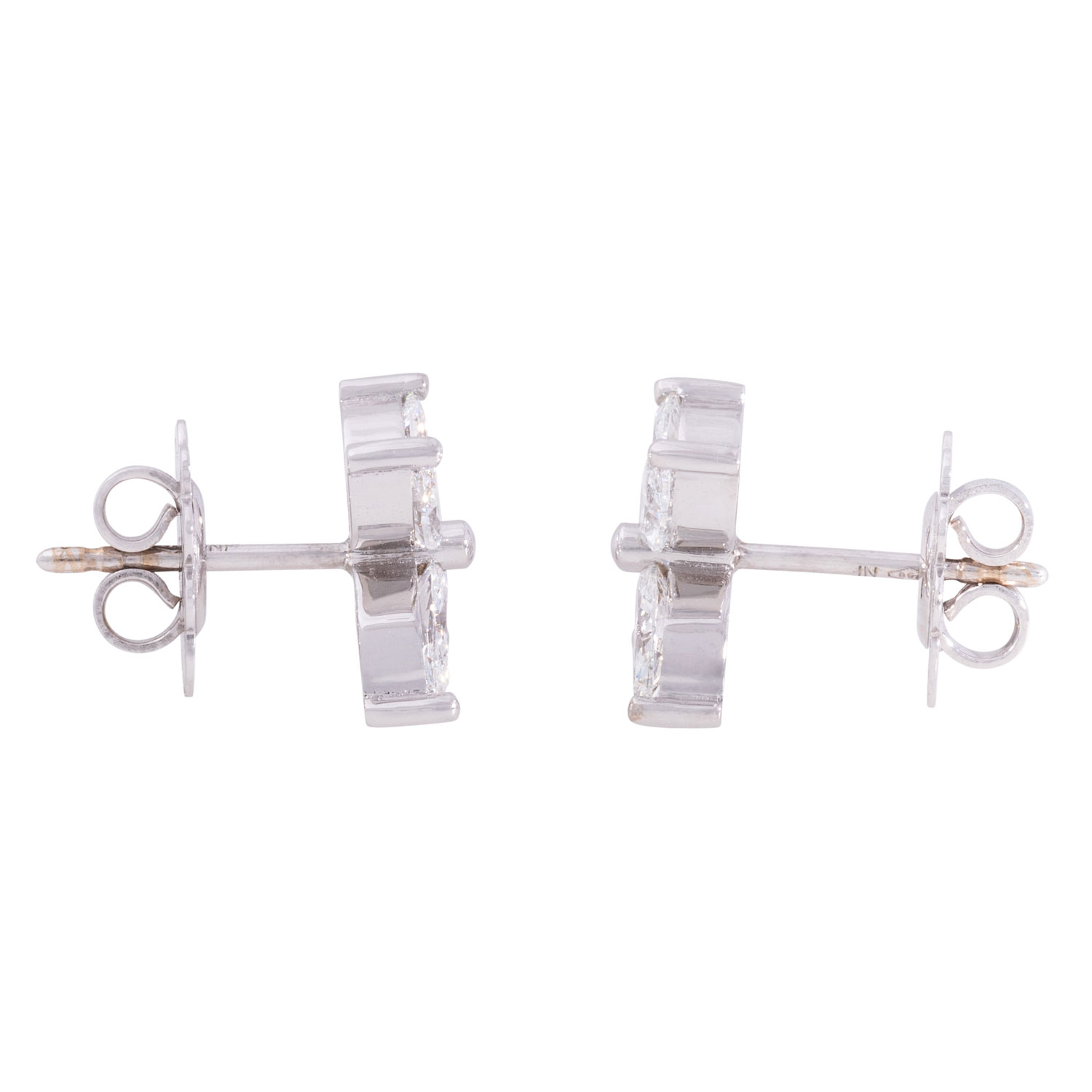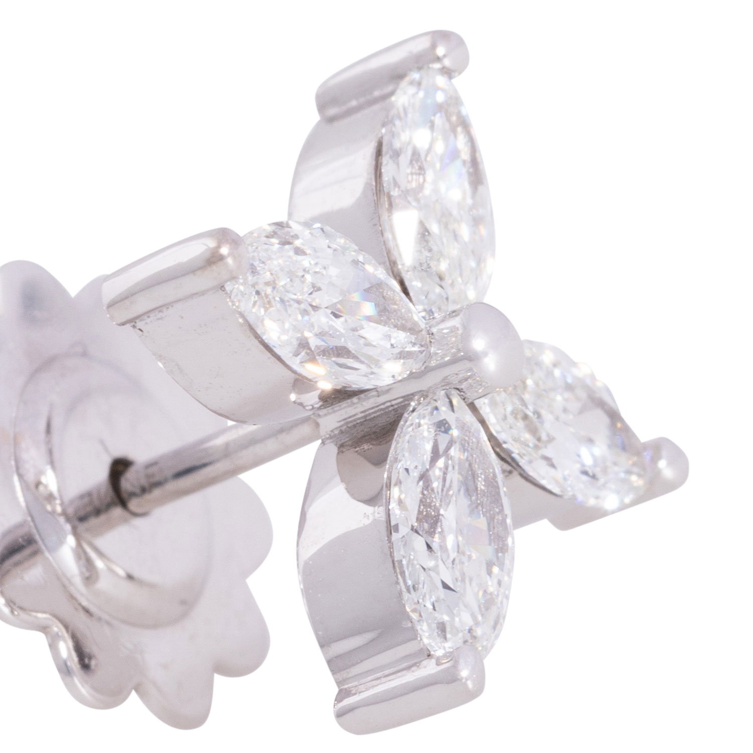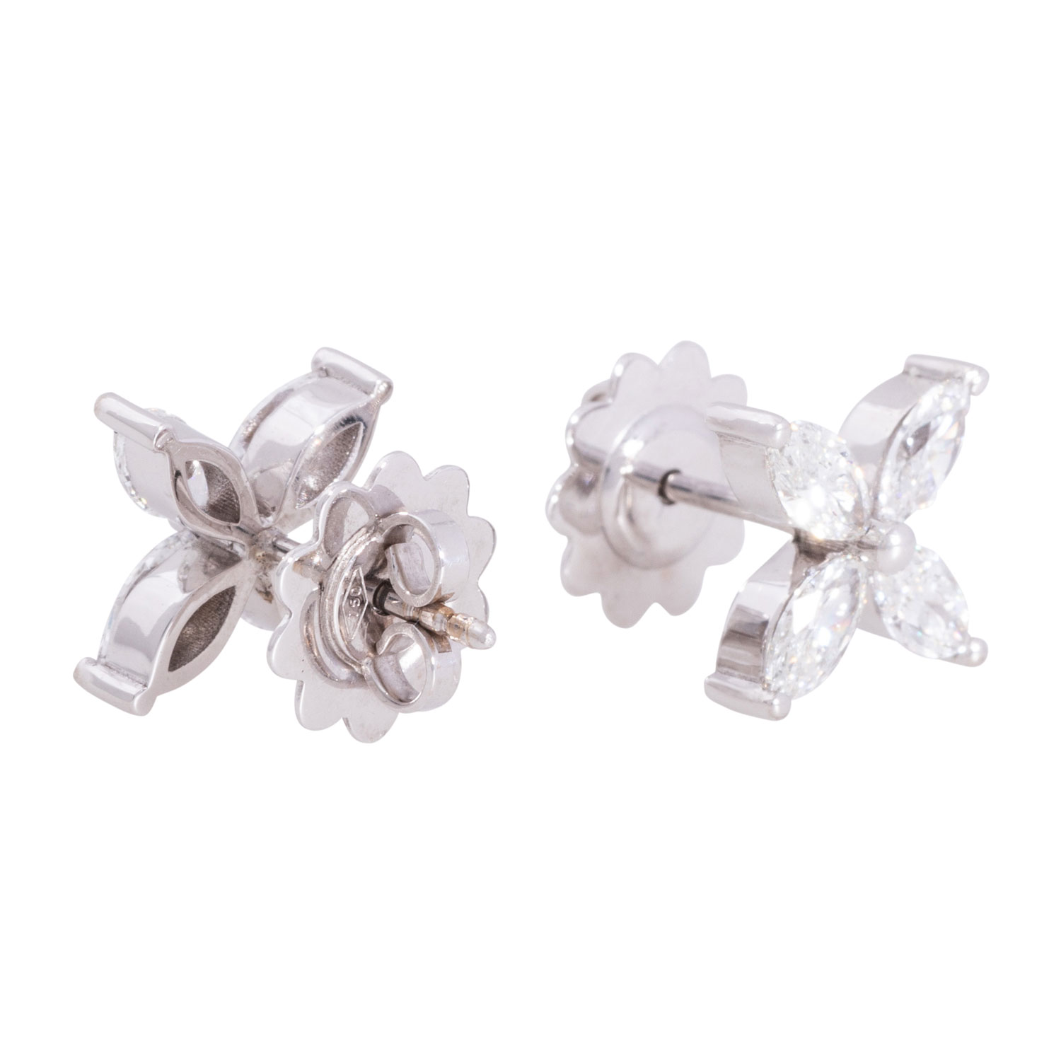 Fine stud earrings with 8 marquise-cut diamonds totalling 1.72 ct, EW-RW+(E-F)/VS, WG 18K, 4.4 g, 21st century, mint condition.
