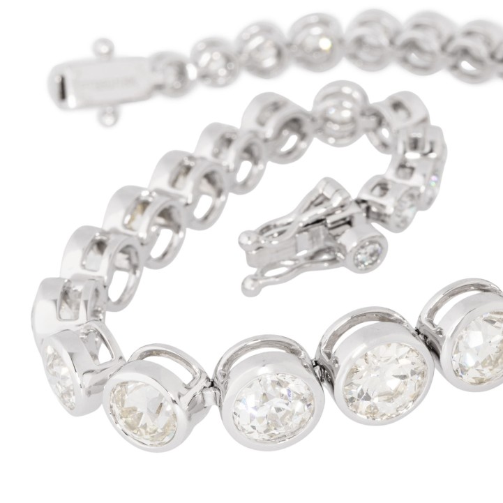 Bracelet, with 33 oldcut diam. tot. 12,45 ct. H-I/VVSI-SI. PLATINUM/WG 18 K, 26,70 g. Retail Value 59.700 € (2025) enclosed. Length ca. 18 cm. High jewelry craftsmenship.