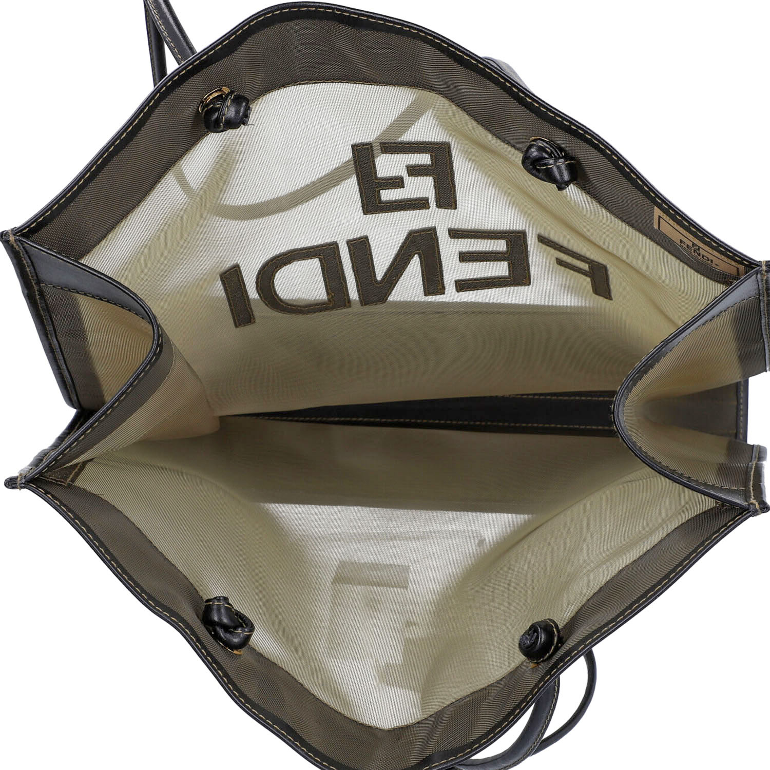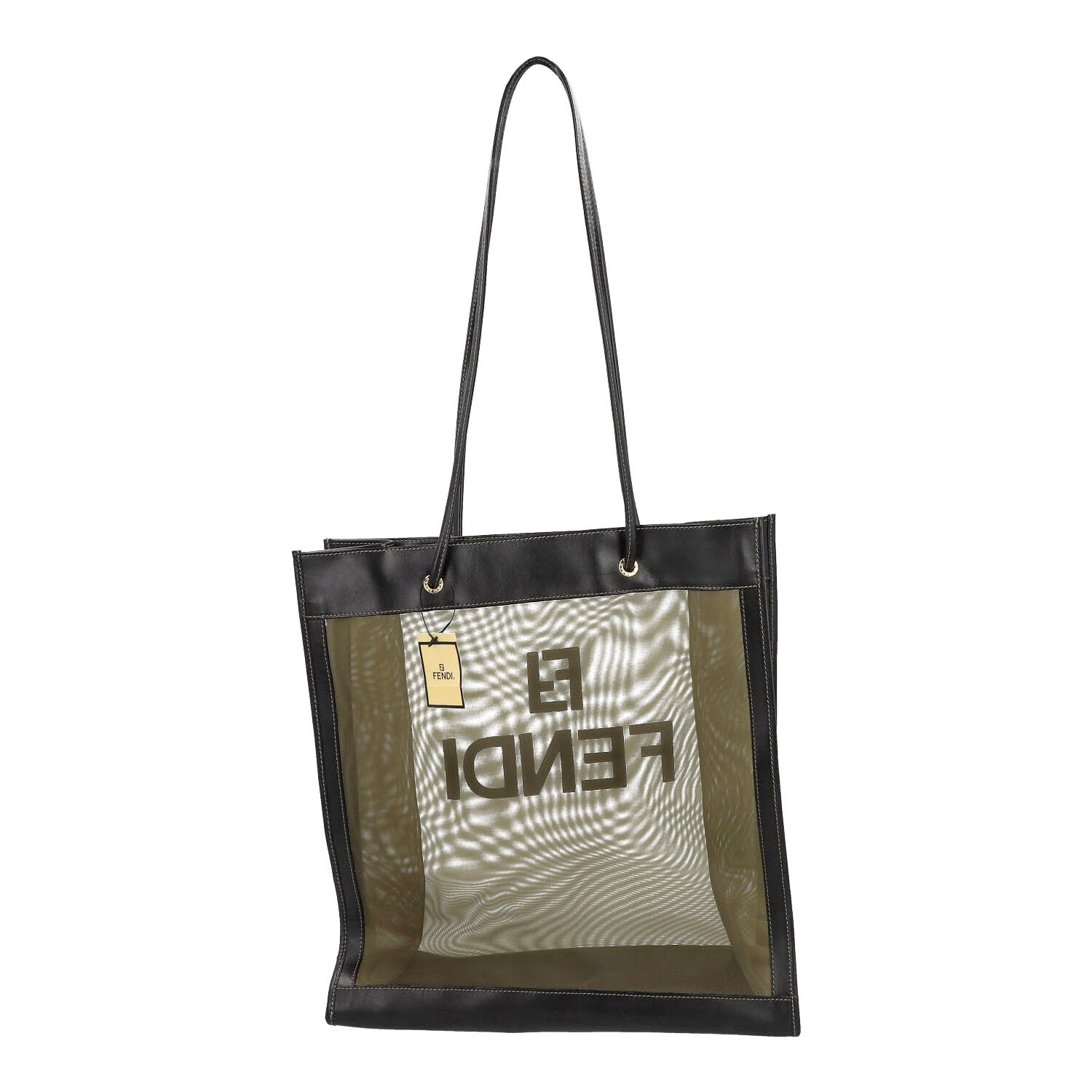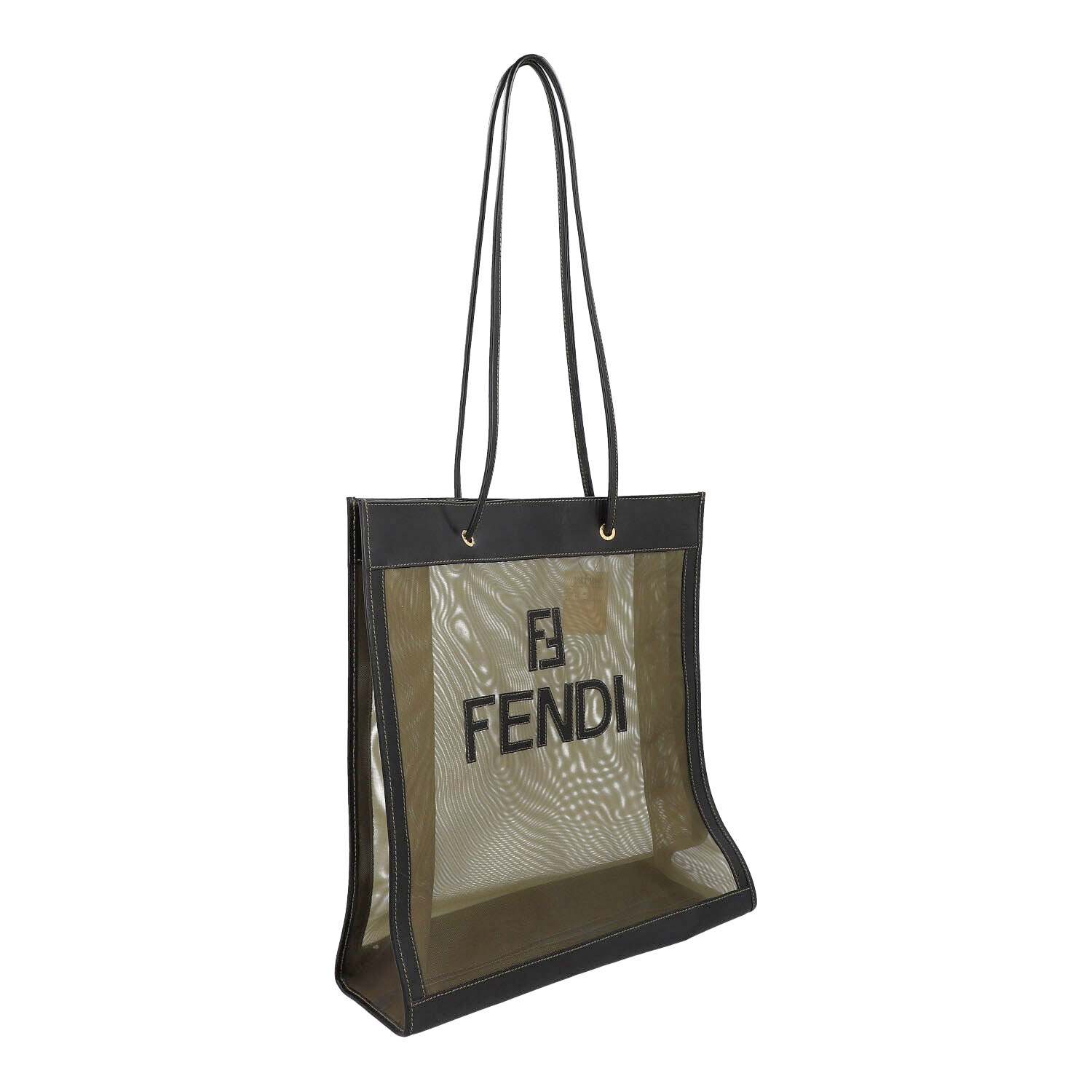 FENDI Shopper. Model made of mesh with leather details, logo application, gold-colored hardware and narrow double handles. Good condition. 36 x 12 x 40 cm.