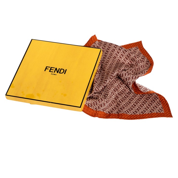 FENDI scarf. 100% silk. Zucca design. Hand-rolled hems. 45 x 45 cm. Box included. Unworn with label.