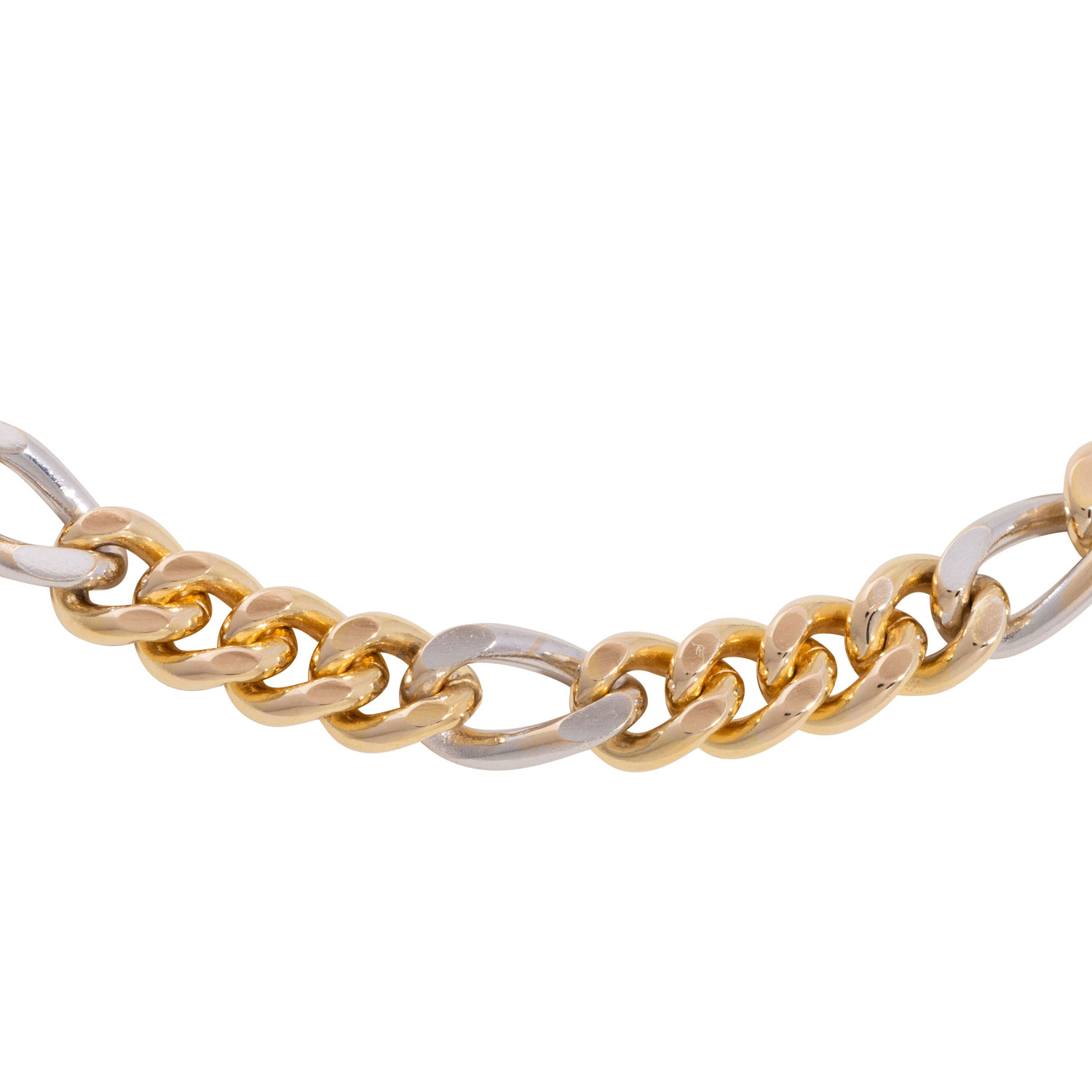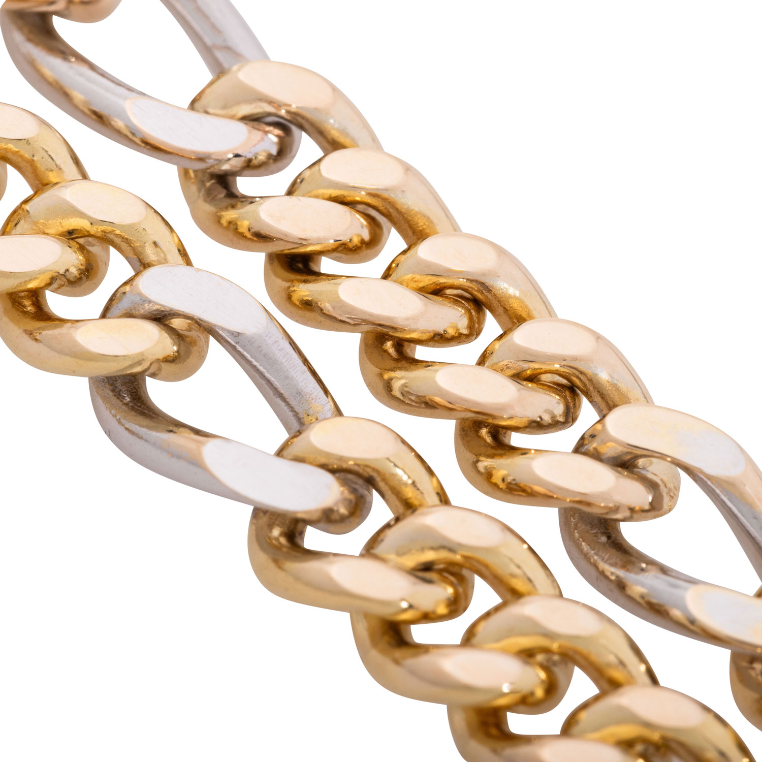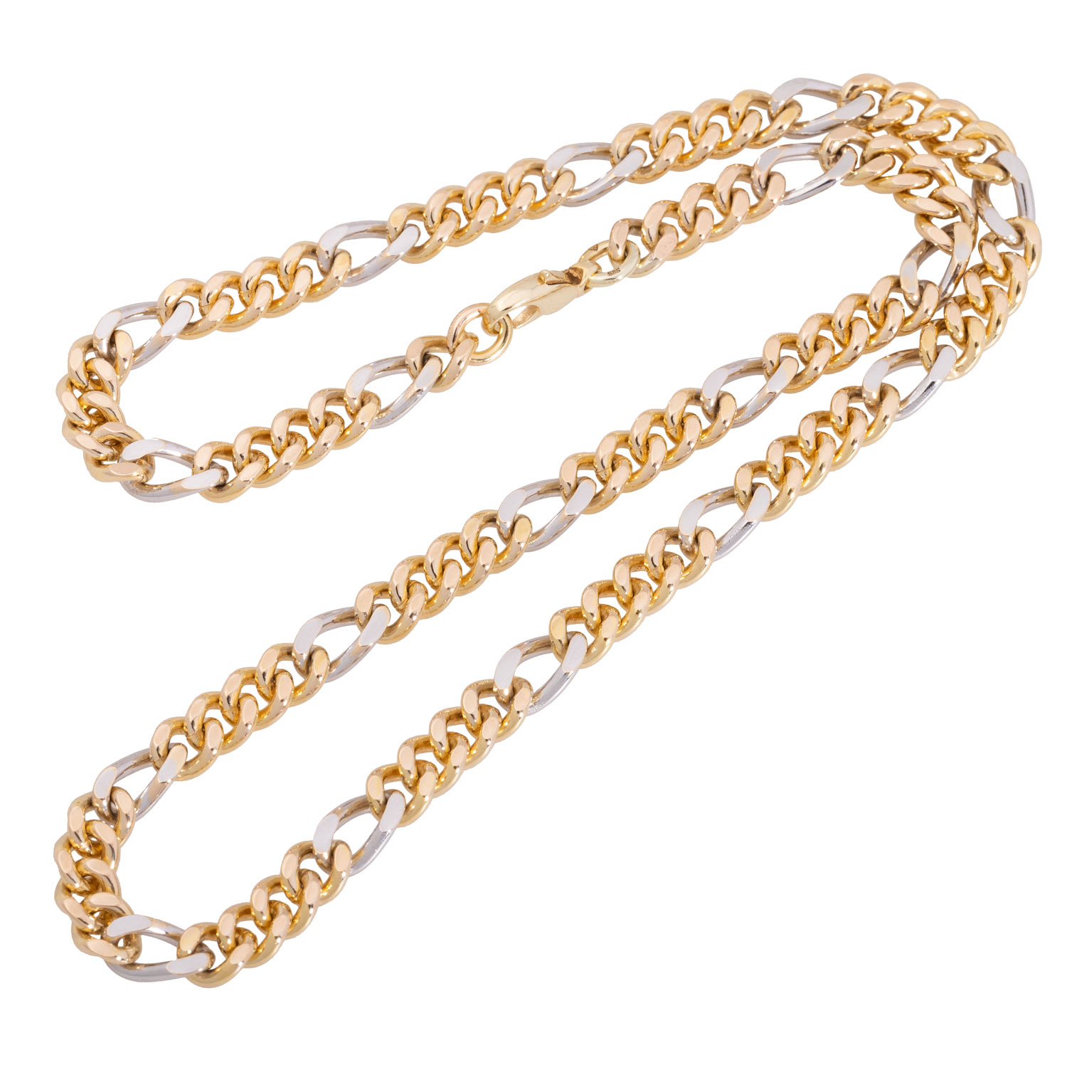 Figaro chain, polished, 14K yellow and white gold, 54.3 g, L: ca. 46 cm, W: ca. 6 mm, 2nd half of 20th century, minor signs of wear.