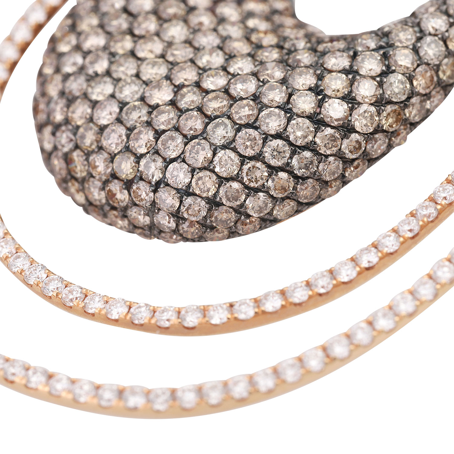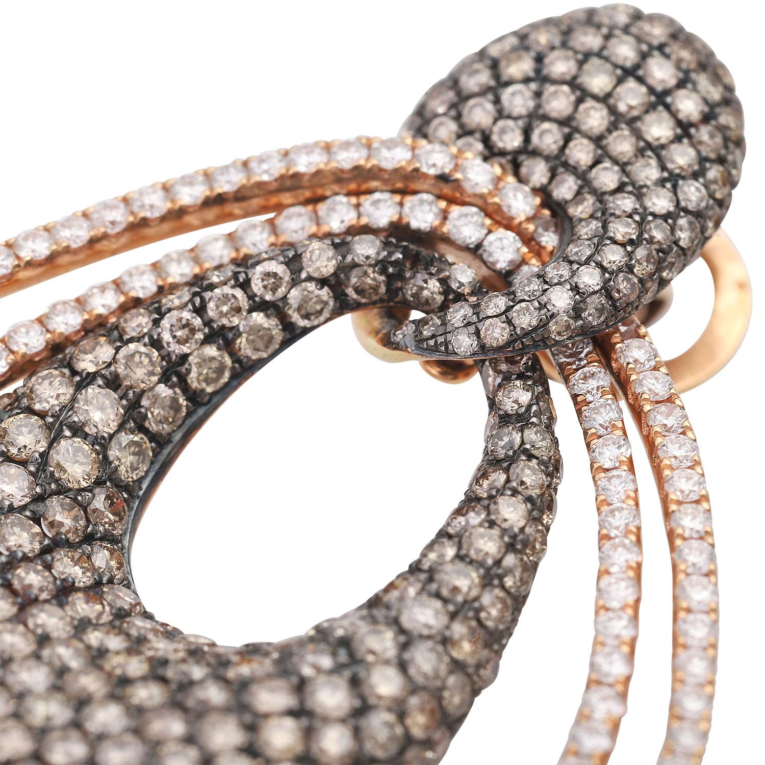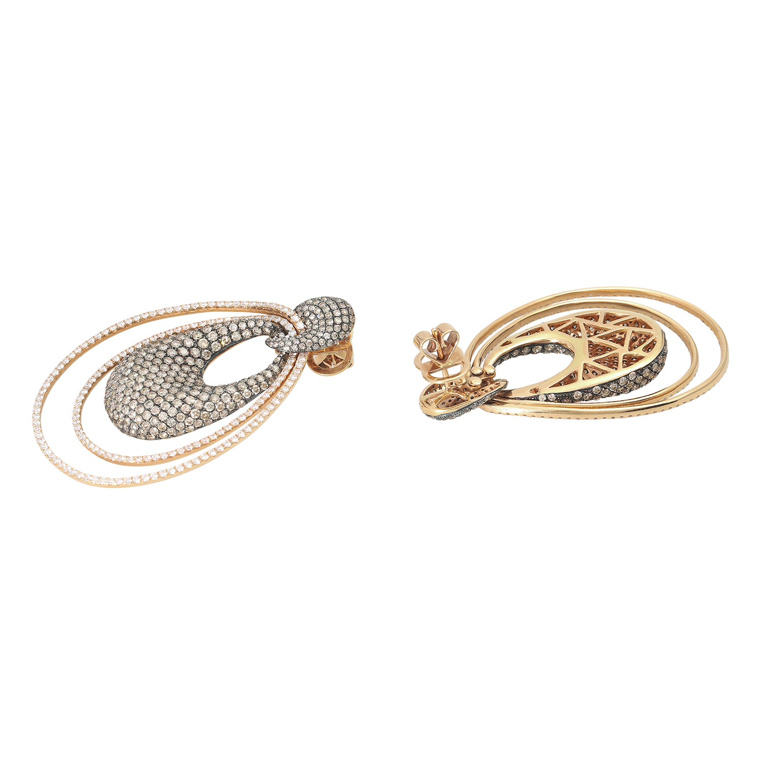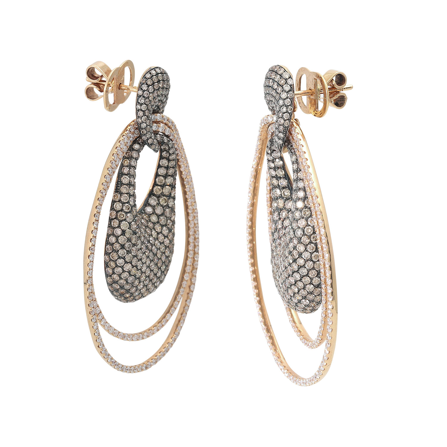 Fine ear jewelry. Set with brown brilliant-cut diamonds totaling 9.33 cts. and white brilliant-cut diamonds totaling 2.88 cts. WHITE/VSI.