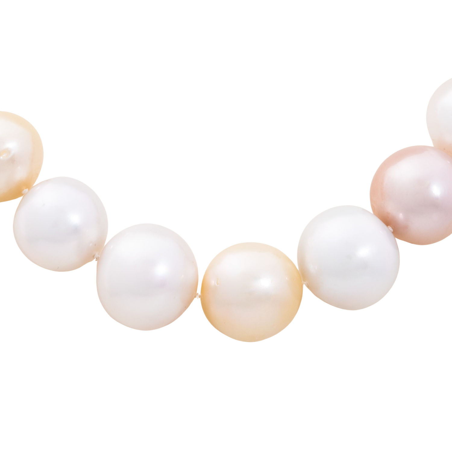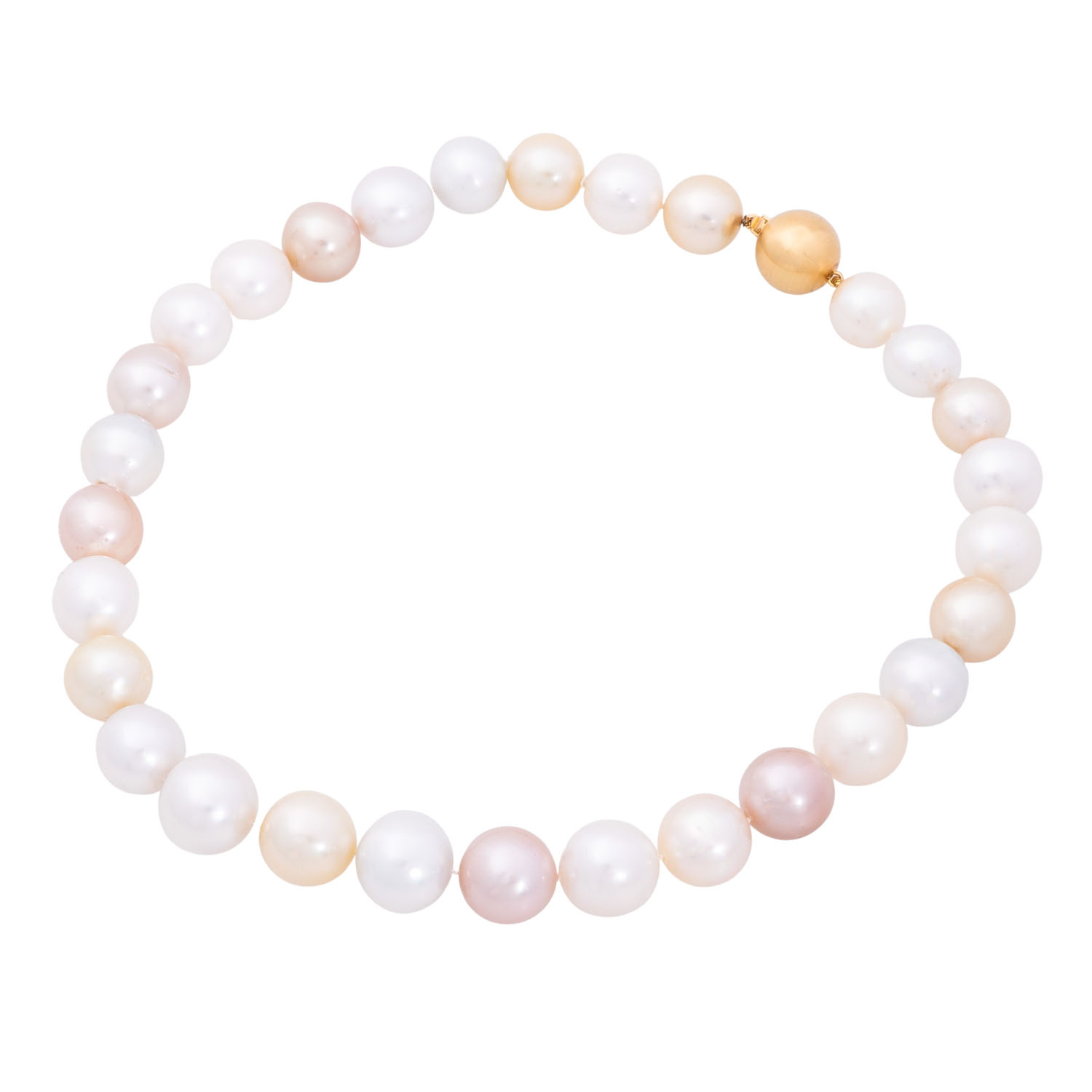 Fine South Sea choker with a light gradient of 14-16 mm. Fine multicolor composition from white to pale yellow to pale pink.