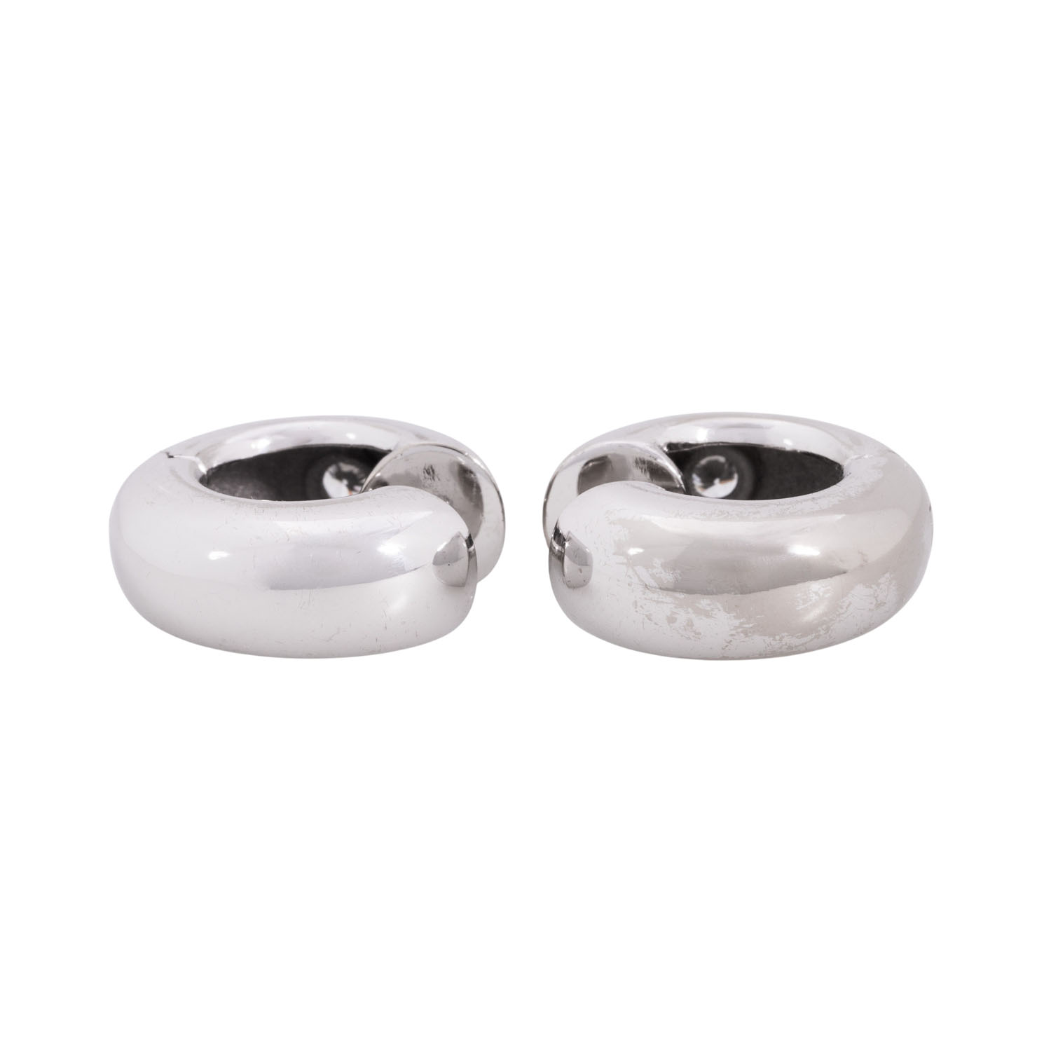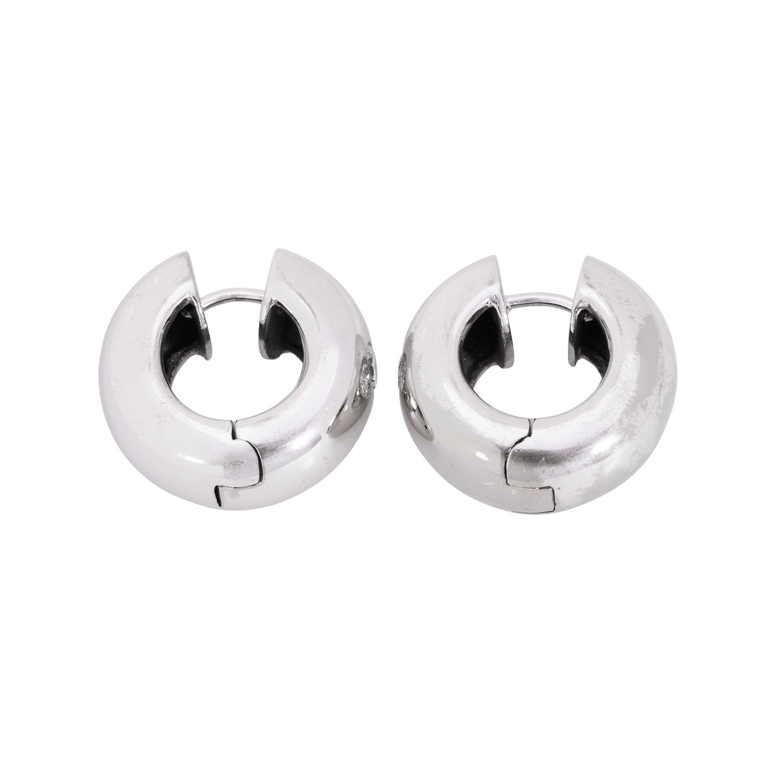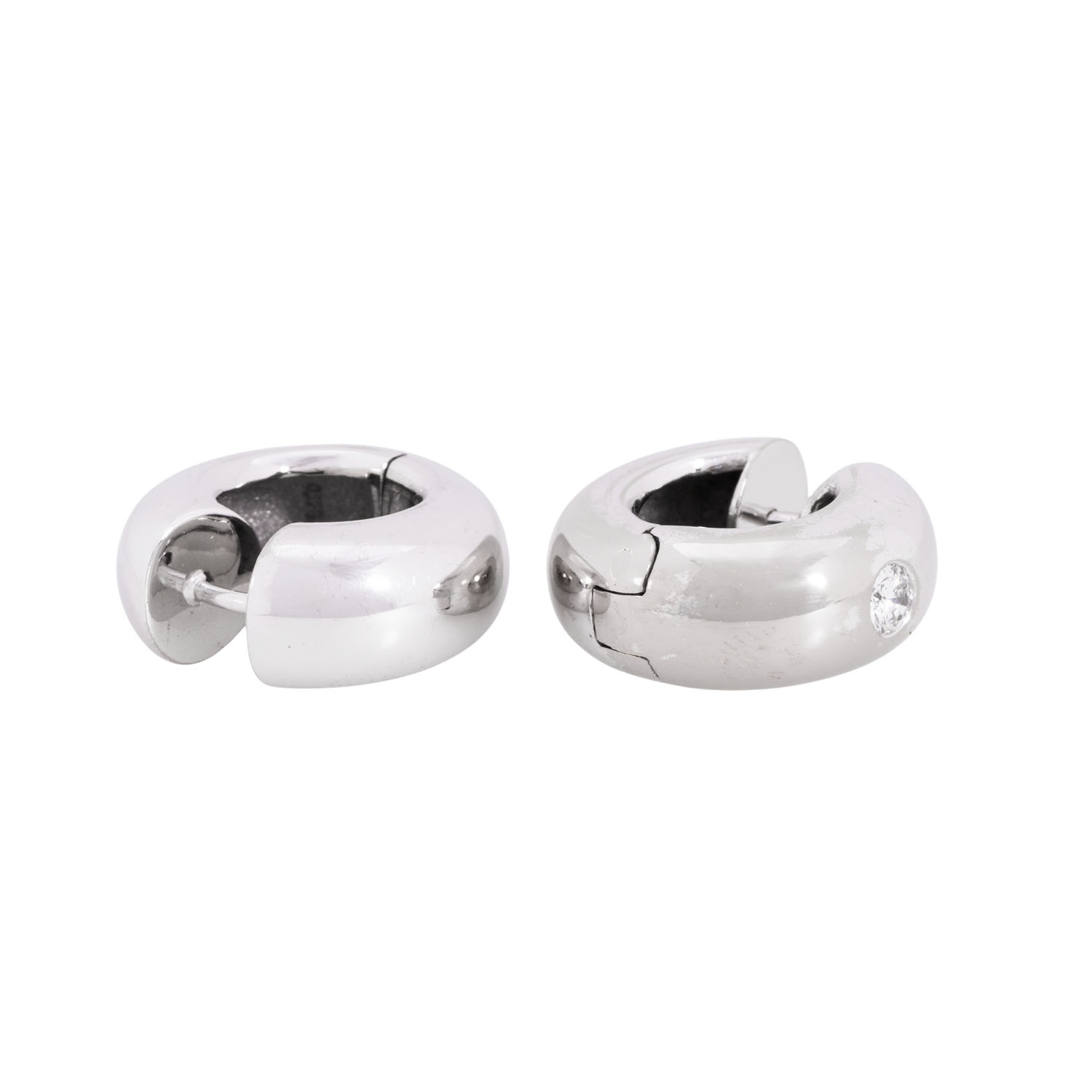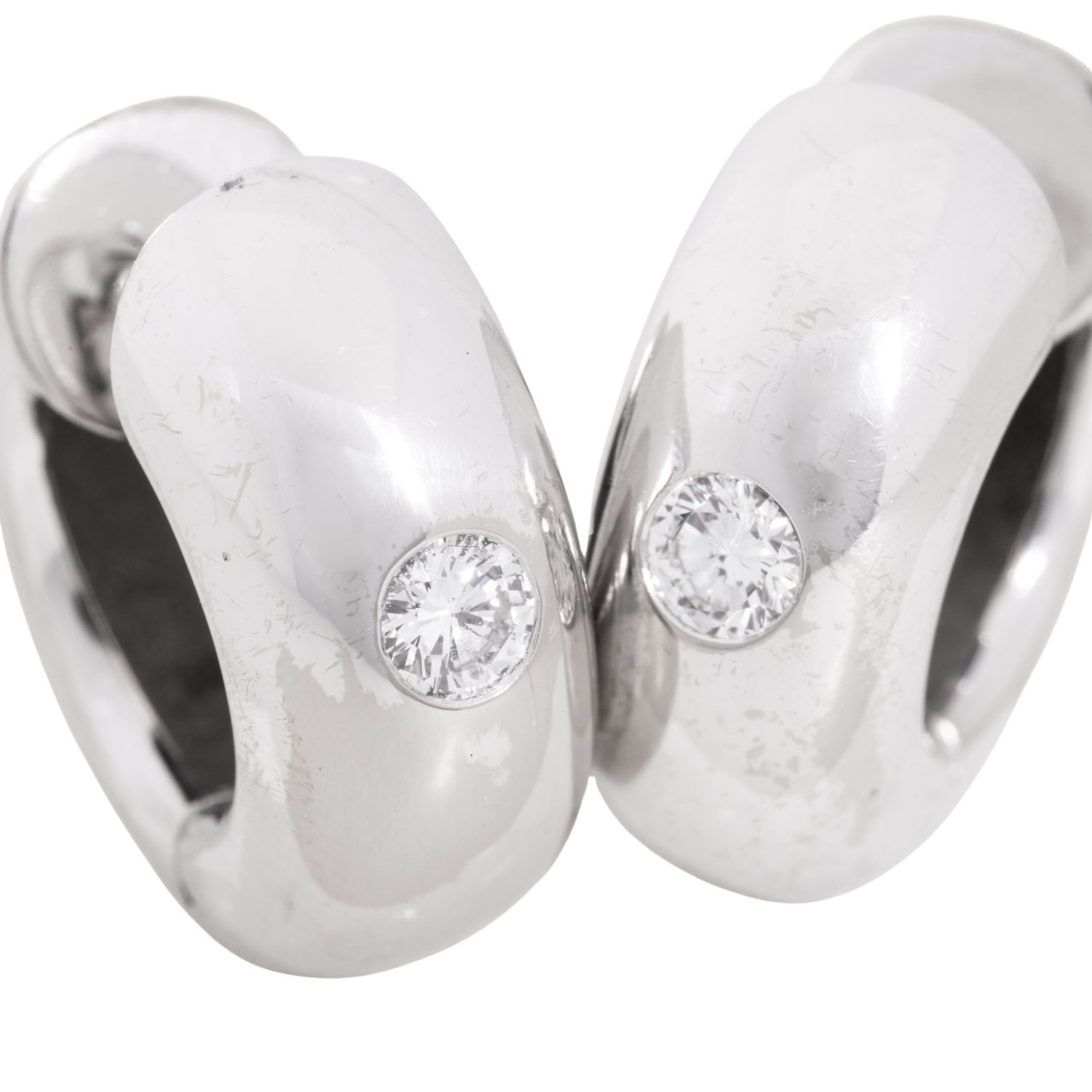 Earrings with brilliant-cut diamonds totalling ca. 0.4 ct, ca. TIN (M)/SI, 18K white gold, 18.3 g, D: 19 mm, W: 7.5 mm, late 20th century, good condition.