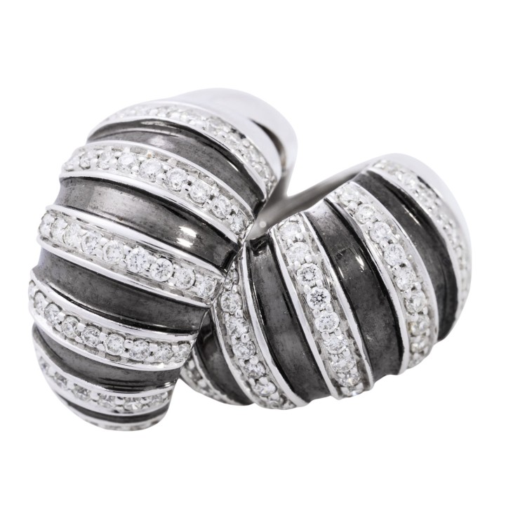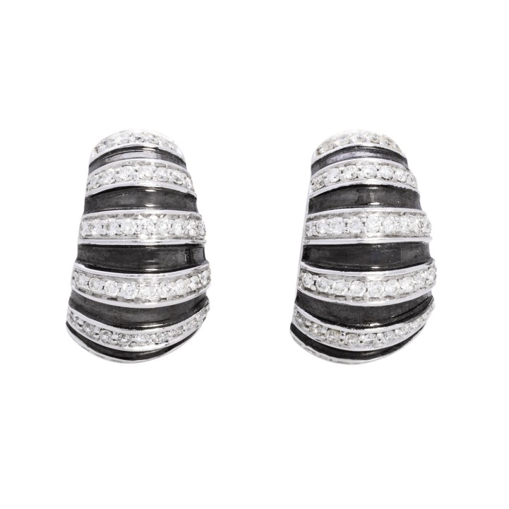 Folding hoop earrings with 50 brilliant-cut diamonds totaling approx. 1 ct,