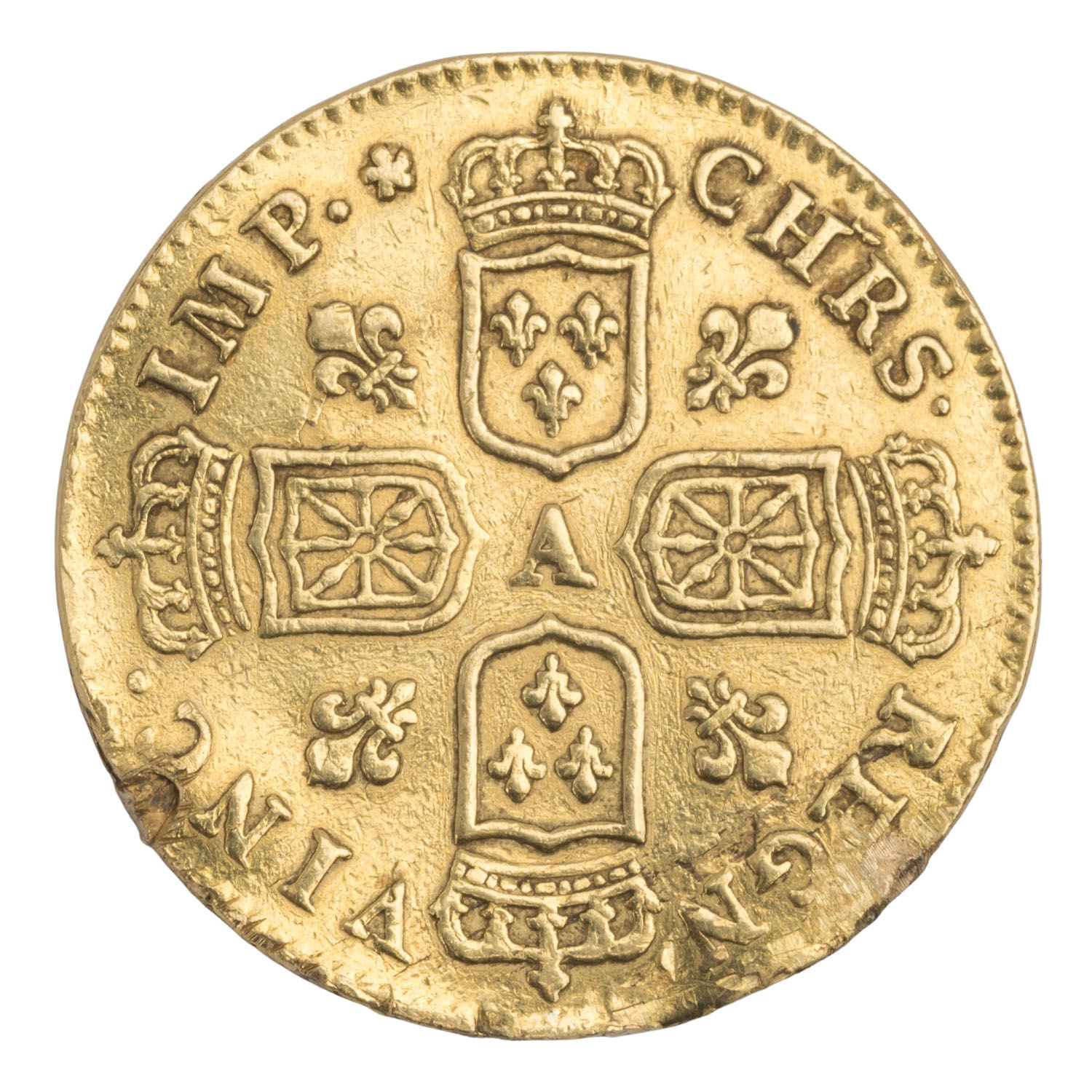 France - Louis XV, 2 Louis d'or 1717-A (Paris), approx. 12.17 g. FINE to almost VERY FINE, heavily worked on the upper edge between ten o'clock and two o'clock, with sealed perforations, probably previously used as a piece of jewelry. KM# 428.1