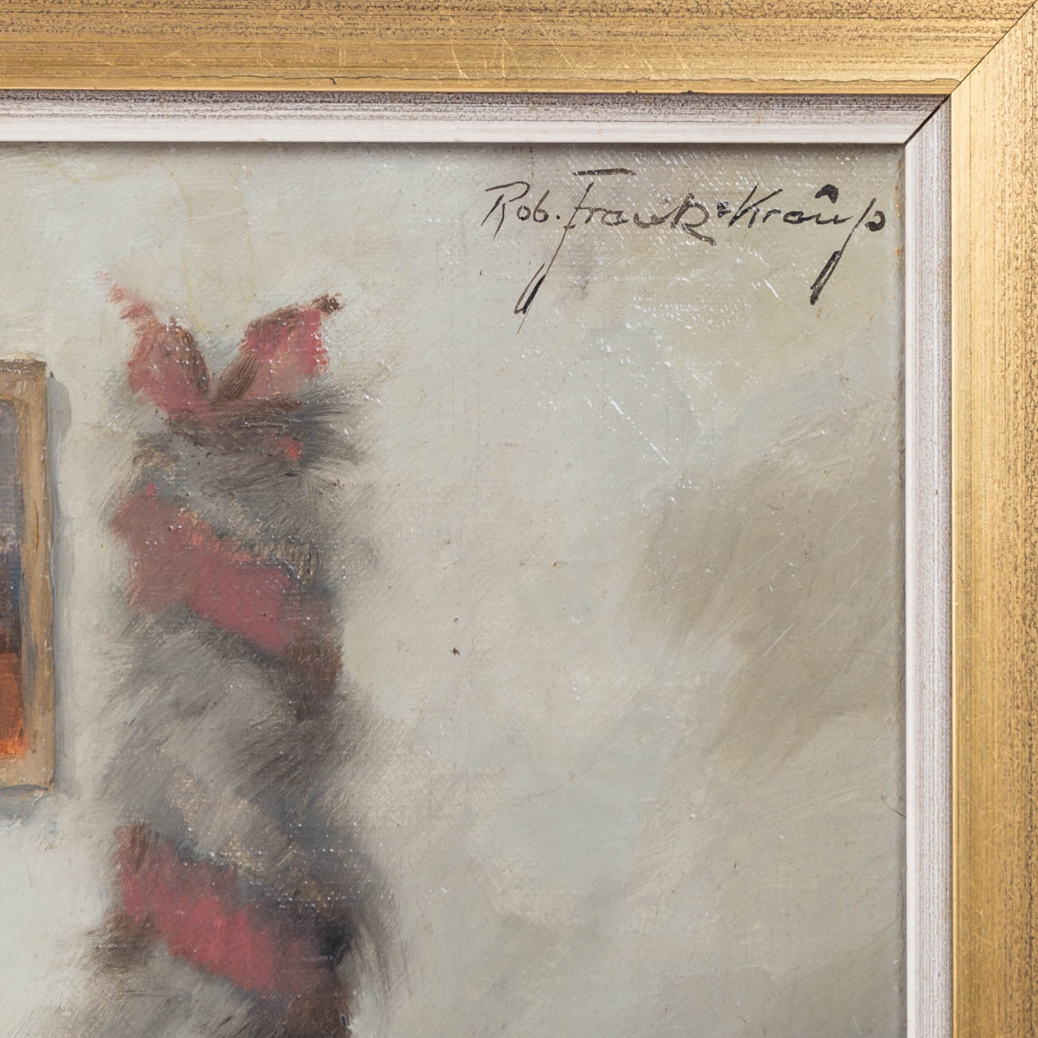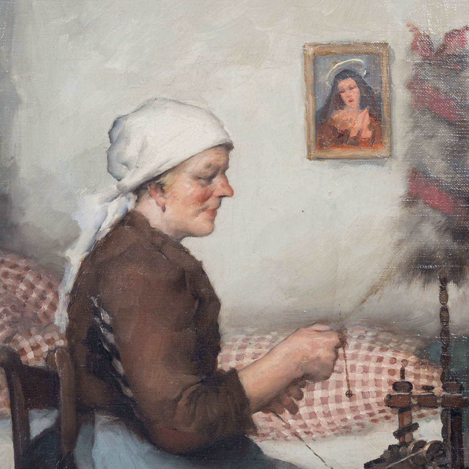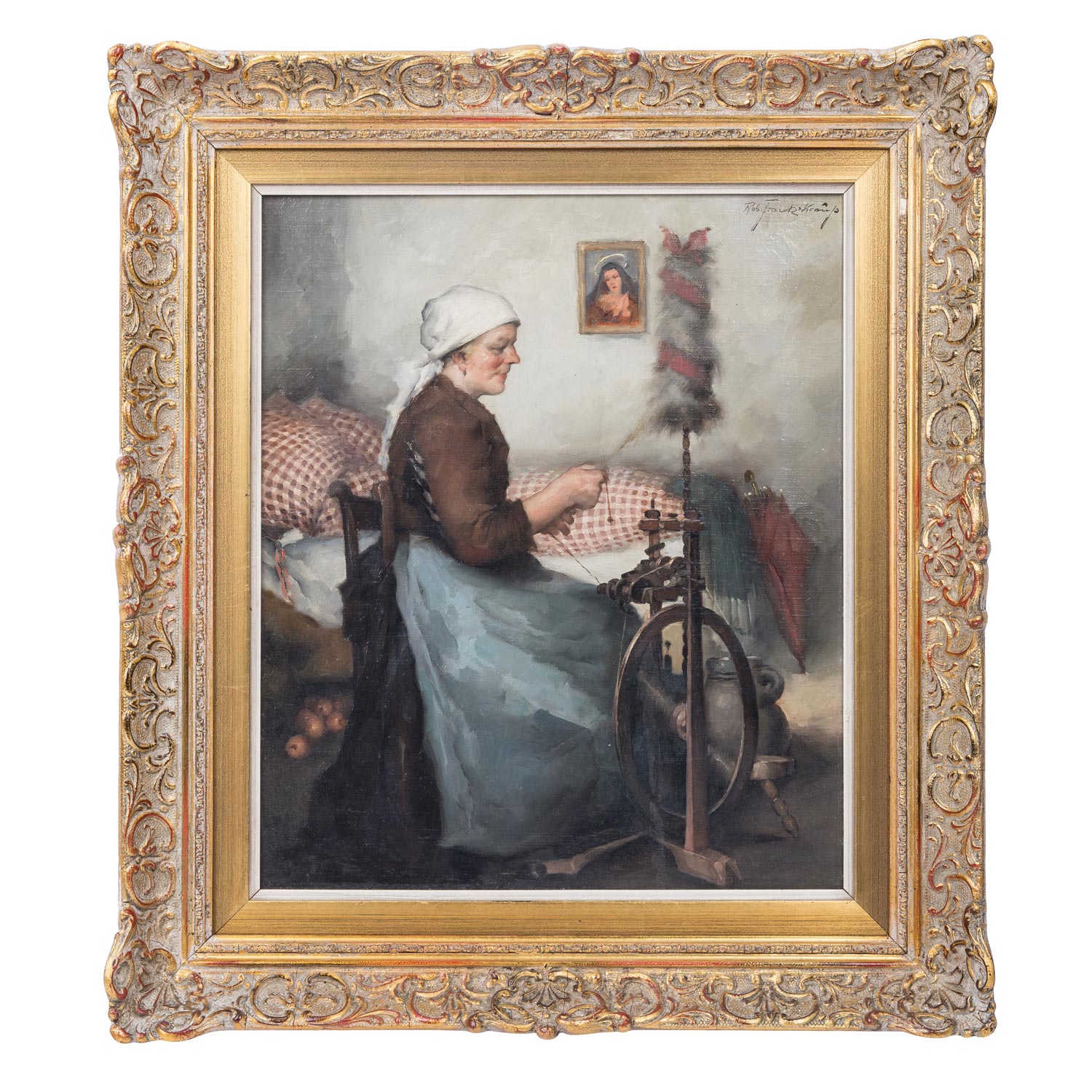 FRANK-KRAUSS, ROBERT (1893-1950), 'Farmer's wife spinning in the parlour', signed upper right, oil/canvas, HxW: approx. 38x32 cm (52x46 cm with frame). Slight signs of age. With frame (edges slightly damaged and glued).