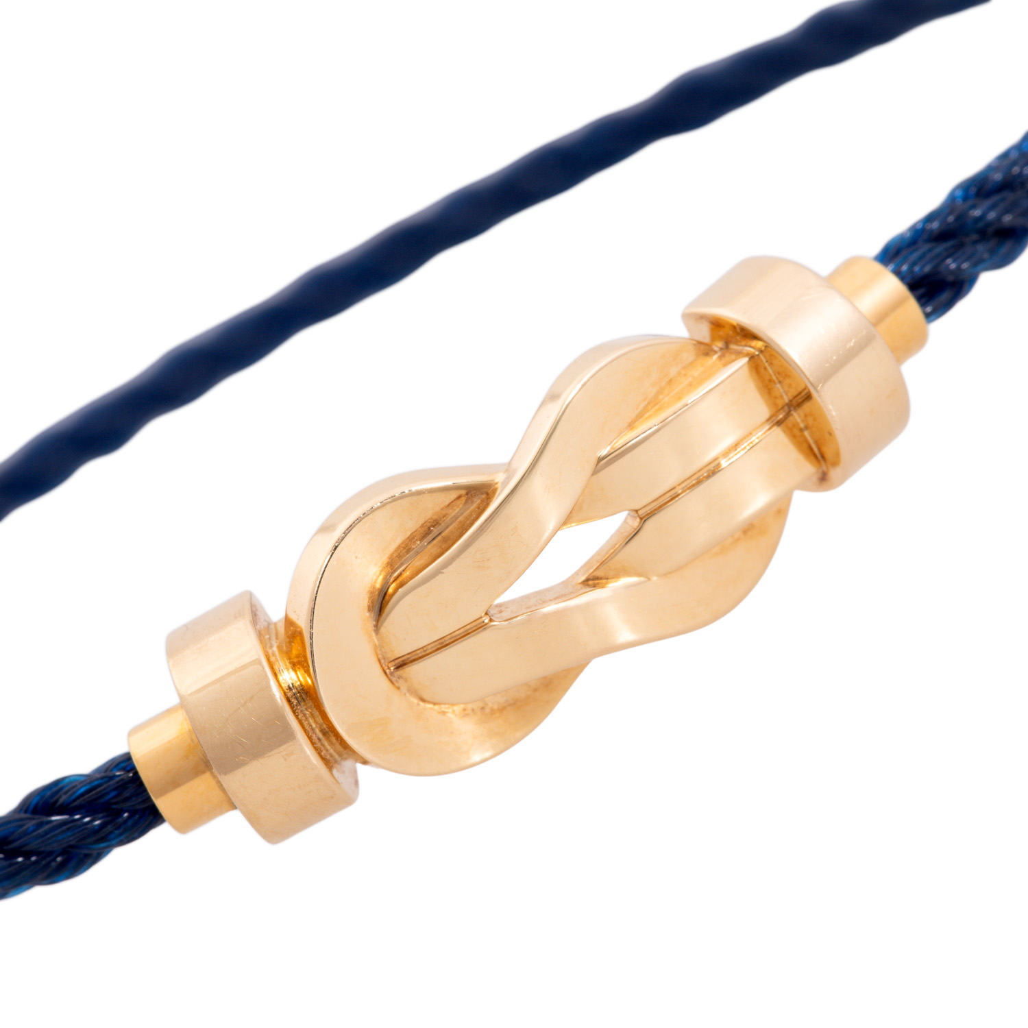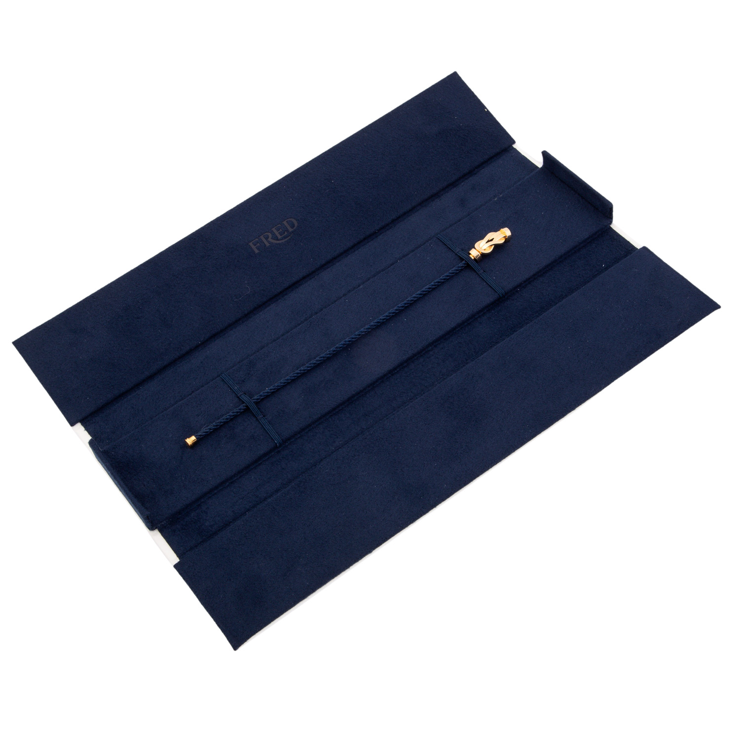 FRED bracelet 'Chance Infinie' medium model, NP: 3,040 €, clasp 18K YG, Navy Blue cord strap, L: ca. 17 cm, 4.9 g, 21st century, minimal signs of wear, incl. original case.
