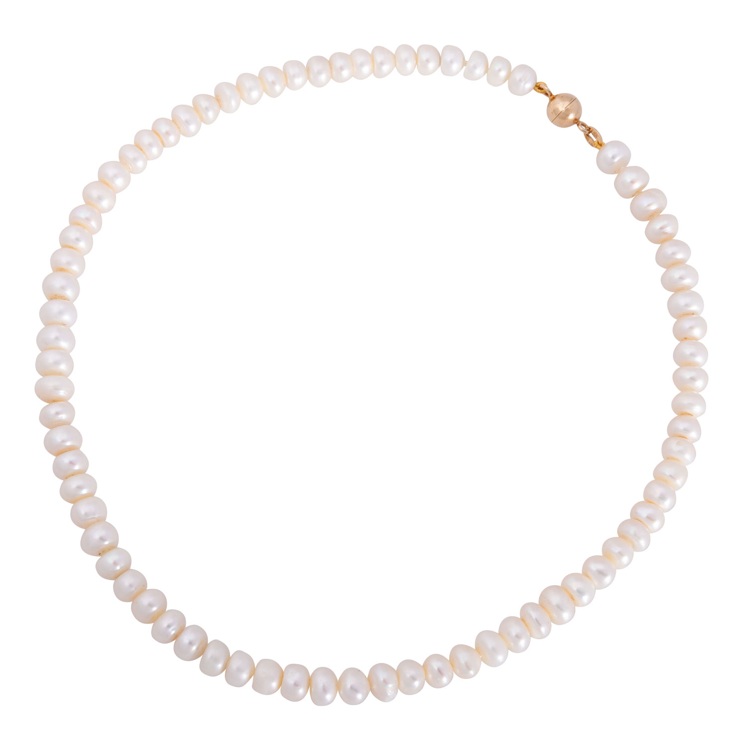 Pearl necklace, 110 white-cream-colored Akoya pearls,