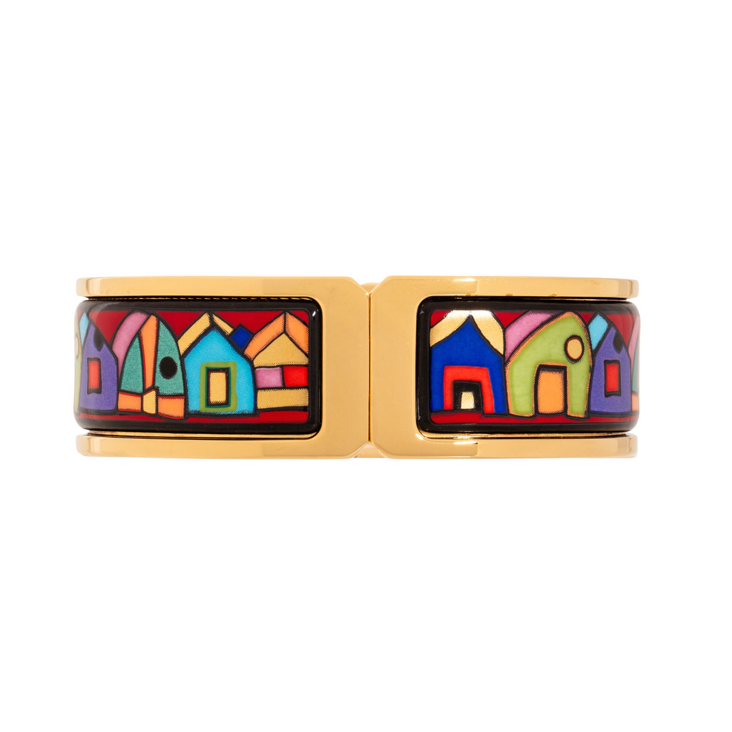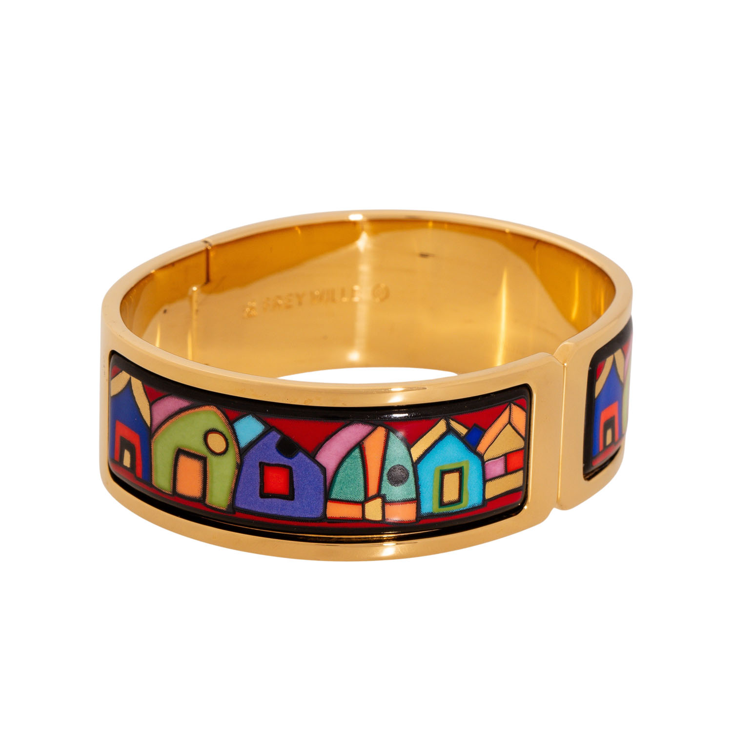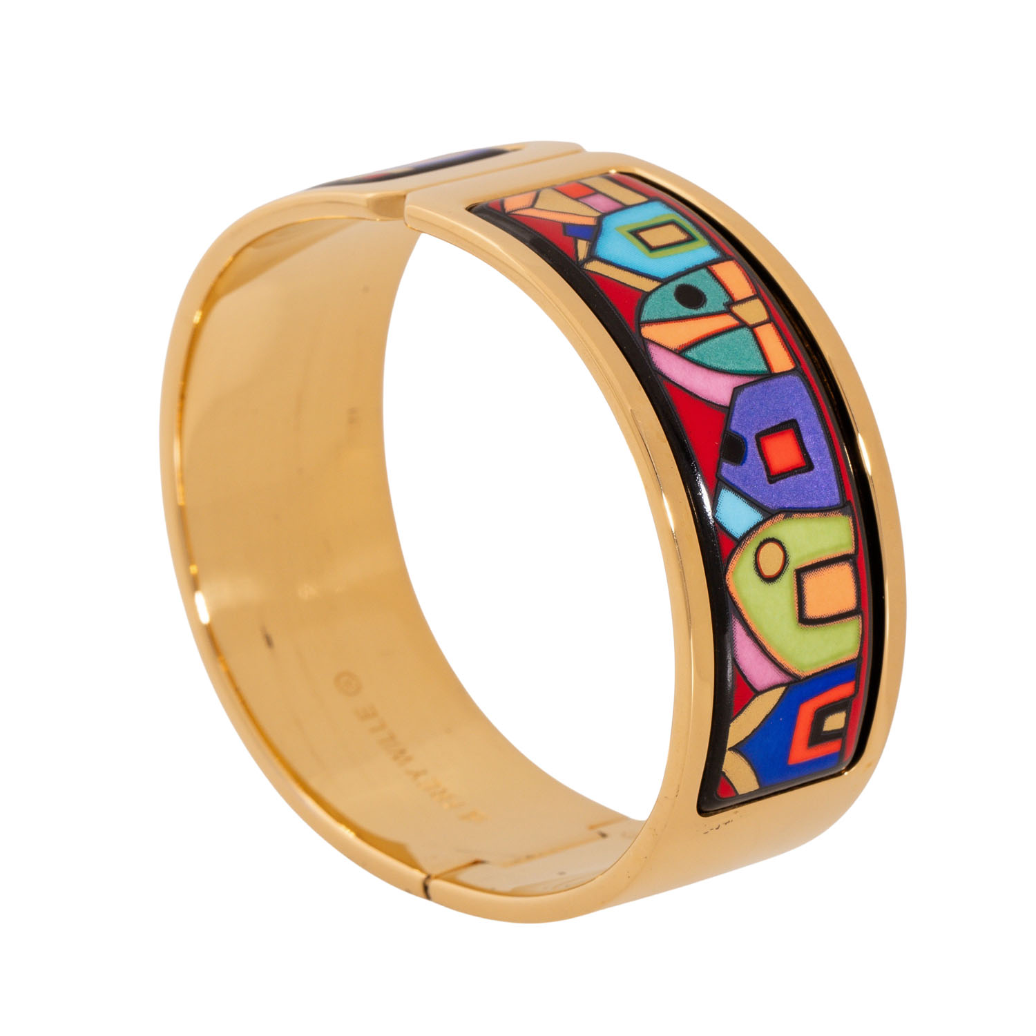 FREYWILLE Hinged bangle 'Contessa Hundertwasser', enamel with 24K rose gold decor, 58.4 g, inner circumference 17 cm, W: 20 mm, 21st century, as good as new.