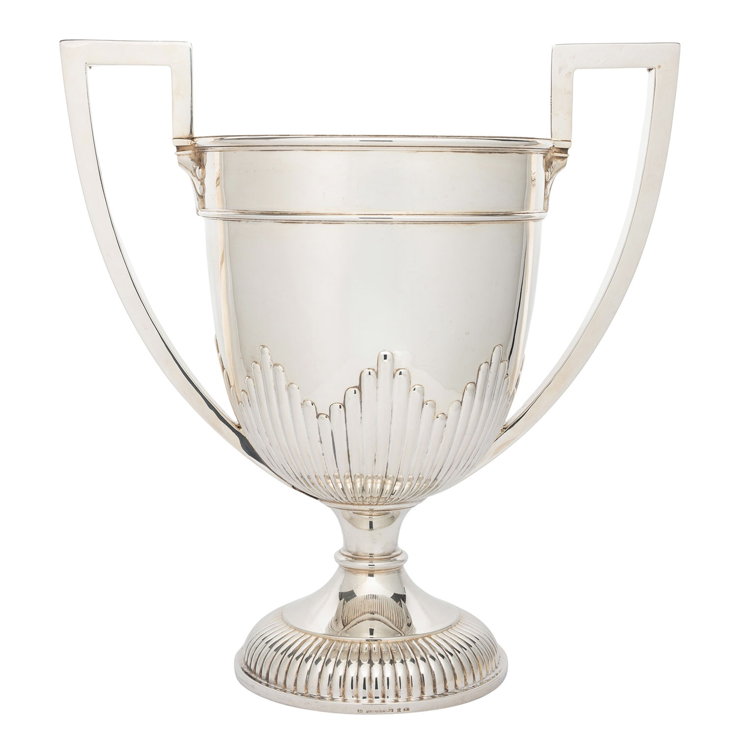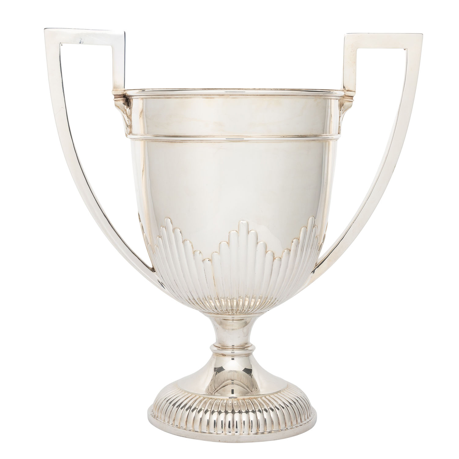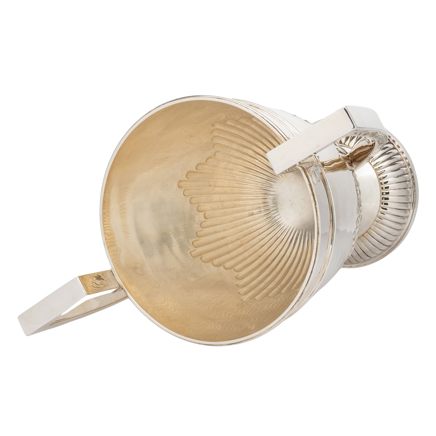 GEBRÜDER FRIEDLÄNDER (purveyor to the court), Berlin, large champagne cooler, 800 silver, around 1920/30. Large, cup-shaped champagne cooler with fluting and raised handles, hallmarked with a crescent moon, crown and GEBR. FRIEDLÄNDER, M and 800, height approx. 42 cm, weight approx. 2,297 g. Signs of age and use.