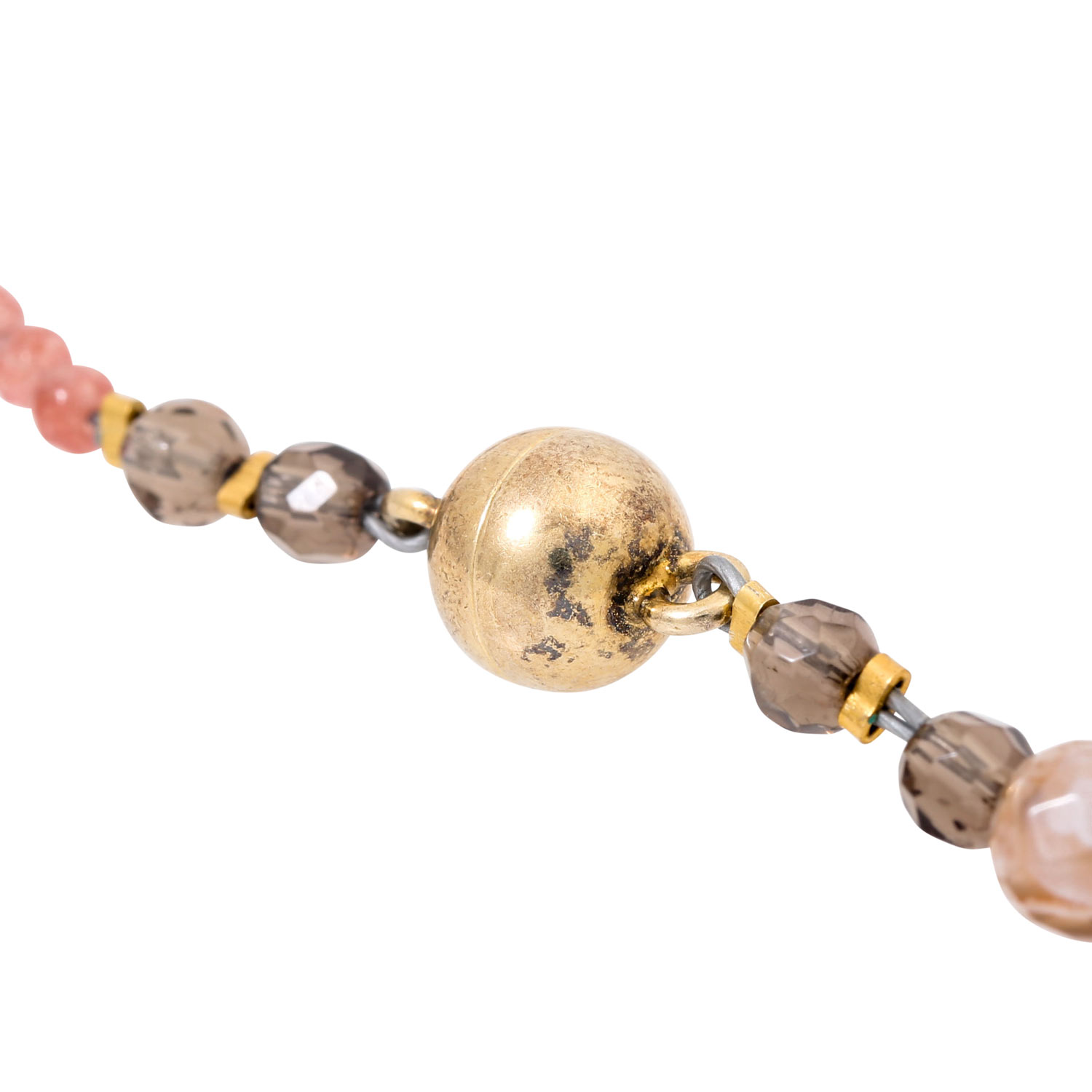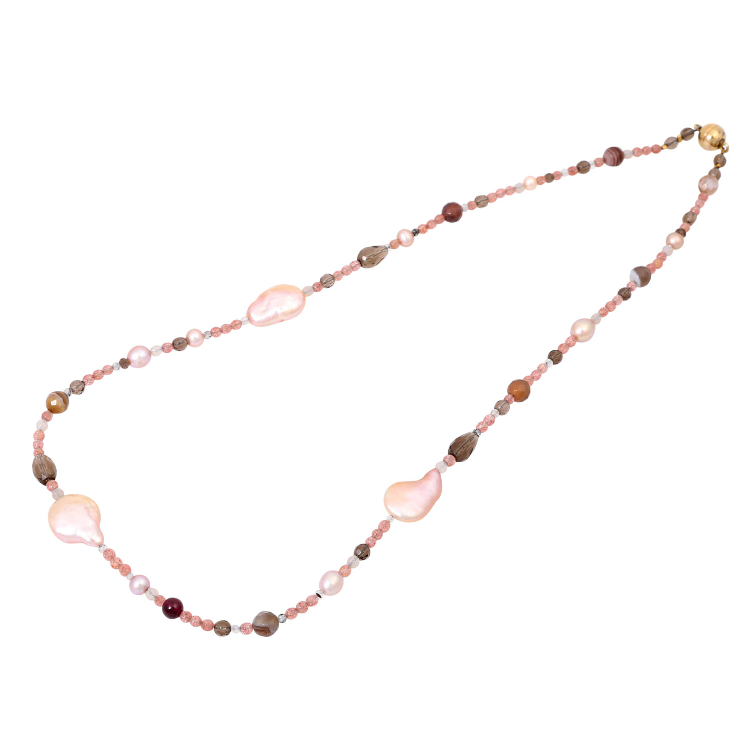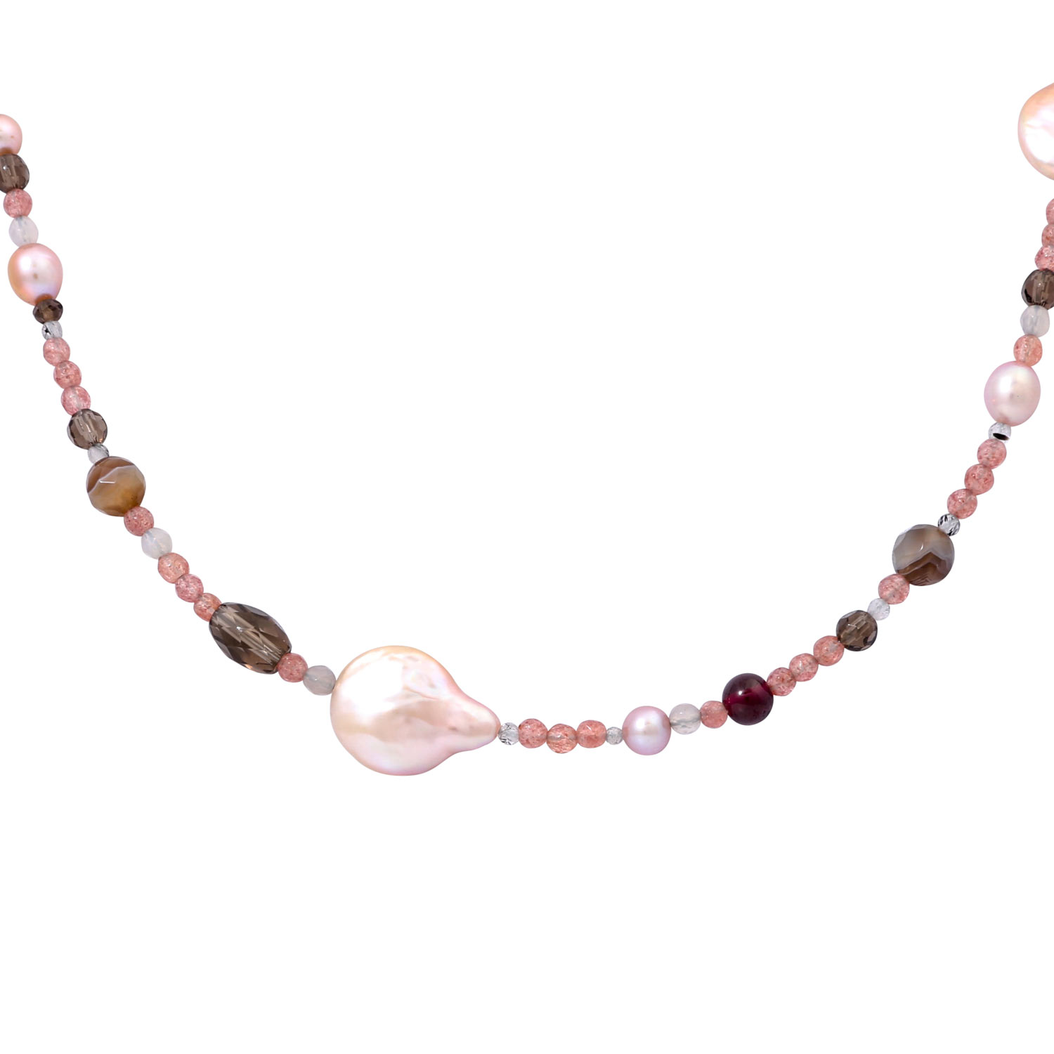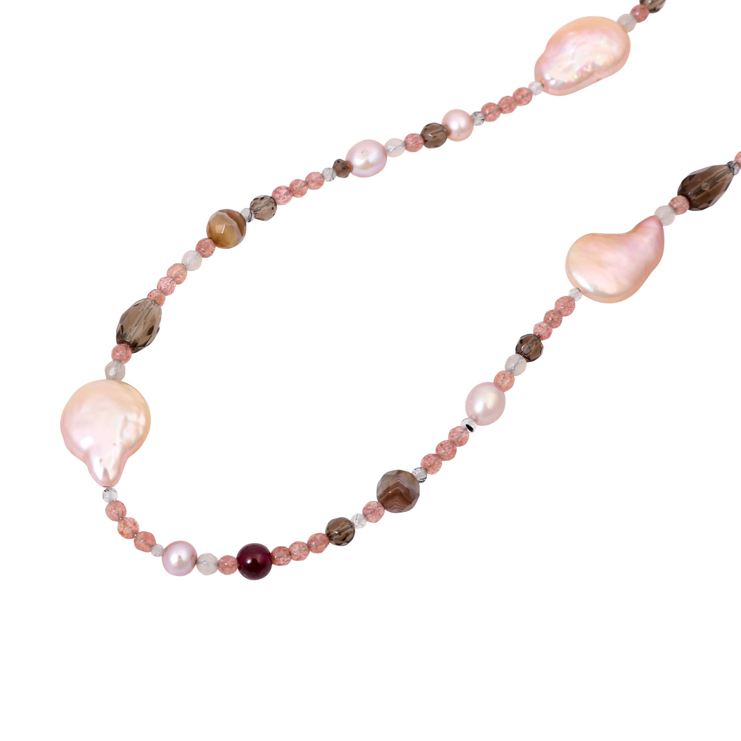 Gemstone necklace with agates in different cuts, sunstones, quartz and rose freshwater cultured pearls, magnetic clasp 925 silver gold plated, L: 45.5cm, 21st century, mint condition.