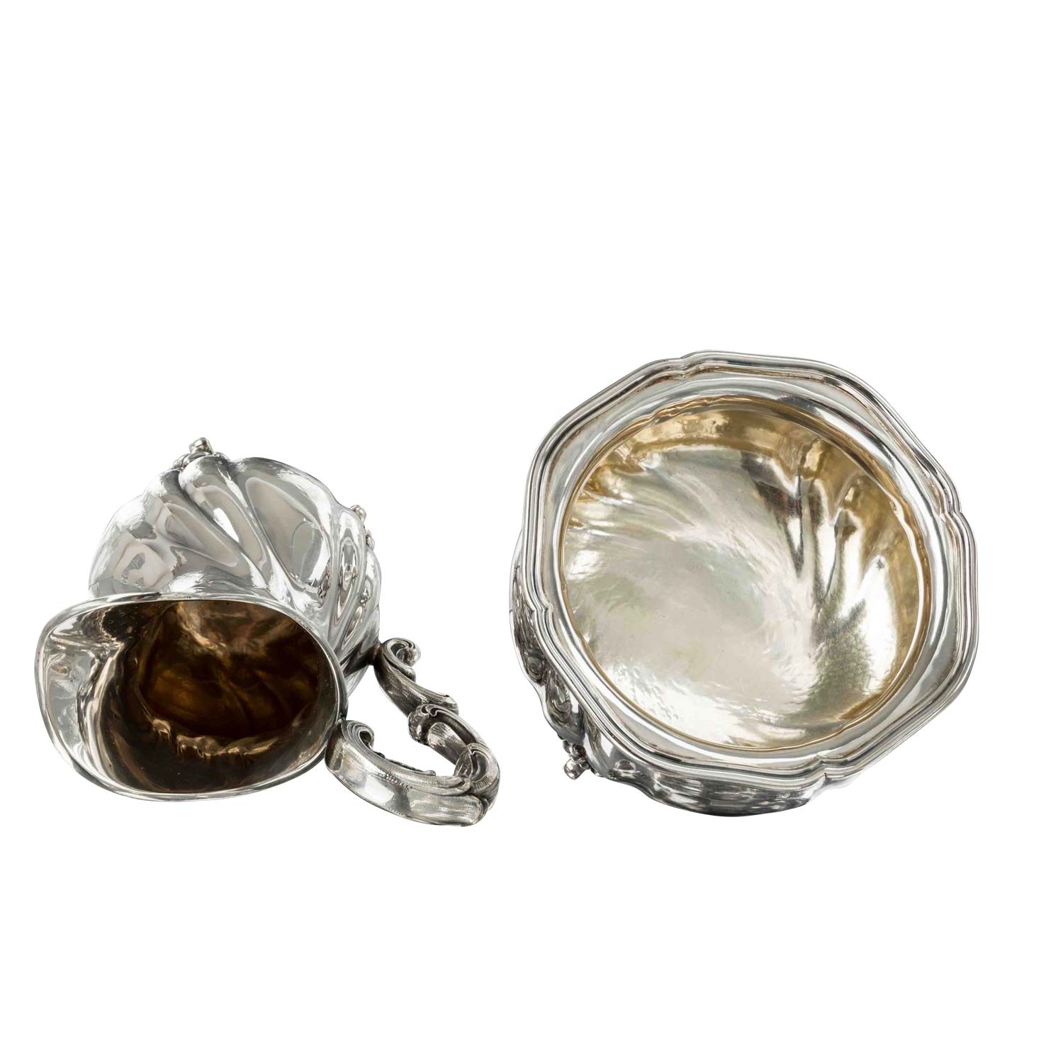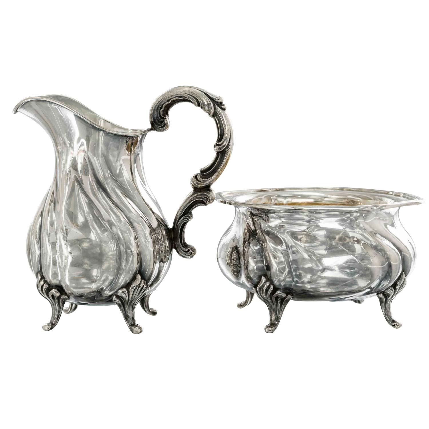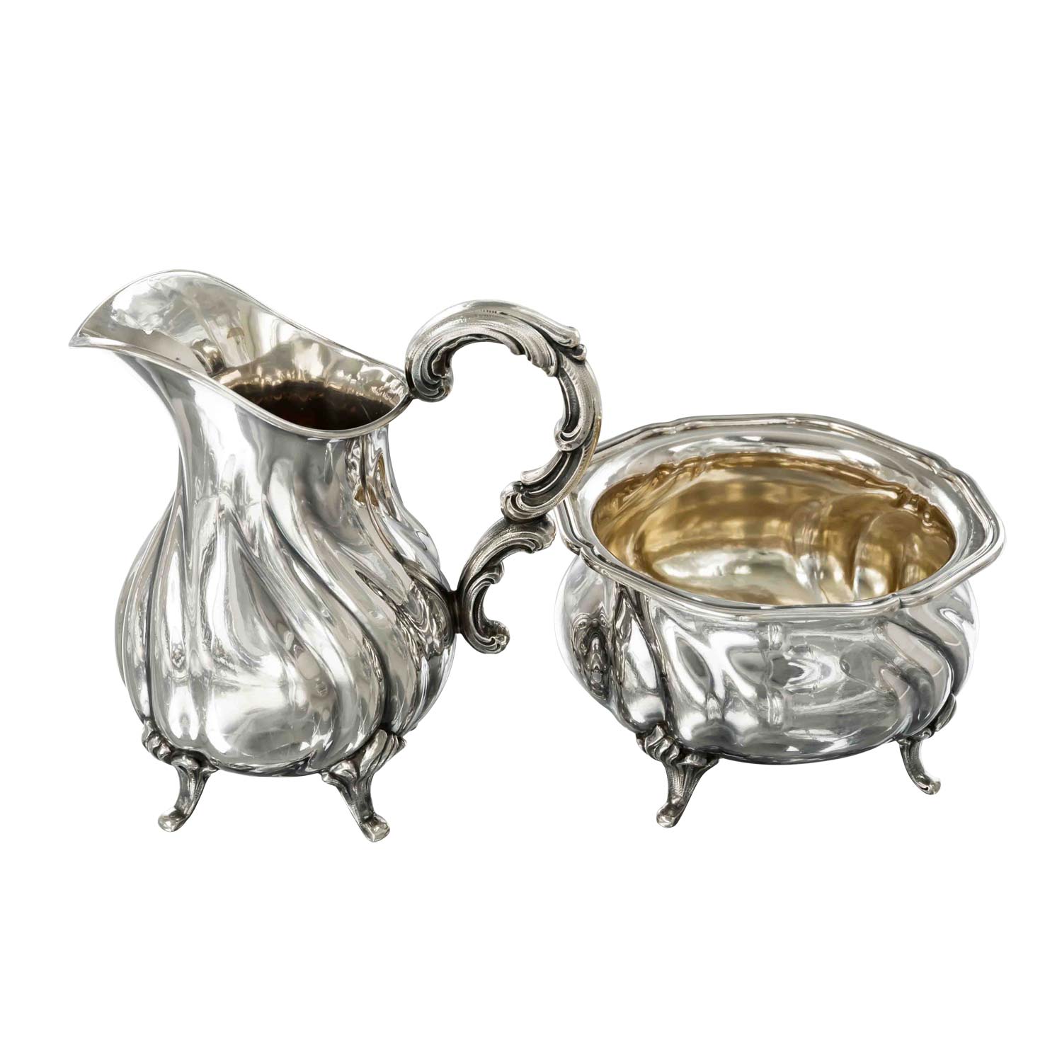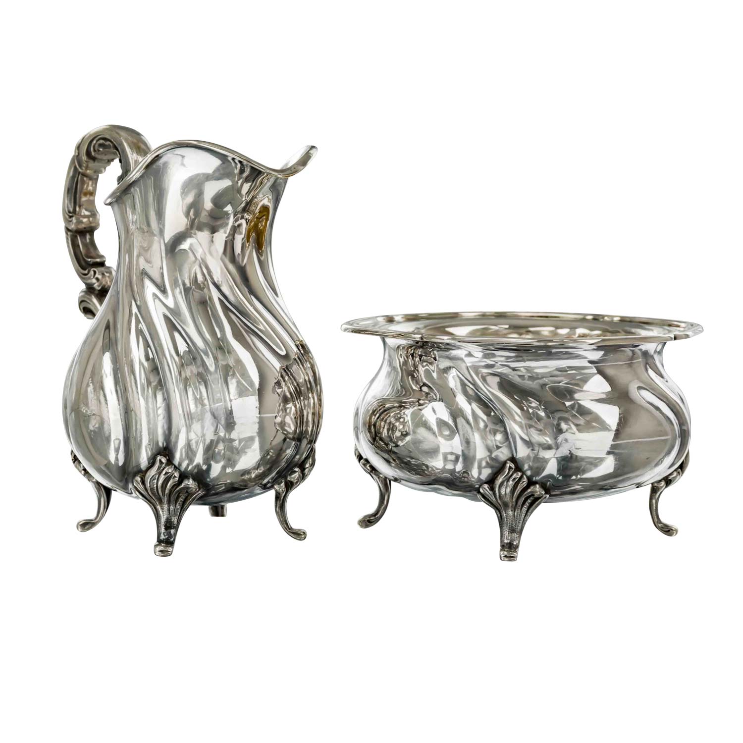 GERMANY, 2-piece cream set, 925 silver, 20th century. Sugar bowl and milk pourer in baroque curved form, weight approx. 544 g. Signs of use and age.