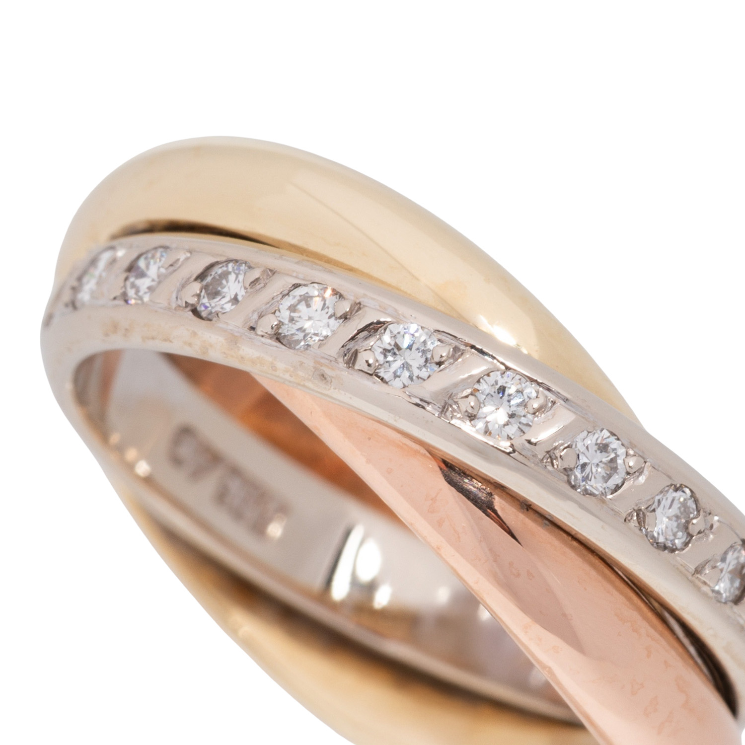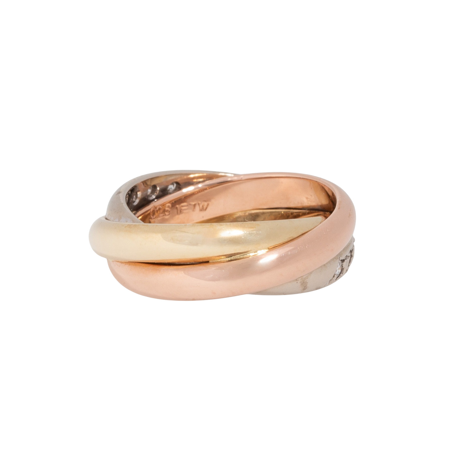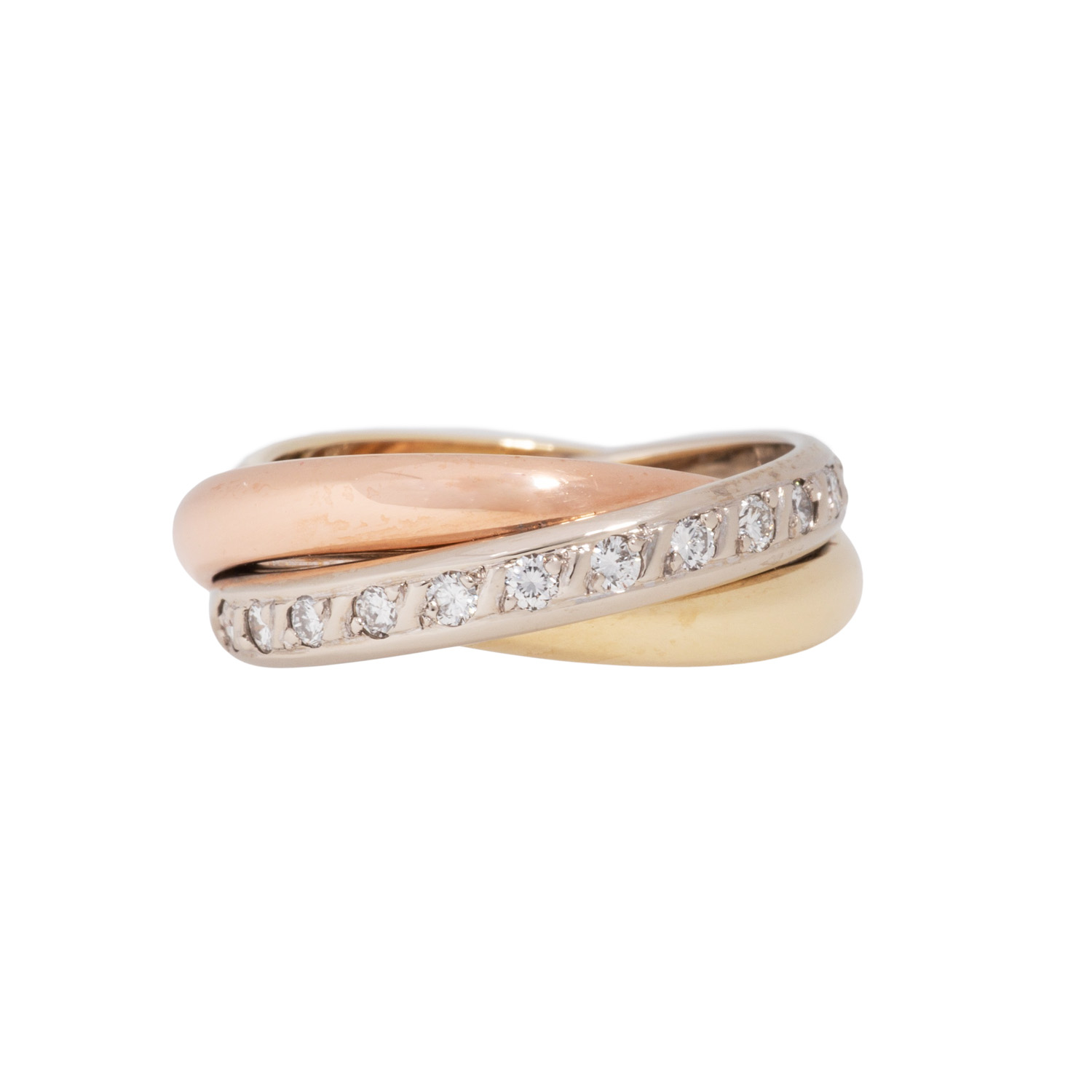 'GERSTNER' Ring with 13 brilliant-cut diamonds, totalling 0.26 ct, RW (F-G)/IF (engraved), 14K yellow gold/white gold/red gold, 7.8 g, ring size: 48, W: approx. 6.1 mm, 21st century, signs of wear, with hallmark 'AG'.