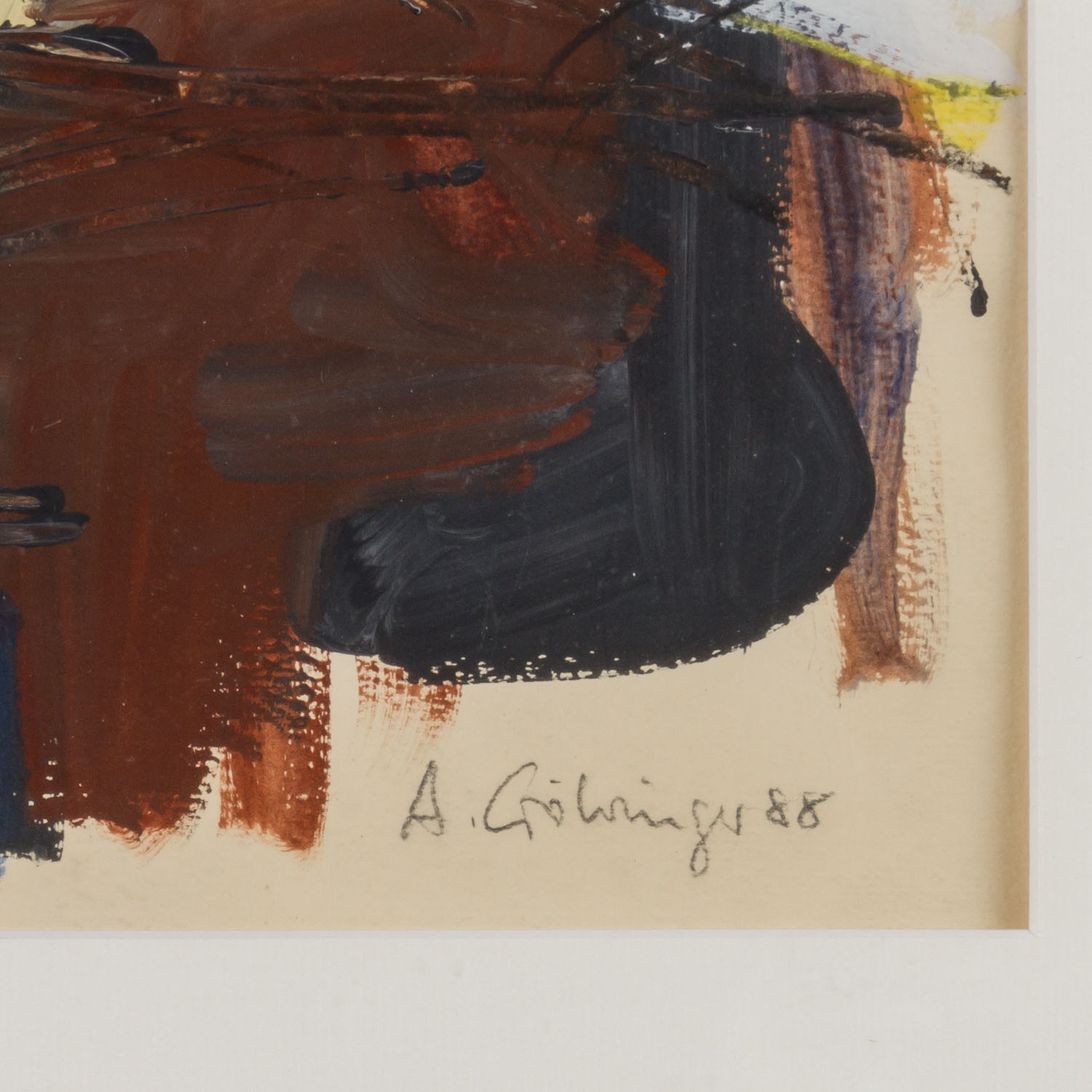 GÖHRINGER, ARMIN (1954), 'Abstract composition', 1988, signed and dated lower right: 'A. Göhringer / 88 '. Mixed media on paper, mounted behind passepartout. HxW visible dimensions sheet: approx. 33 x 46.5 cm (HxW frame: approx. 74 x 86.5 cm). Traces of age and rubbing. With glazed frame (traces of age).
