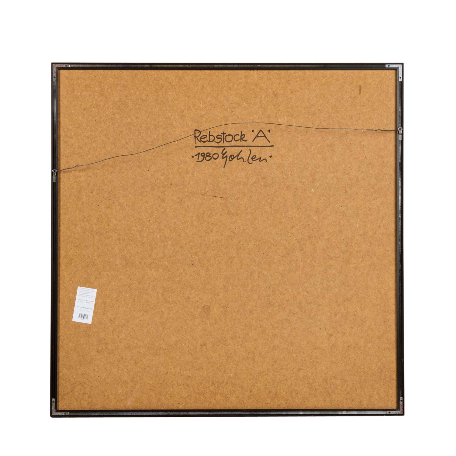 GOHLEN (painter / 20th / 21st century), 'Rebstock A', signed and dated 1980 in the center, inscribed on the reverse, mixed media / cardboard, HxW: approx. 80x80 cm (81x81 cm with frame). Slight signs of age. With frame.