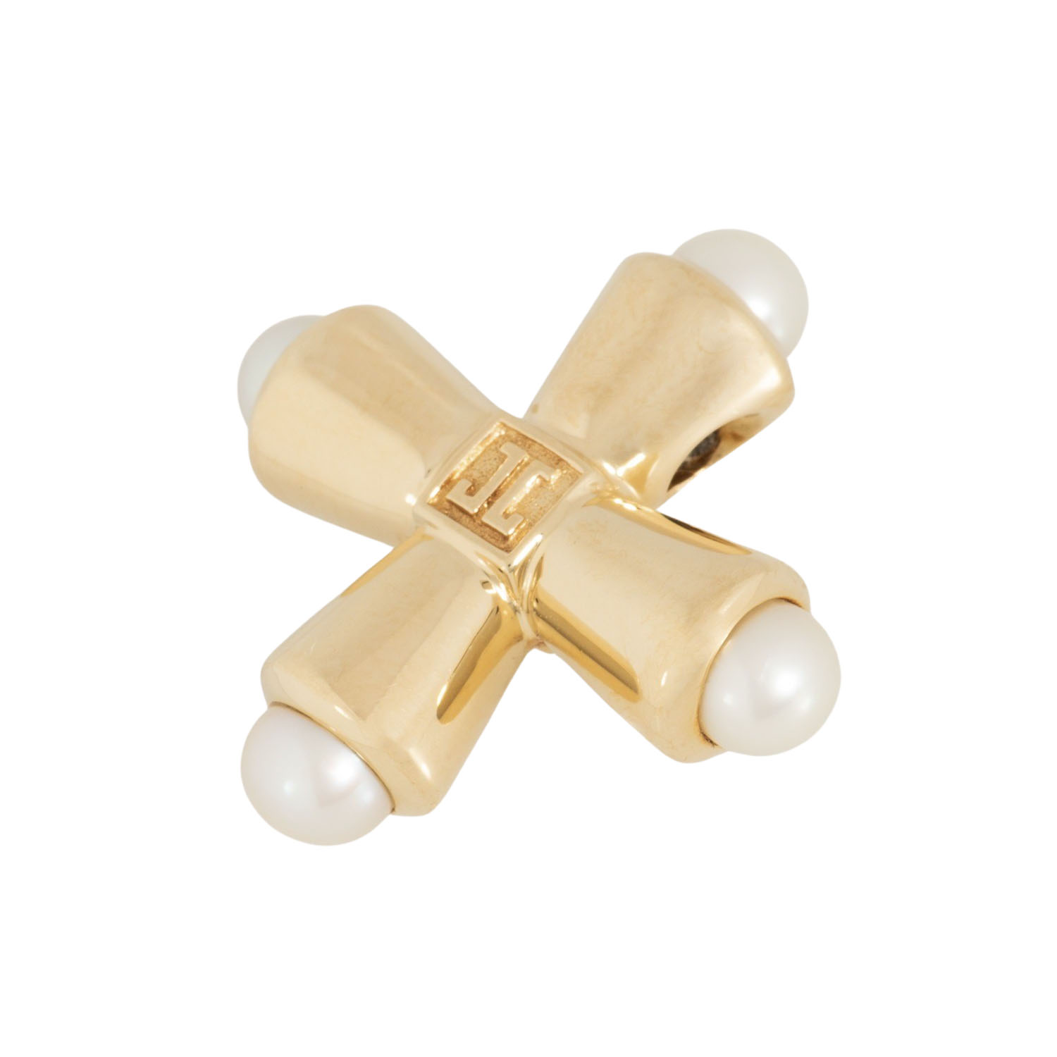 'Greek cross' pendant with 4 white cultured pearls,