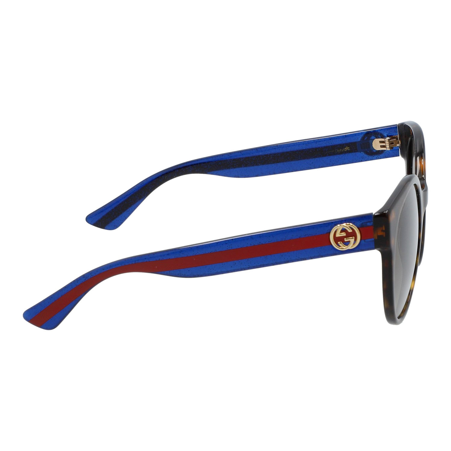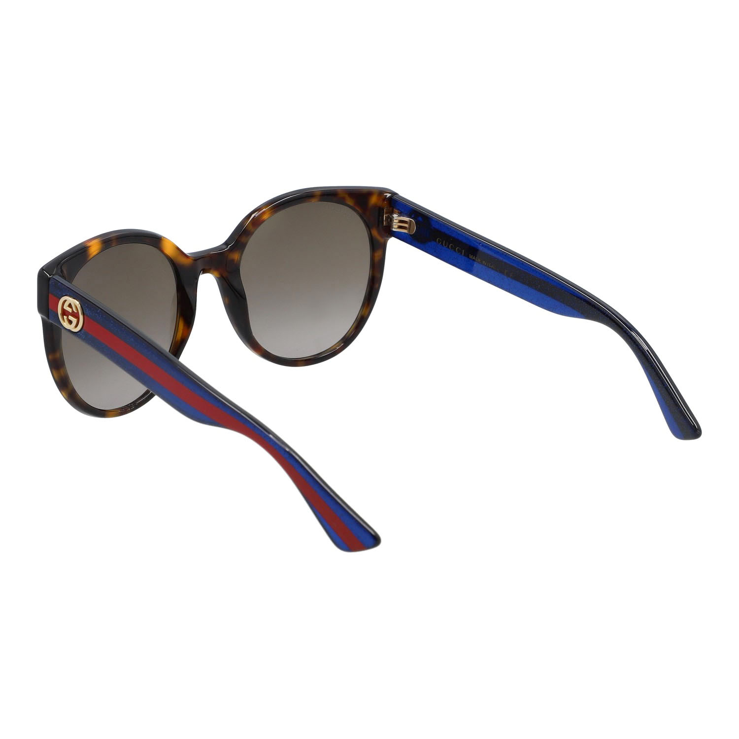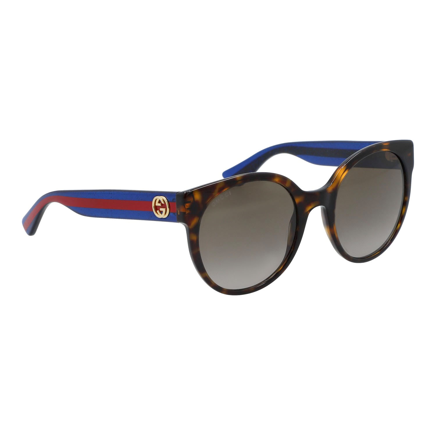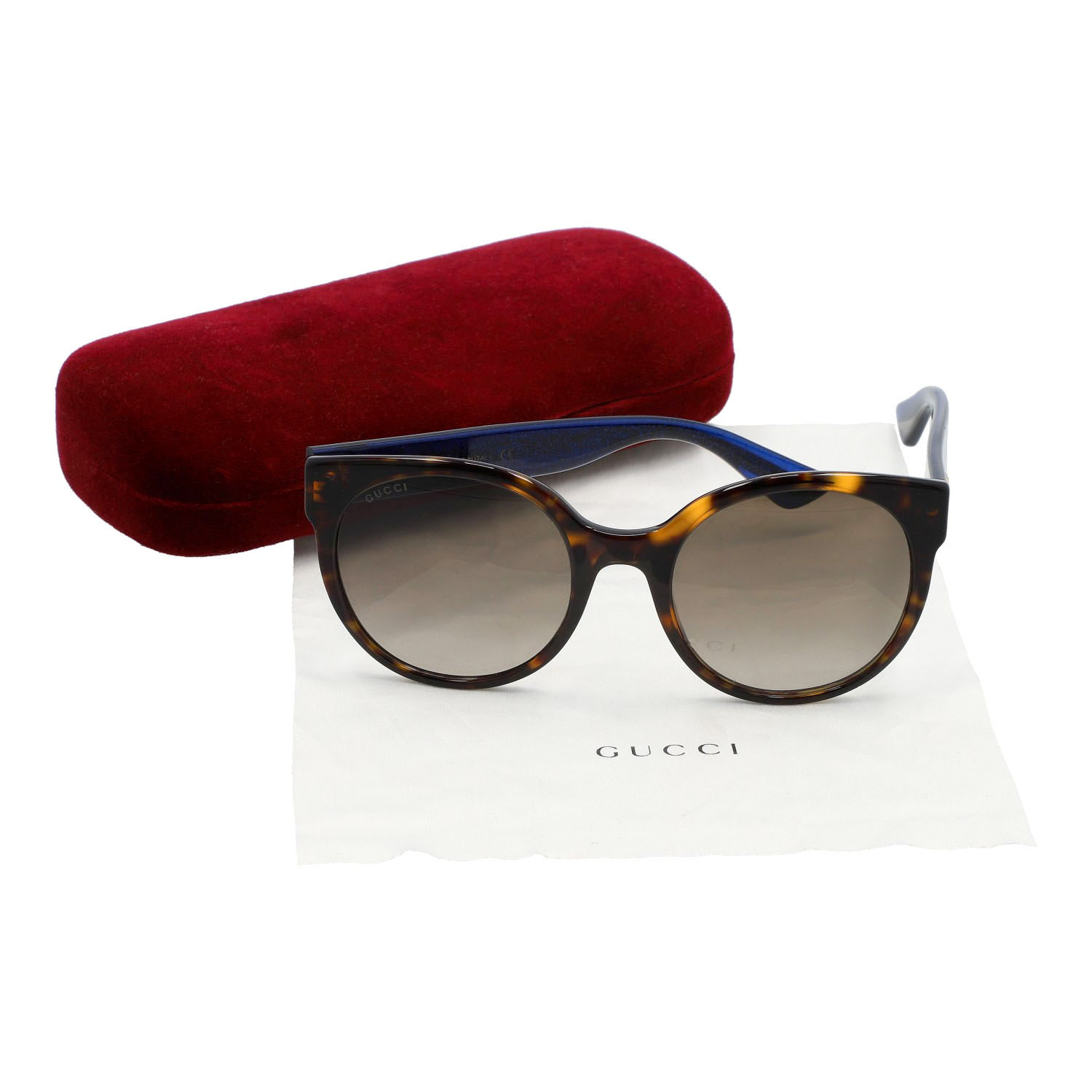 GUCCI sunglasses 'GG0035S'. Marbled frame in brown with blue arms and gold-coloured decoration. Case included. Signs of wear present.
