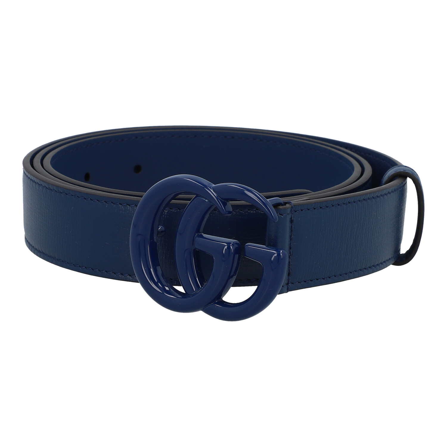 GUCCI belt, lenght 110cm. Leather strap in dark blue with dark blue GG logo clasp. Width approx. 28mm. Dust bag enclosed. Very good condition.