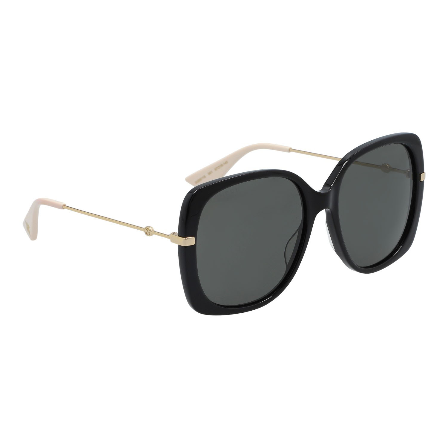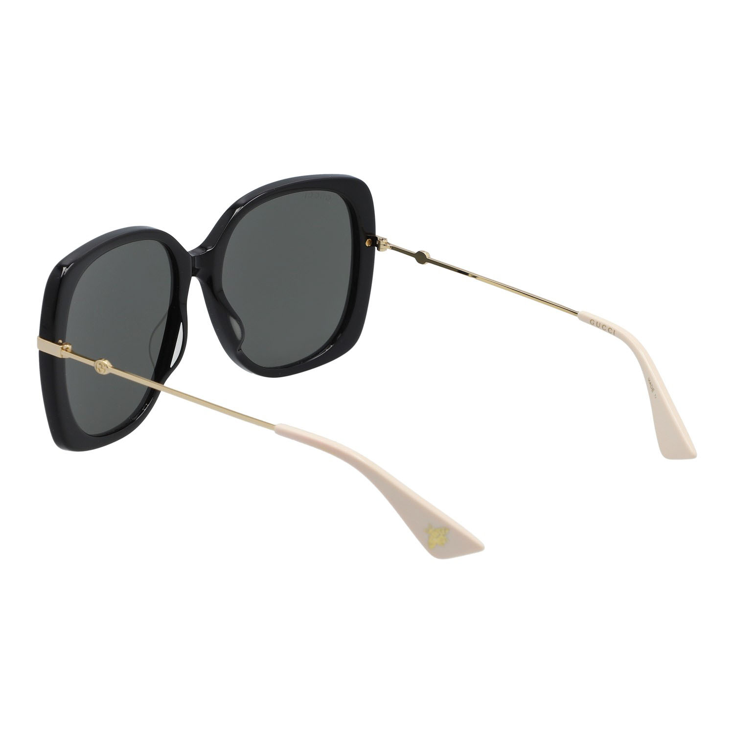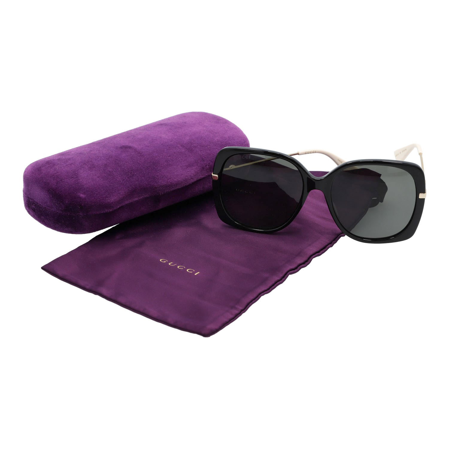 GUCCI sunglasses 'GG0511S'. Large, angular frame in black with tinted lenses, gold-coloured accents and logo decoration. Case included. Slight signs of wear present.