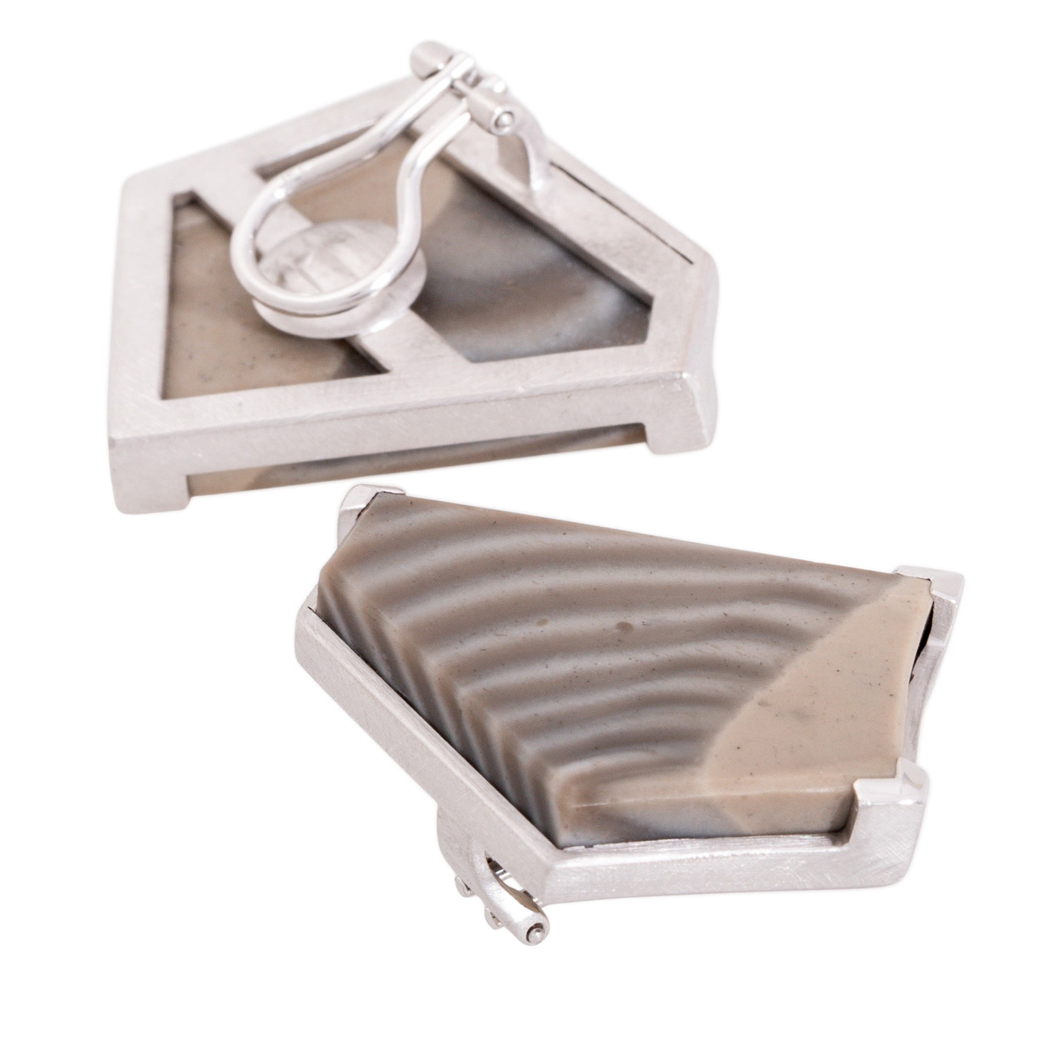 GÜNTER KRAUSS ear clips with polygonal stone plates