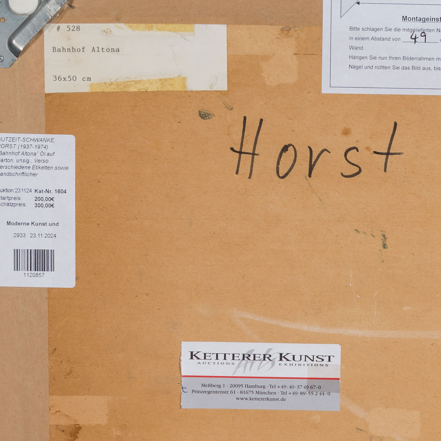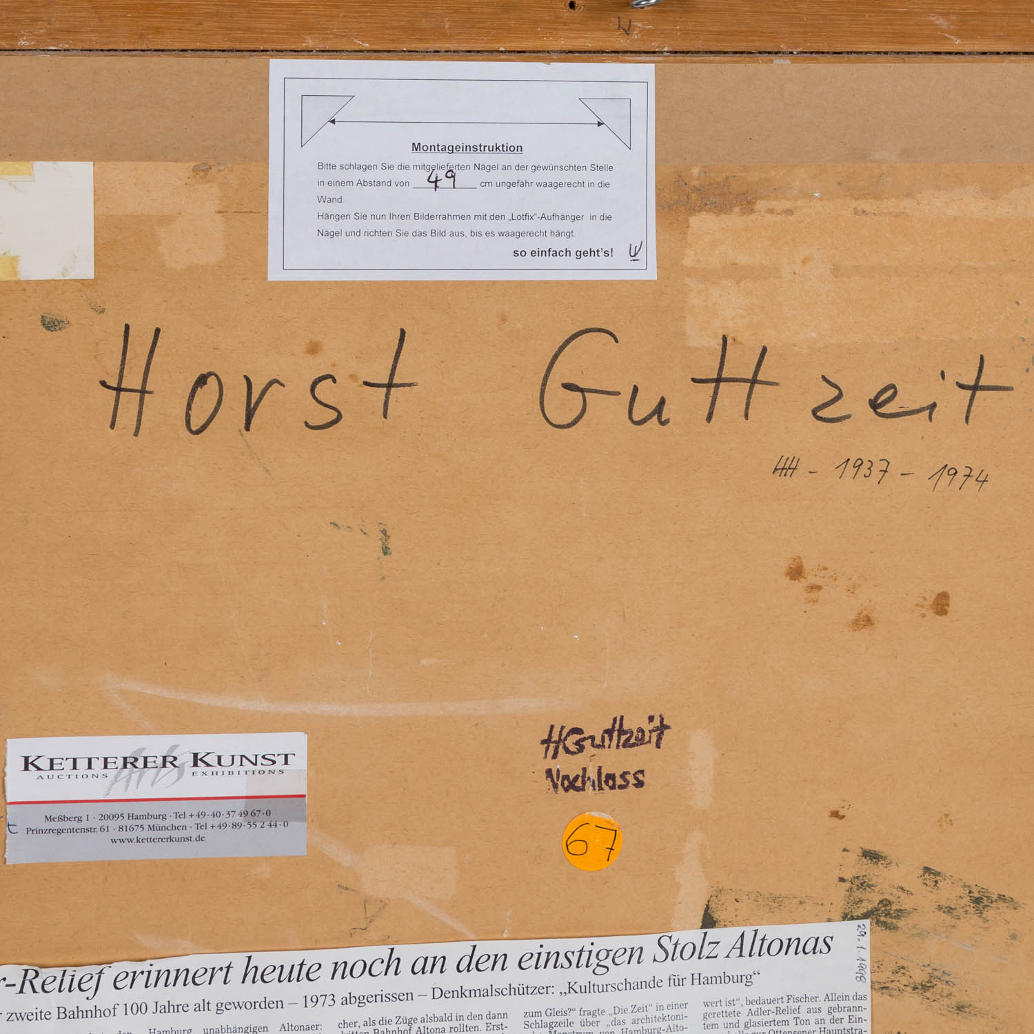 Oil on card, unsigned, verso with various labels and handwritten inscription 'H.Gutzeit Nachlass 67' HxW: 36/50 cm. Frame, HxW: 50/63 cm.