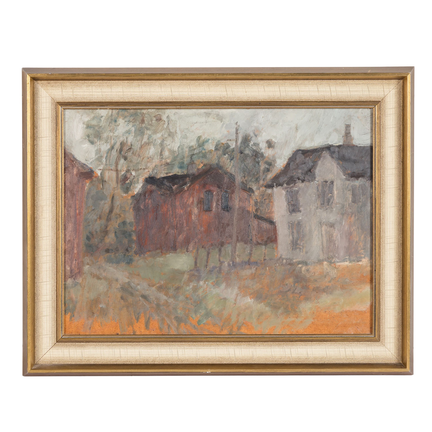 Oil on cardboard, unsigned, HxW: 30/38 cm. Frame, HxW: 37/44 cm.