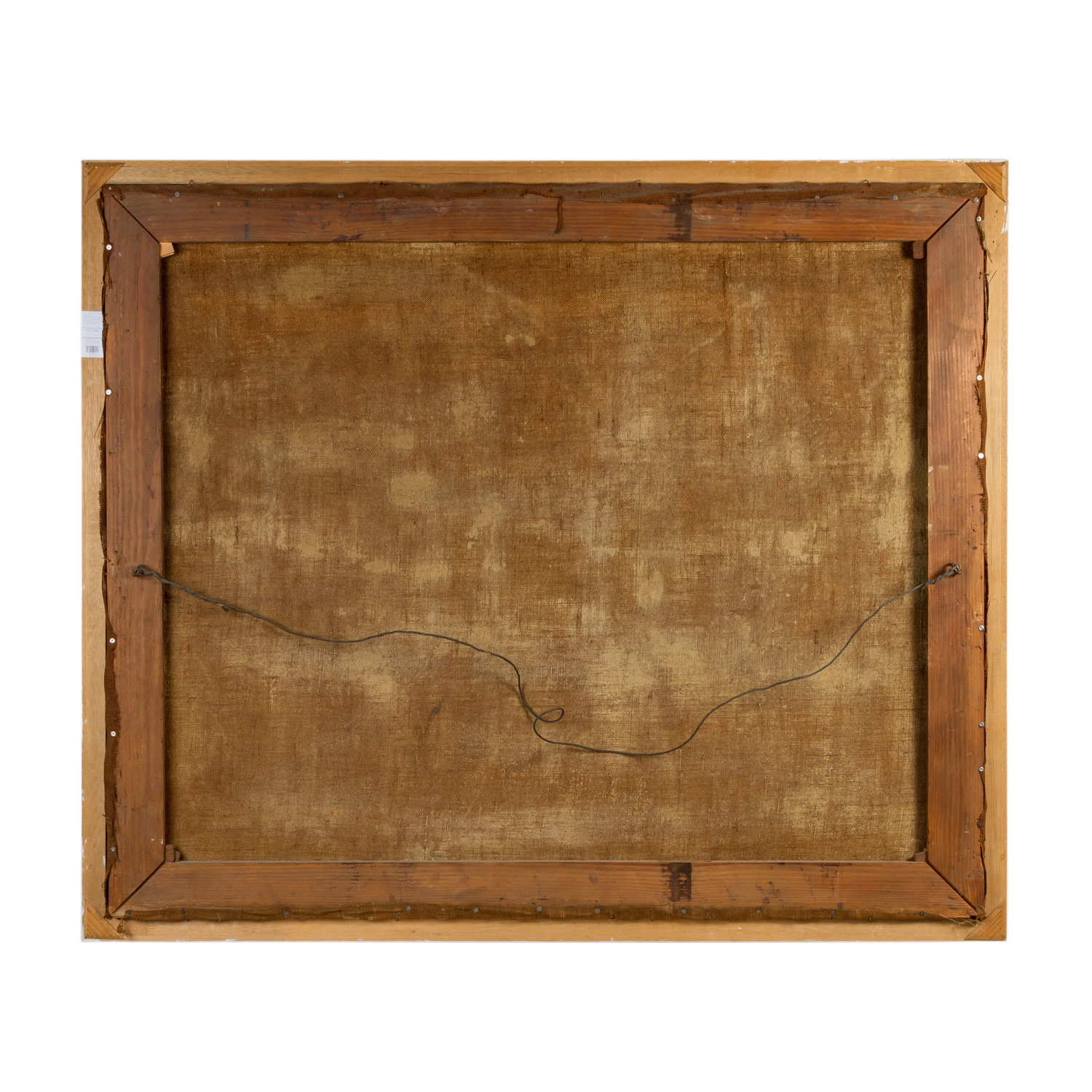 HAAG, ROBERT (Stuttgart 1886-um 1955), 'Swabian landscape in late summer', view over the hilly meadows and fields with isolated houses, signed, oil / plucking, HxW: ca.128x152 cm (137x161 cm with frame). Paint flaking and rubbing around the edges. With frame. Signs of age.