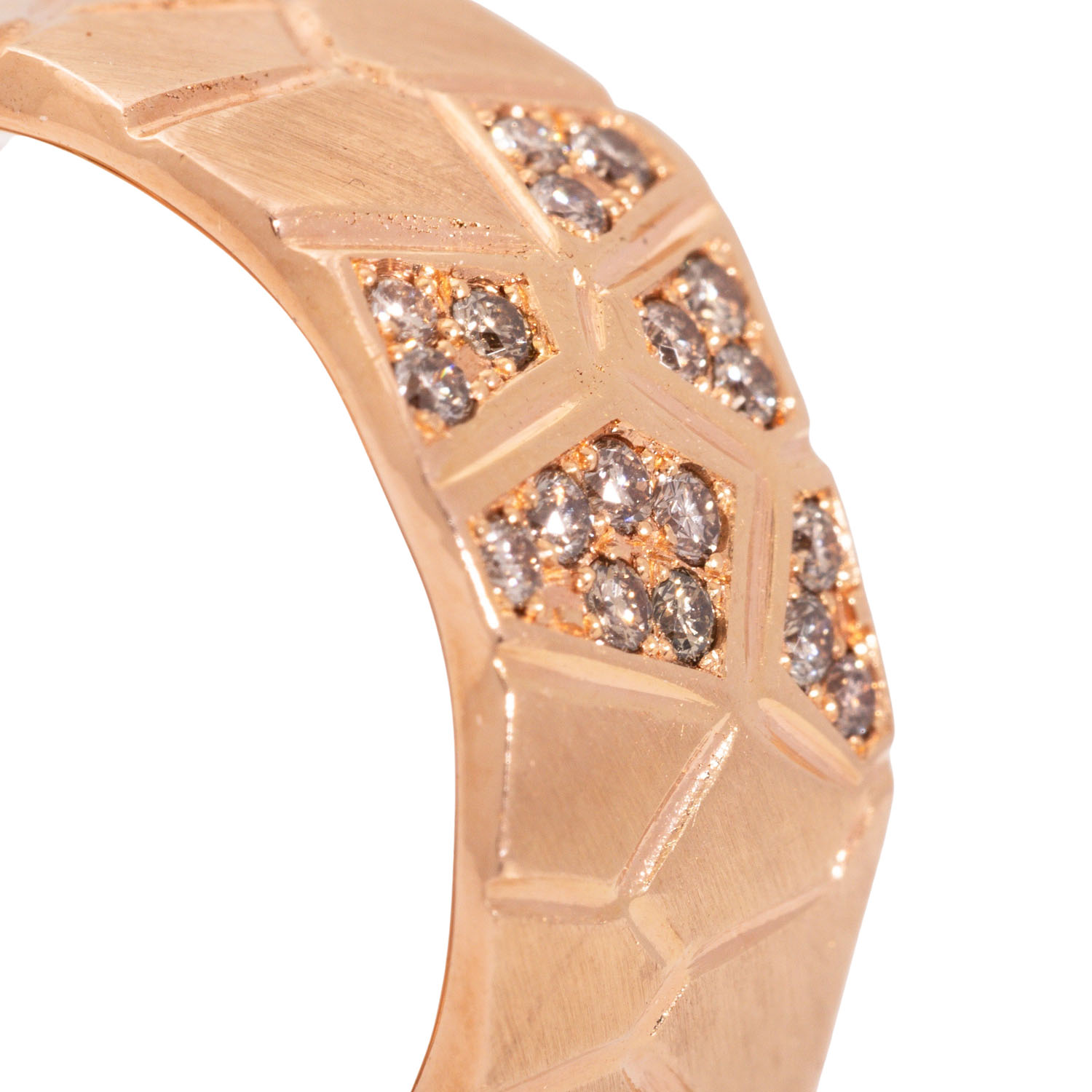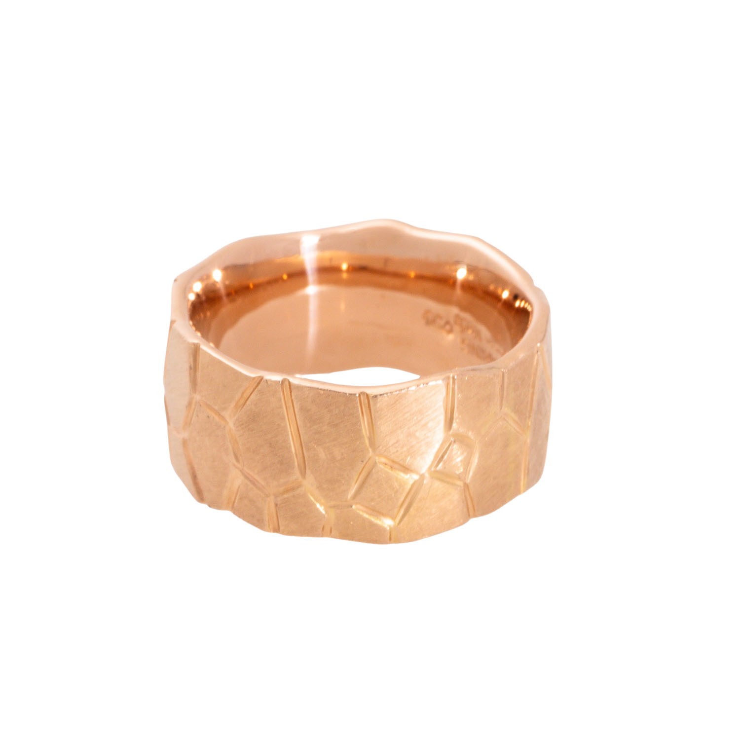 HÄRING ring with 18 brilliant cut diamonds, totalling ap. 0,14 ct, good colour and clarity, 18K rose gold, 13.7 g, ring size 52, W: 9.6 mm, surface engraved, 20th/21st century, minimal signs of wear, handcrafted by Werner Häring, Hamburg.