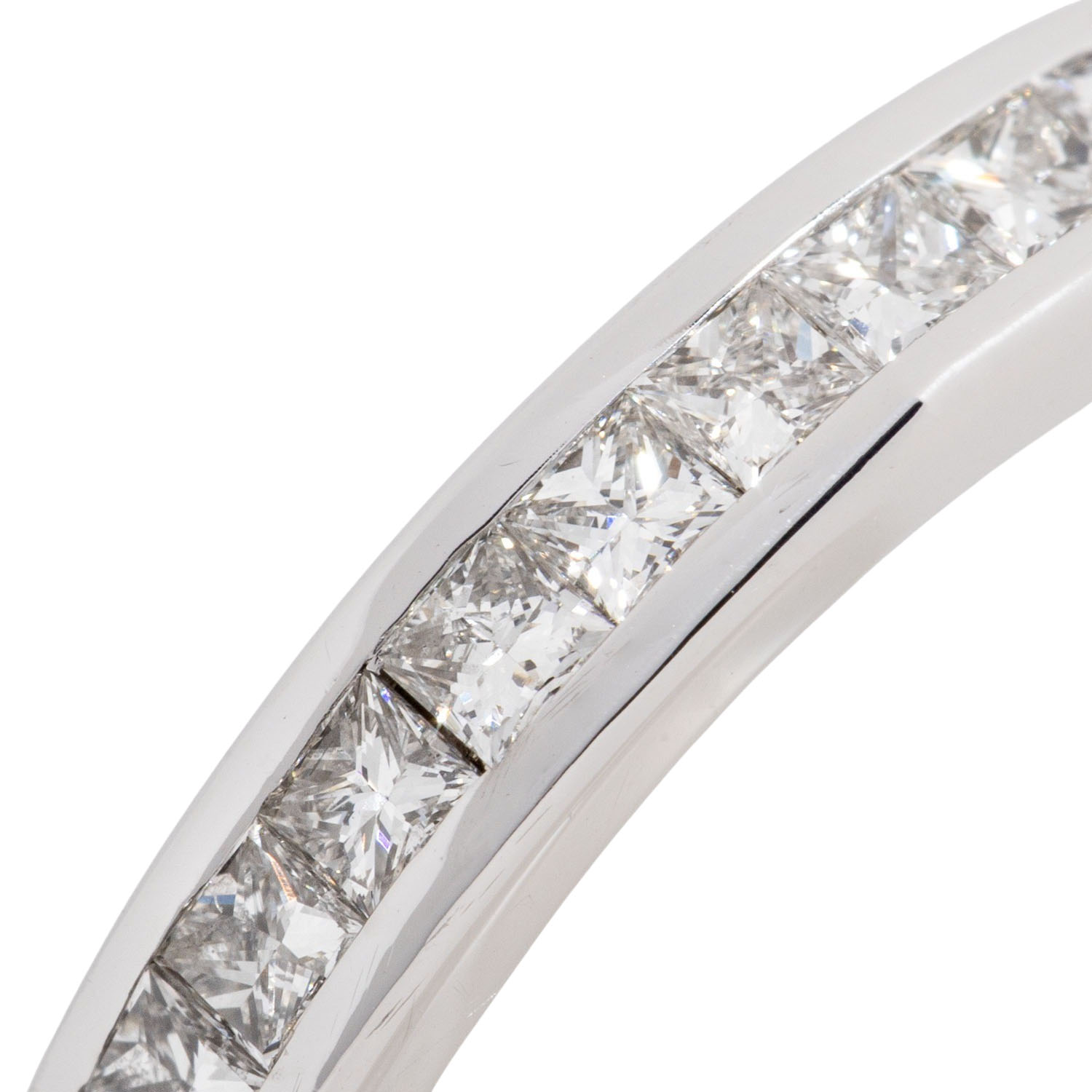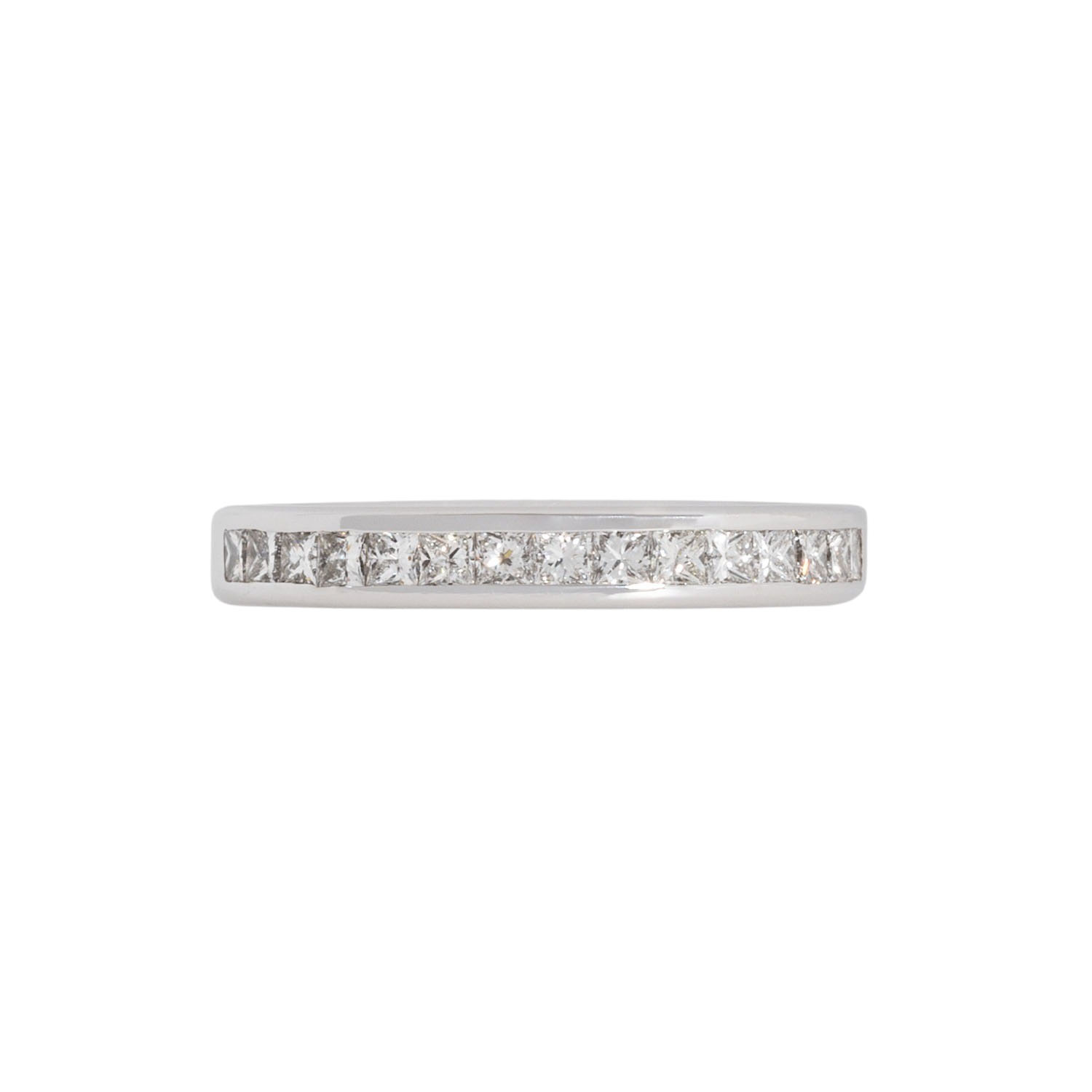 Ring with 15 princess-cut diamonds totall. ca. 0,75 ct, ca. WHITE (H)/VS, 14K white gold, 6.3 g, ring size: 53, late 20th century, minor signs of wear.