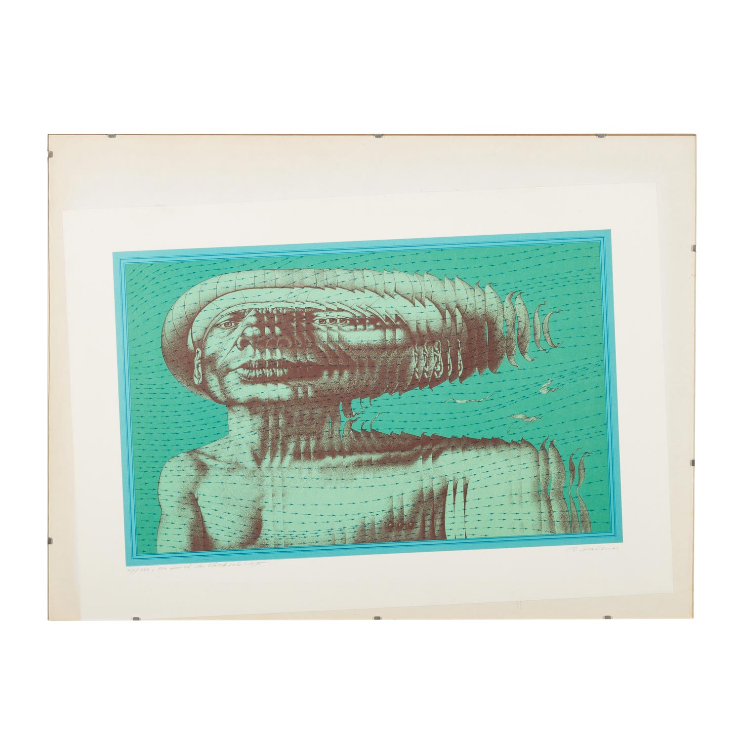Colour lithograph, ex. 37/200, signed by hand, HxW: 51/73 cm. Frame, HxW: 60/80 cm.