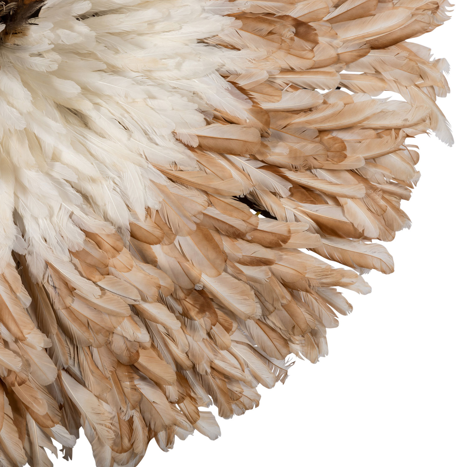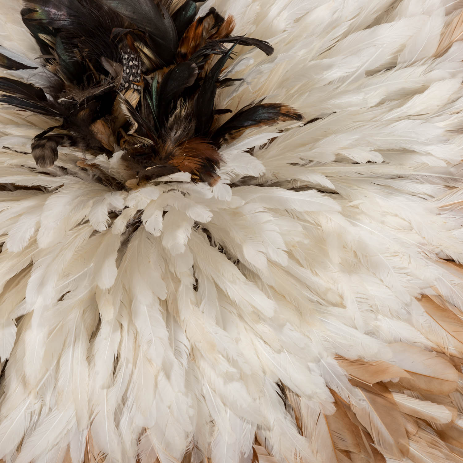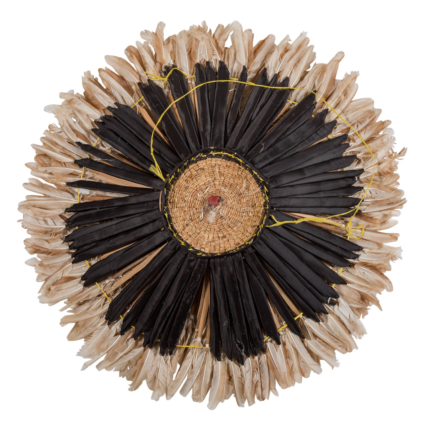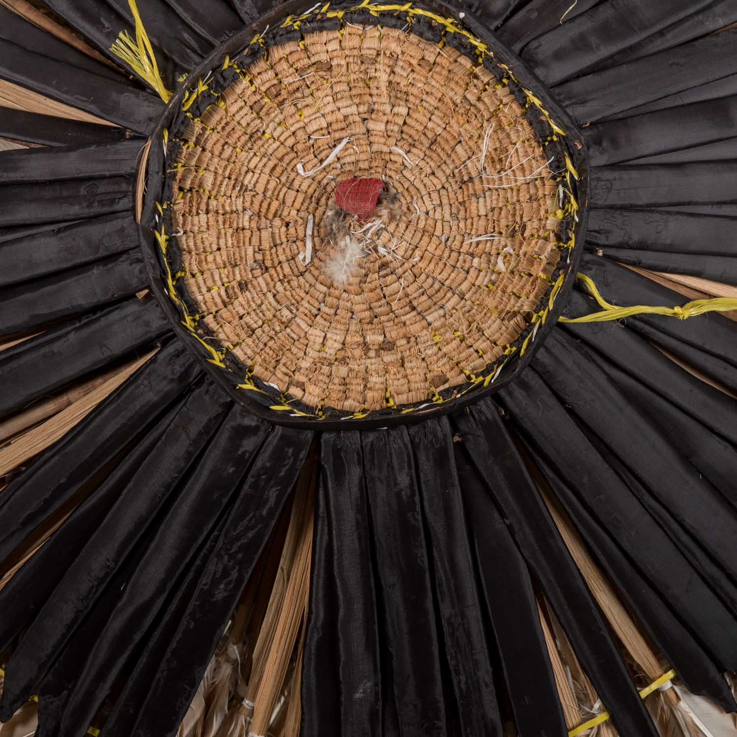 Headdress. BAMILEKE/CAMEROON made of feathers, wood and raffia, d: approx. 90 cm. Traces of age, dam.