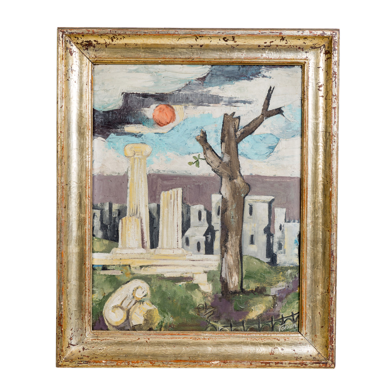 HECKER VERSIEN, GEORG (20th century painter), "Landscape with temple ruins on the outskirts of the city",