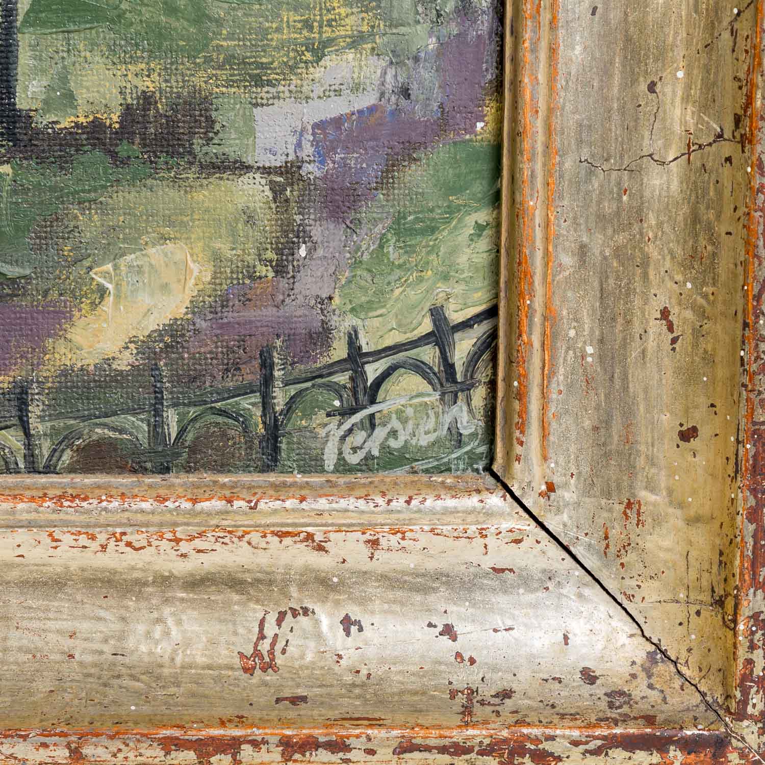 HECKER VERSIEN, GEORG (20th century painter), "Landschaft mit Tempelruinen am Rande der Stadt", signed 'Versien' lower right, oil/painting card, HxW: approx. 60x47 cm (74x61 cm with frame). With frame. Signs of age, part. slight losses of color and stains to painting and frame.